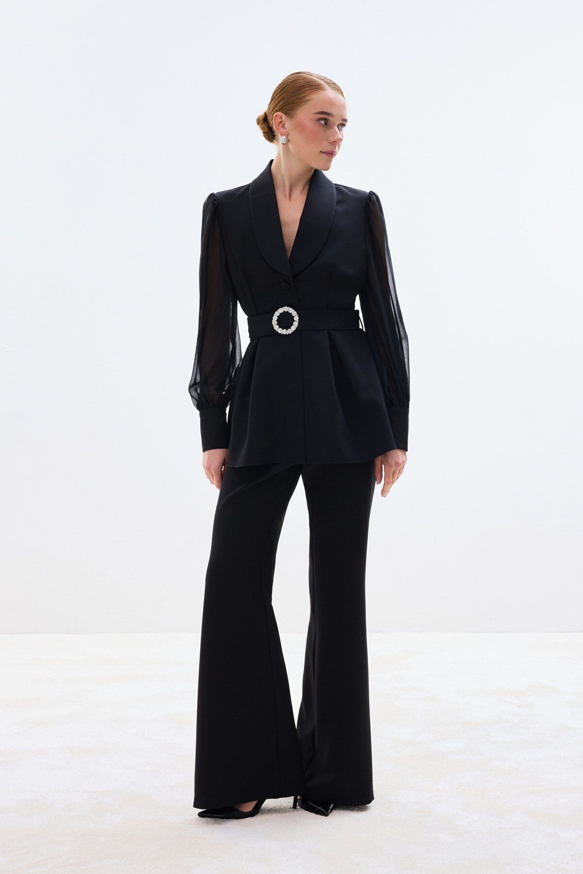 Aksesuar Kemerli Bluz - Siyah
