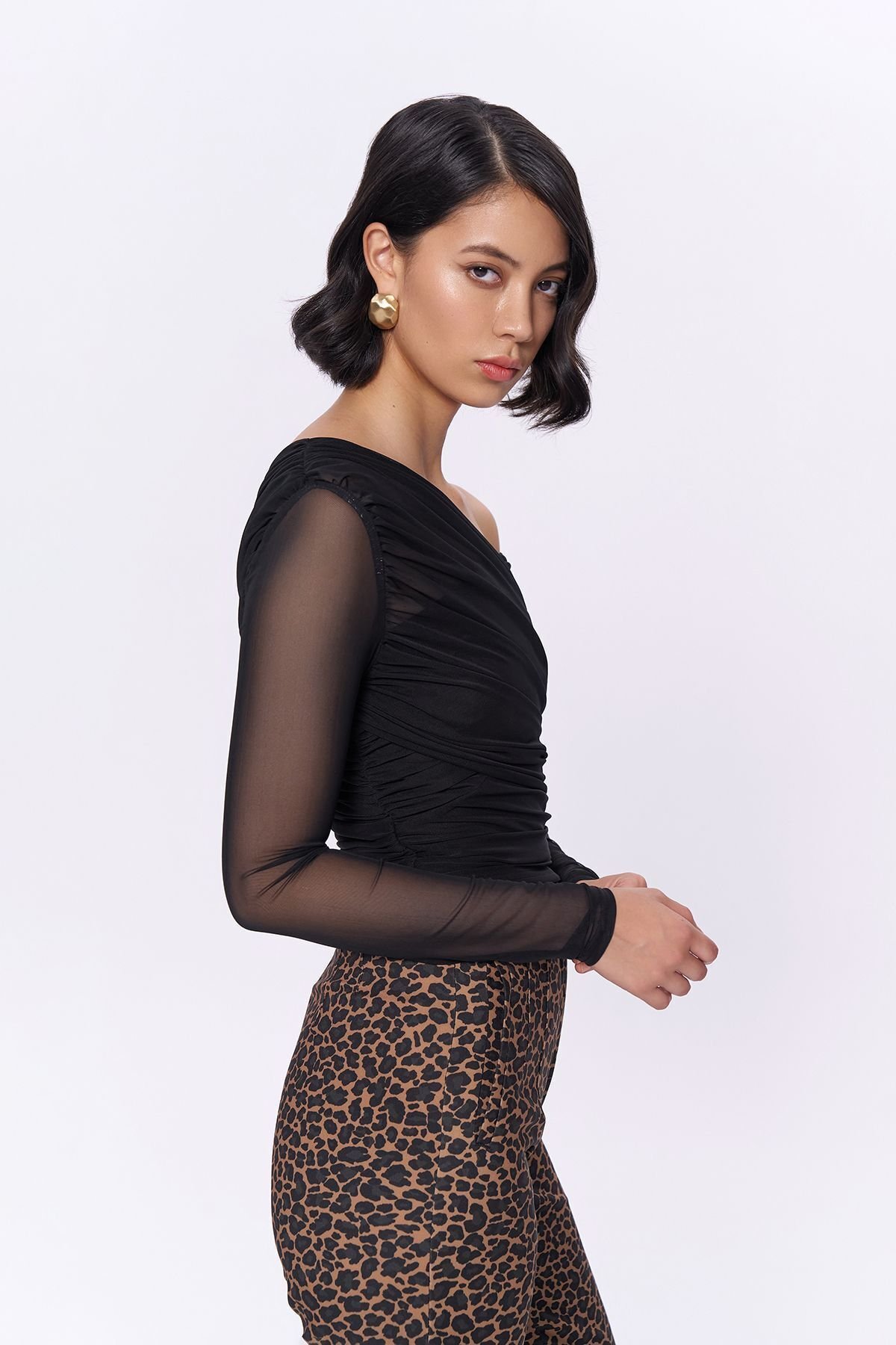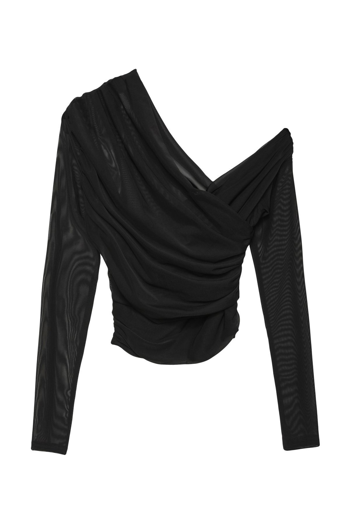 Uzun kollu tasarımı ile mevsim geçişlerinde ve serin havalarda şıklığınızı korurken konfor sunar; Asimetrik yaka detayı, modern ve trend bir görünüm kazandırarak günlük kombinlerinize dinamik bir dokunuş ekler; İnce yapısı sayesinde hafif ve nefes alabilen şifon kumaşı, gün boyu rahat bir kullanım sağlar; Basic koleksiyonun sadeliğiyle her gardıropta temel parça olarak yerini alır; kolayca kombinlenebilir ve zamansız bir stil sunar; Casual ortamlarda rahatlıkla tercih edebileceğiniz bu bluz, günlük şıklığınızı tamamlar; Büzgü ve drape detayları ile zarif bir dokunuş ekleyerek feminen çizgileri ön plana çıkarır; Dar kalıbı sayesinde vücut hatlarınıza mükemmel uyum sağlayarak şık bir siluet oluşturur; Düz deseniyle sade ve zarif bir görünüm sunarken, trend stil anlayışını benimseyenlere hitap eder; Standart boyu ile farklı vücut tiplerine uyum sağlayarak geniş;