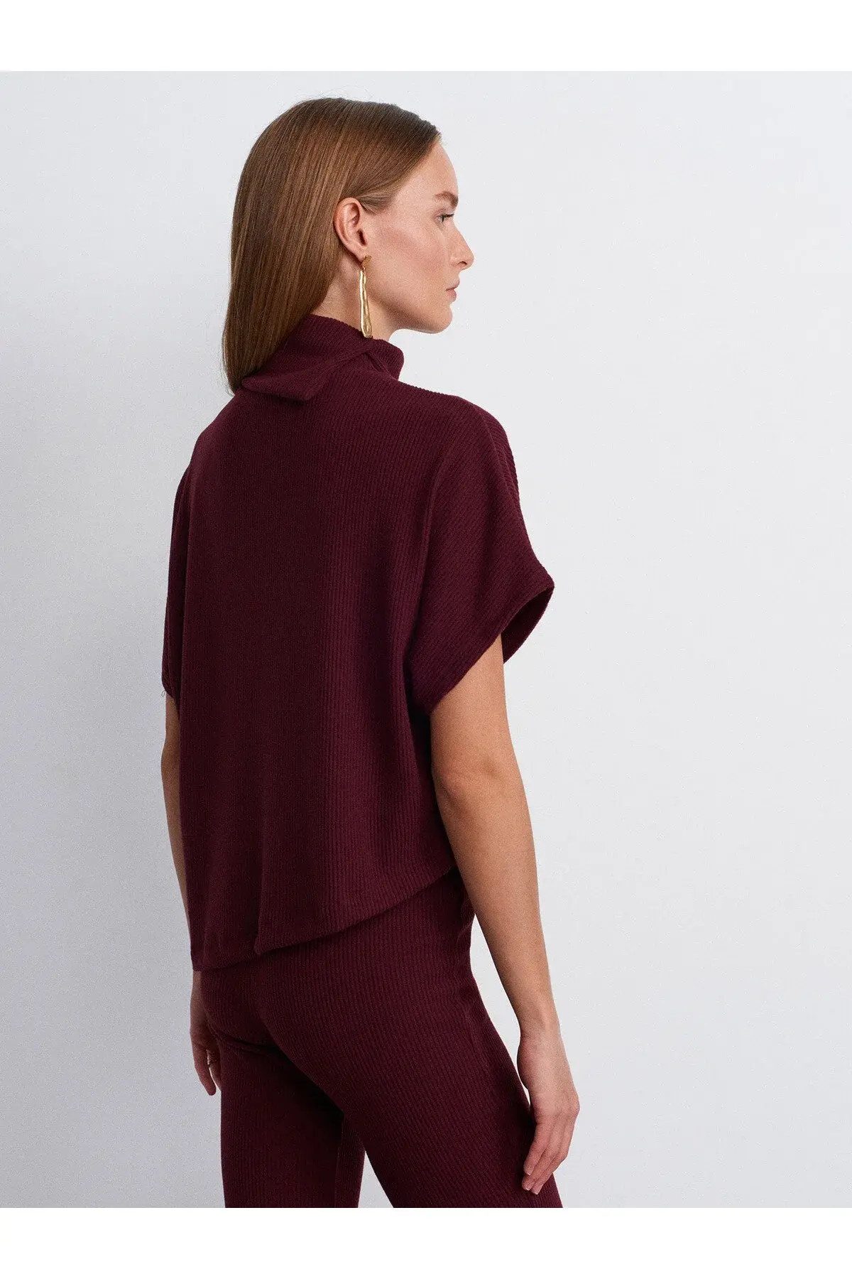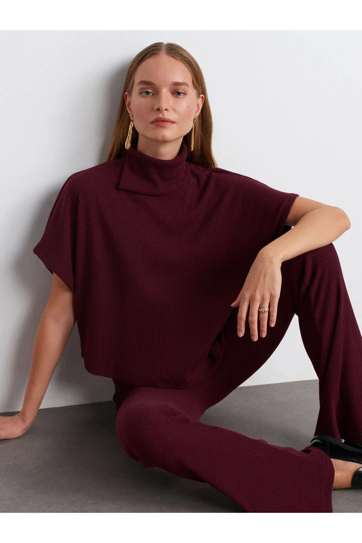 Asimetrik Kesim Boğazlı Top 32239bordo