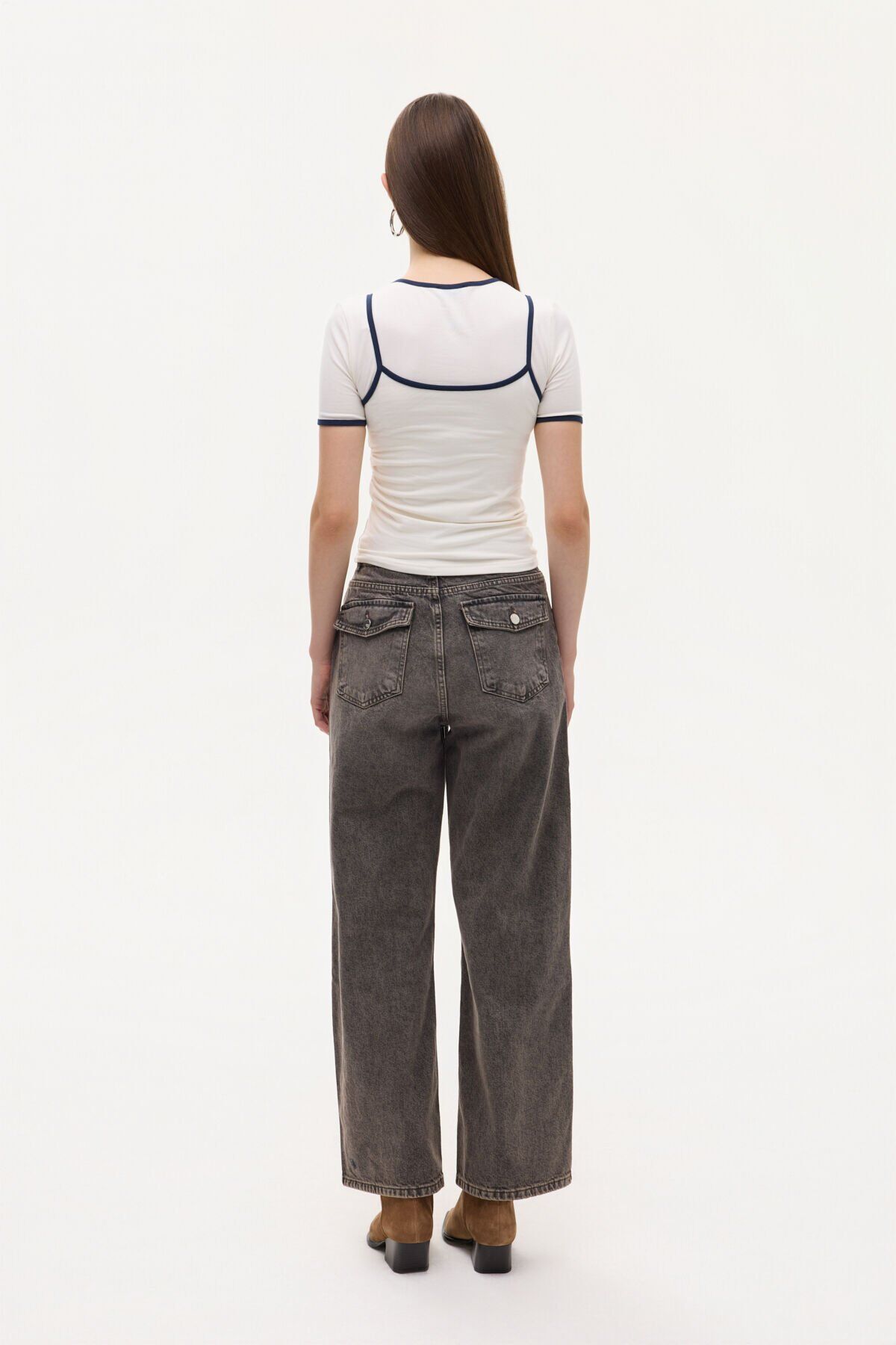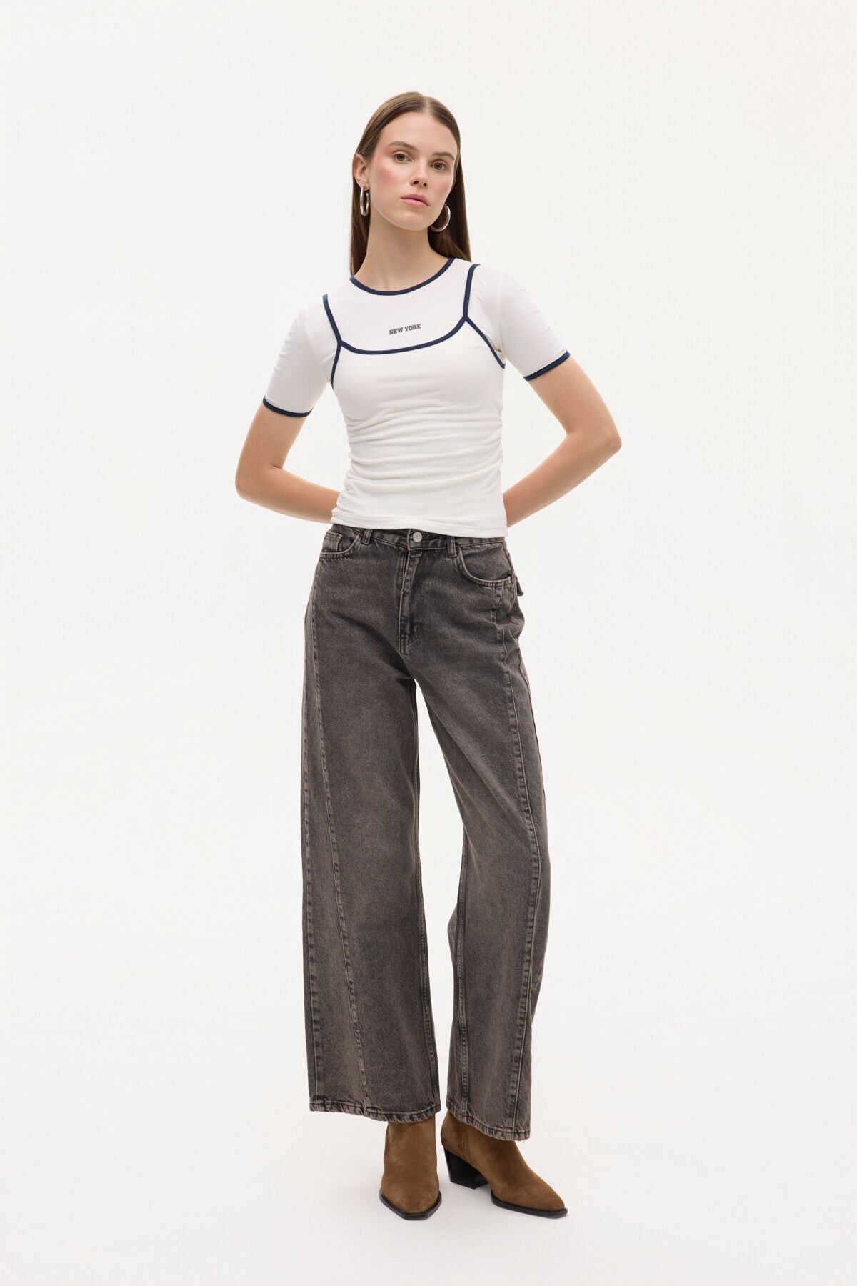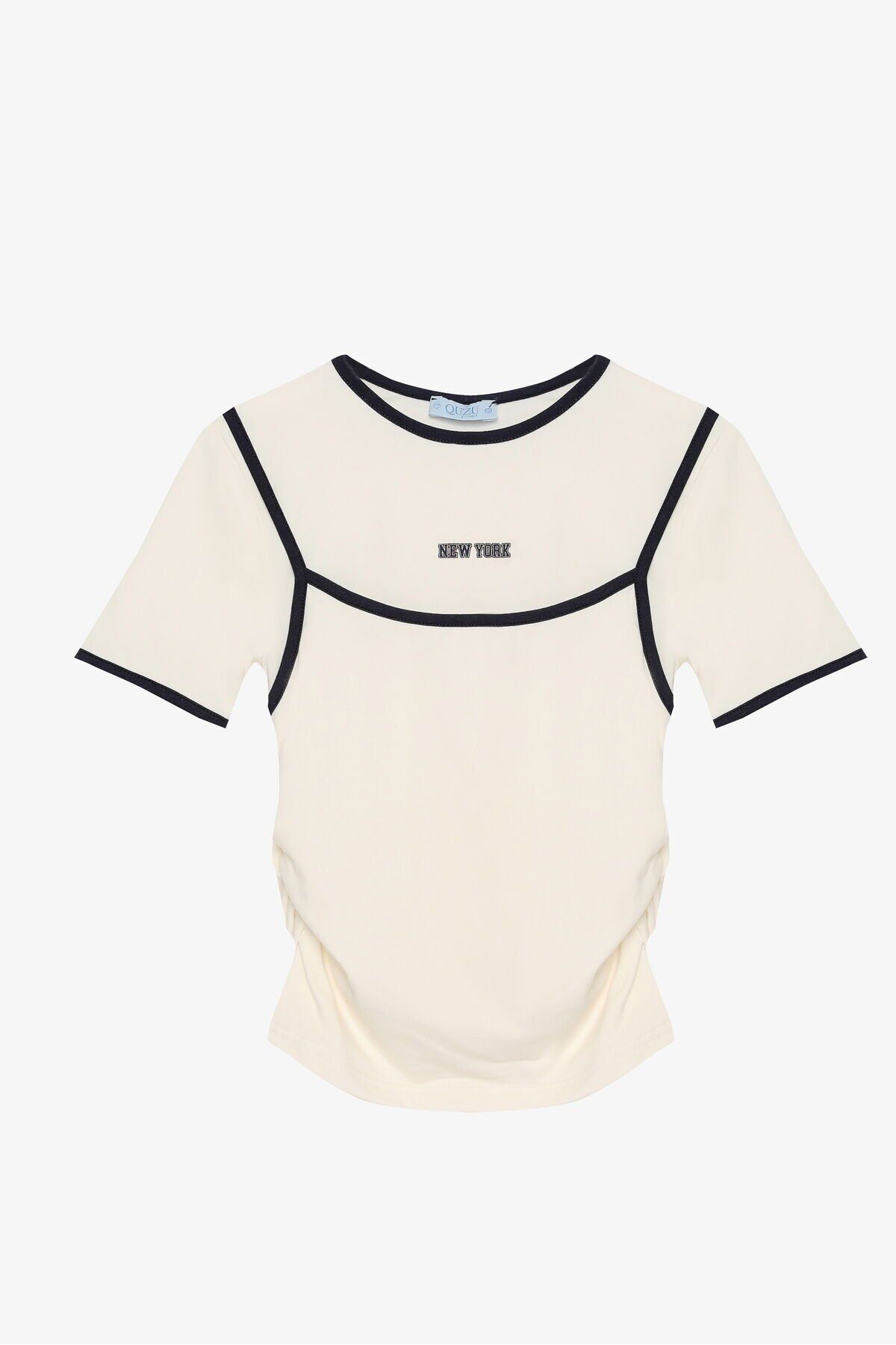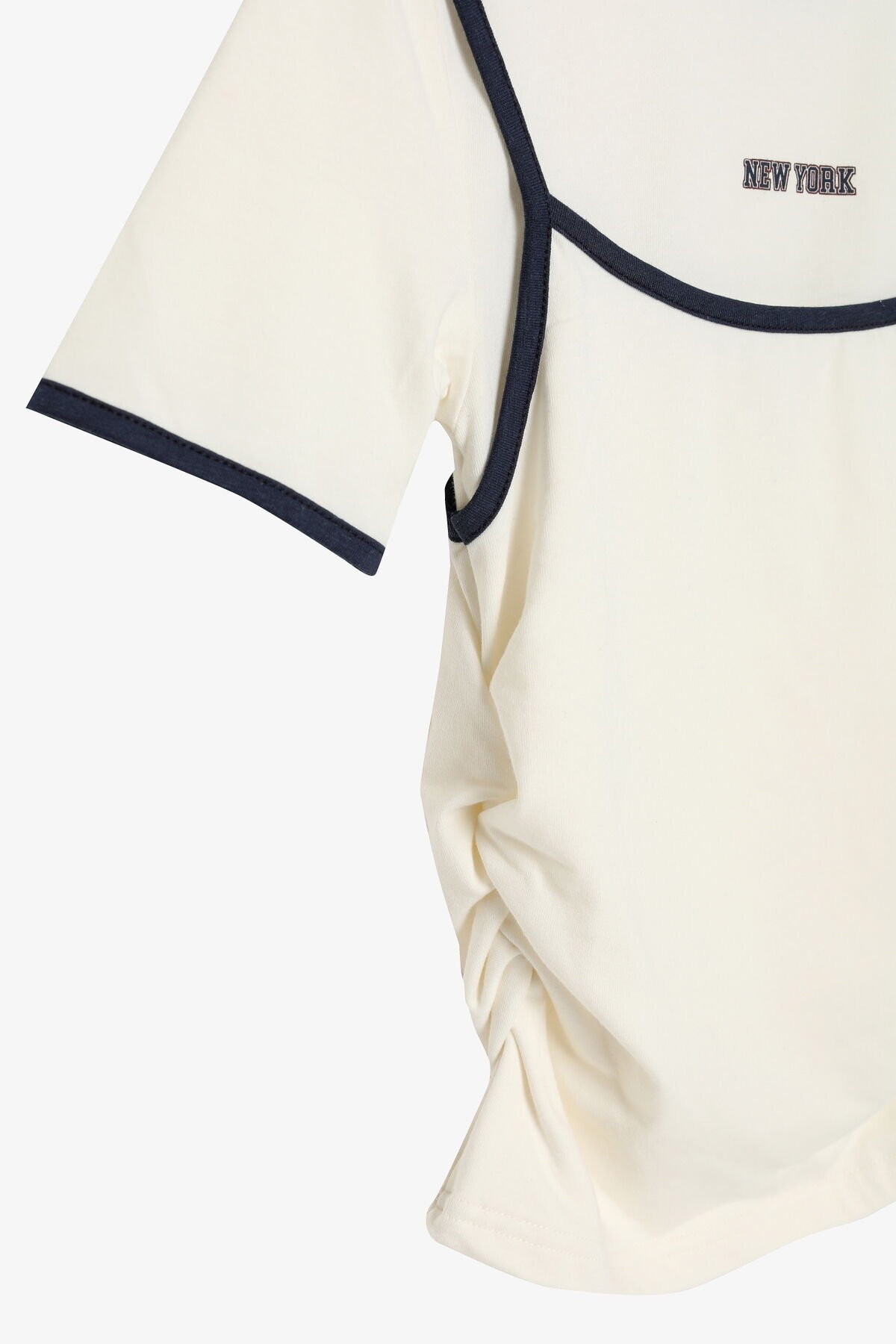 Atlet Detaylı Yan Büzgülü Bisiklet Yaka Tişört