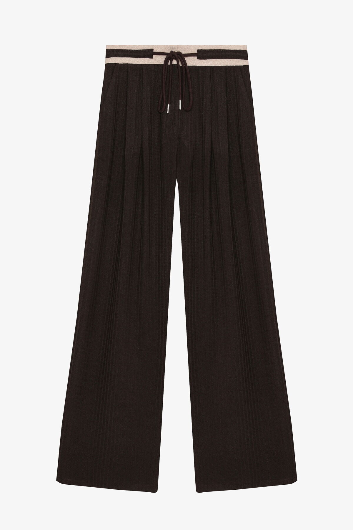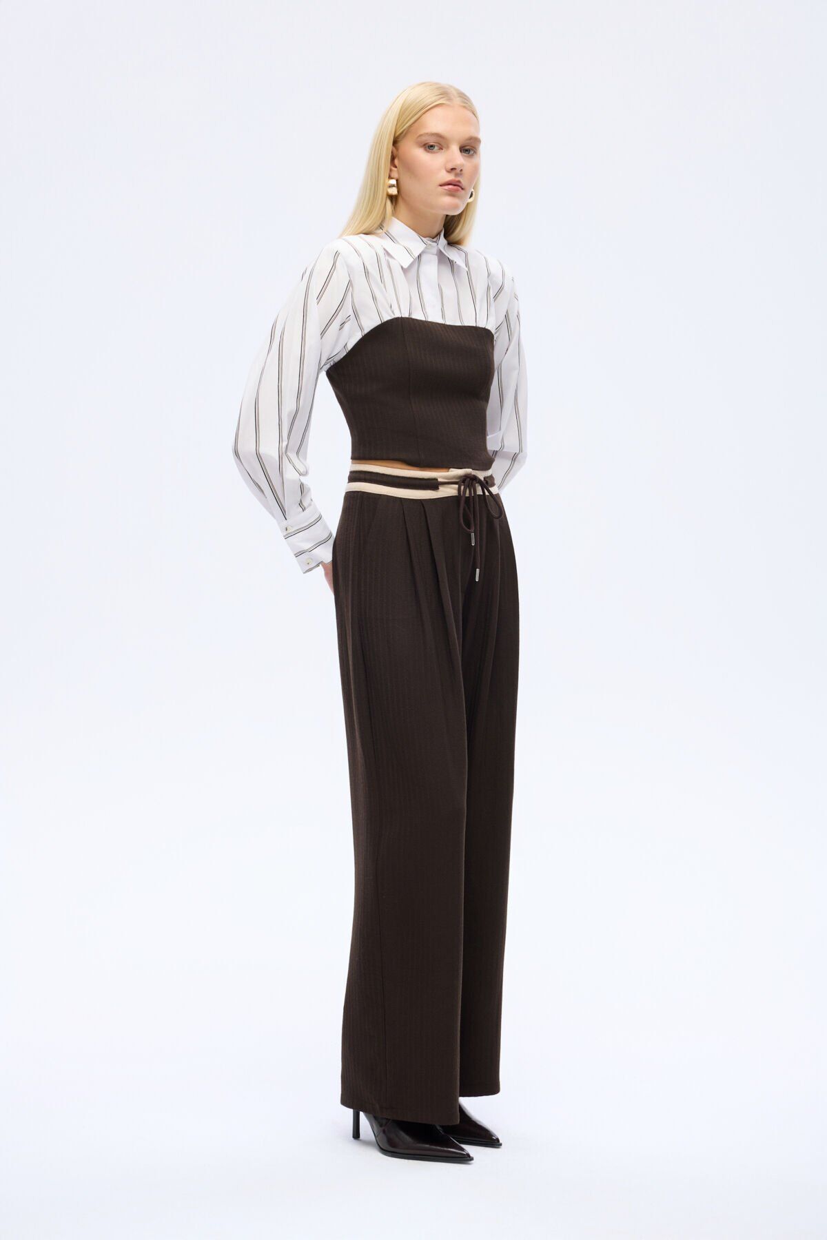 Bağcıklı Kontrast Bel Bol Paça Pantolon
