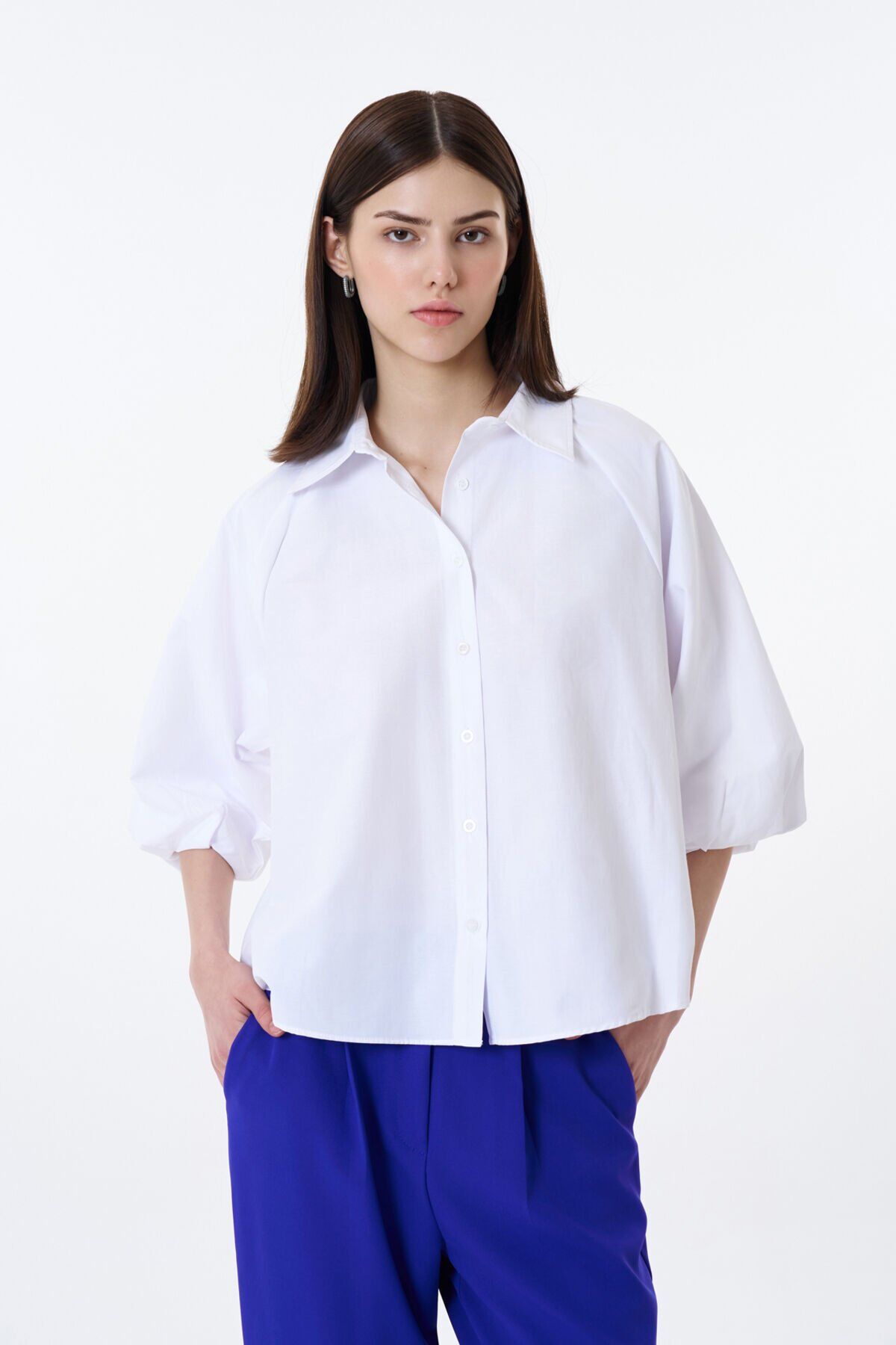 Balon Kol Detaylı Düğmeli Gömlek