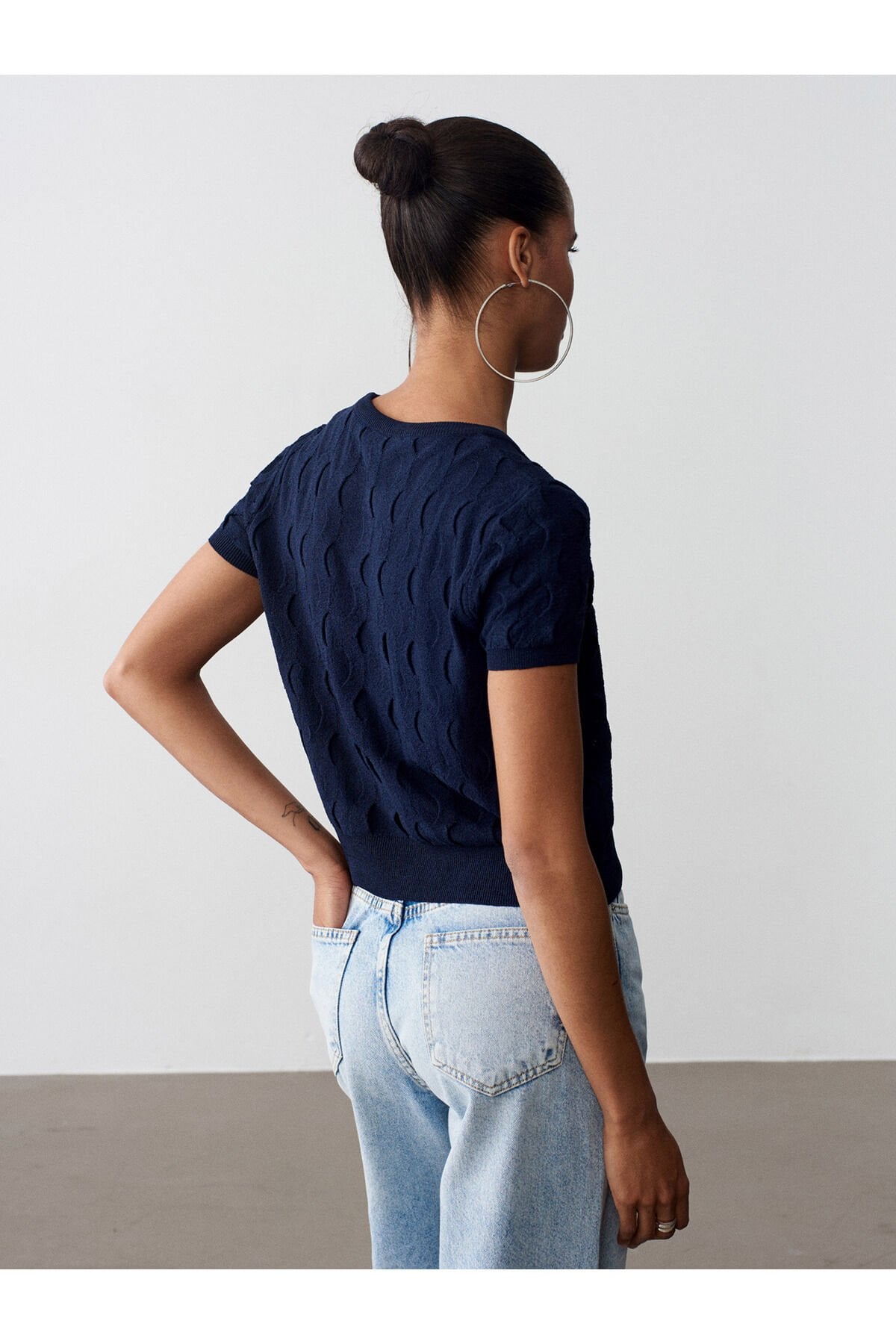 Ürün İçeriği : %100 Poliamid Mankenin Ölçüleri : Boy : 176 Göğüs : 79 Bel : 60 Kalça : 88 Numune Bedeni : 36/Standart Ürün Ölçüleri : Boy : 46 cm En : 40 cm Kol : 17 cm