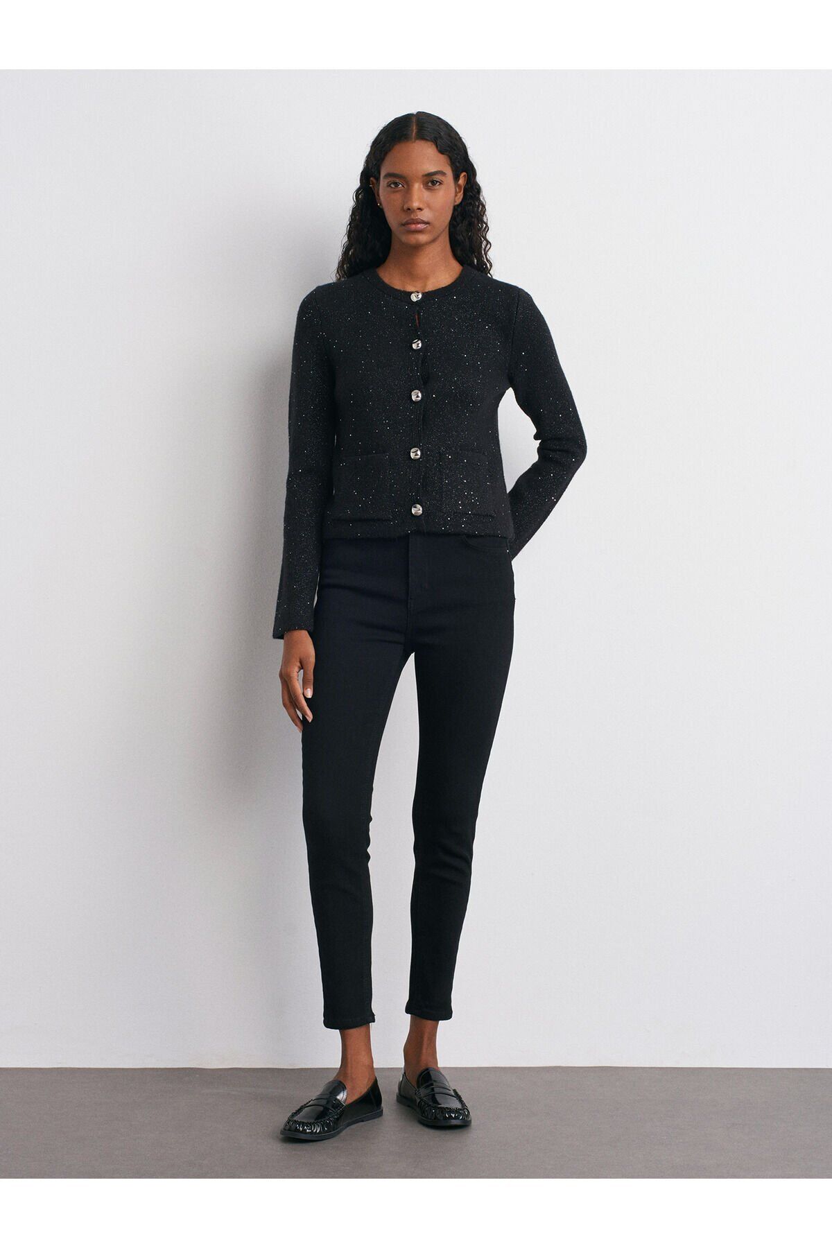 Ürün İçeriği : %32 Akrilik %32 Polyester %24 Poliamid %7 Viskoz %3 Yün %2 Elastan Mankenin Ölçüleri : Boy : 180 Göğüs : 80 Bel : 60 Kalça : 92 Numune Bedeni : 36/Standart Ürün Ölçüleri : Boy : 53 cm En : 45 cm Kol : 67 cm