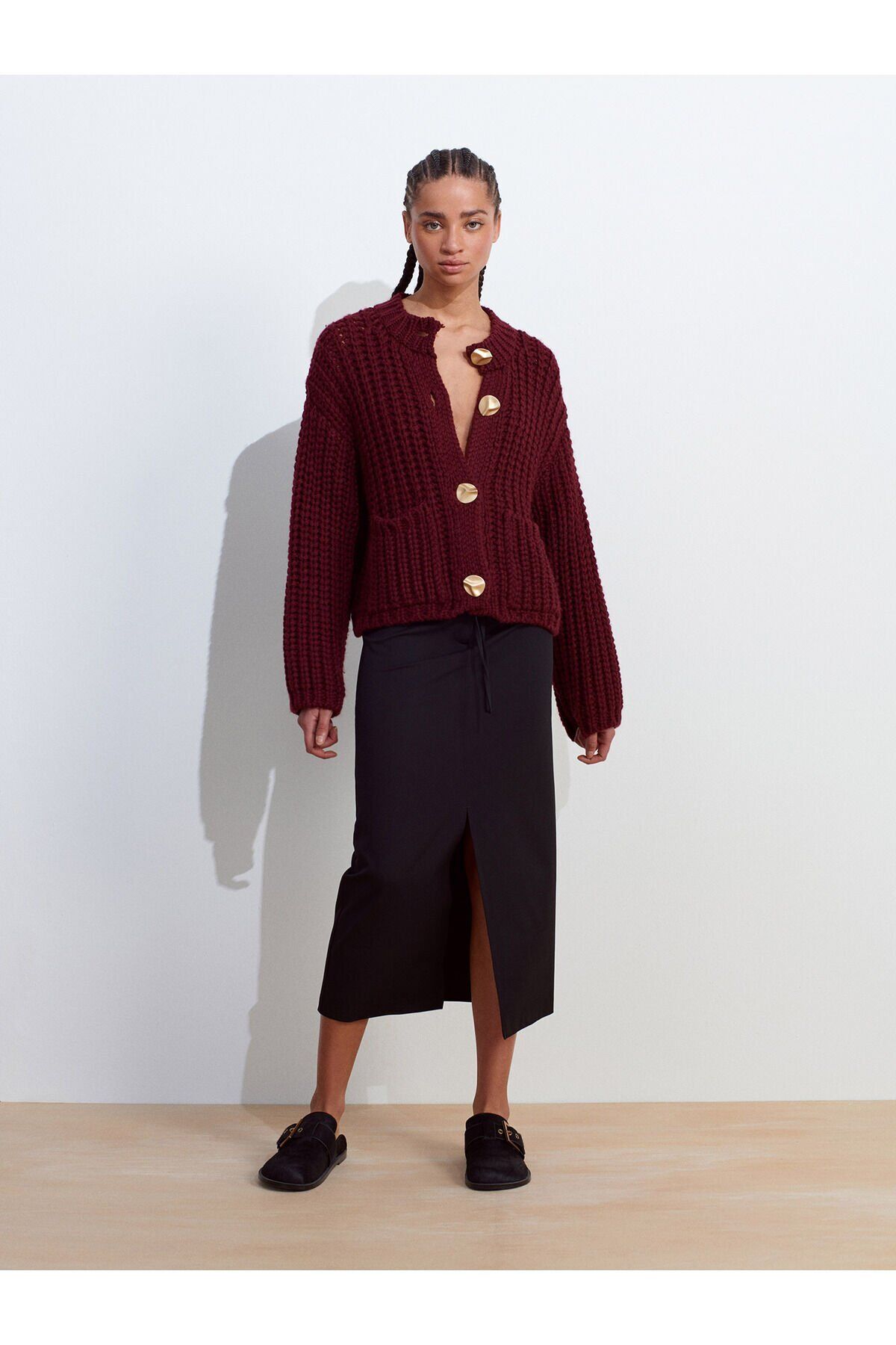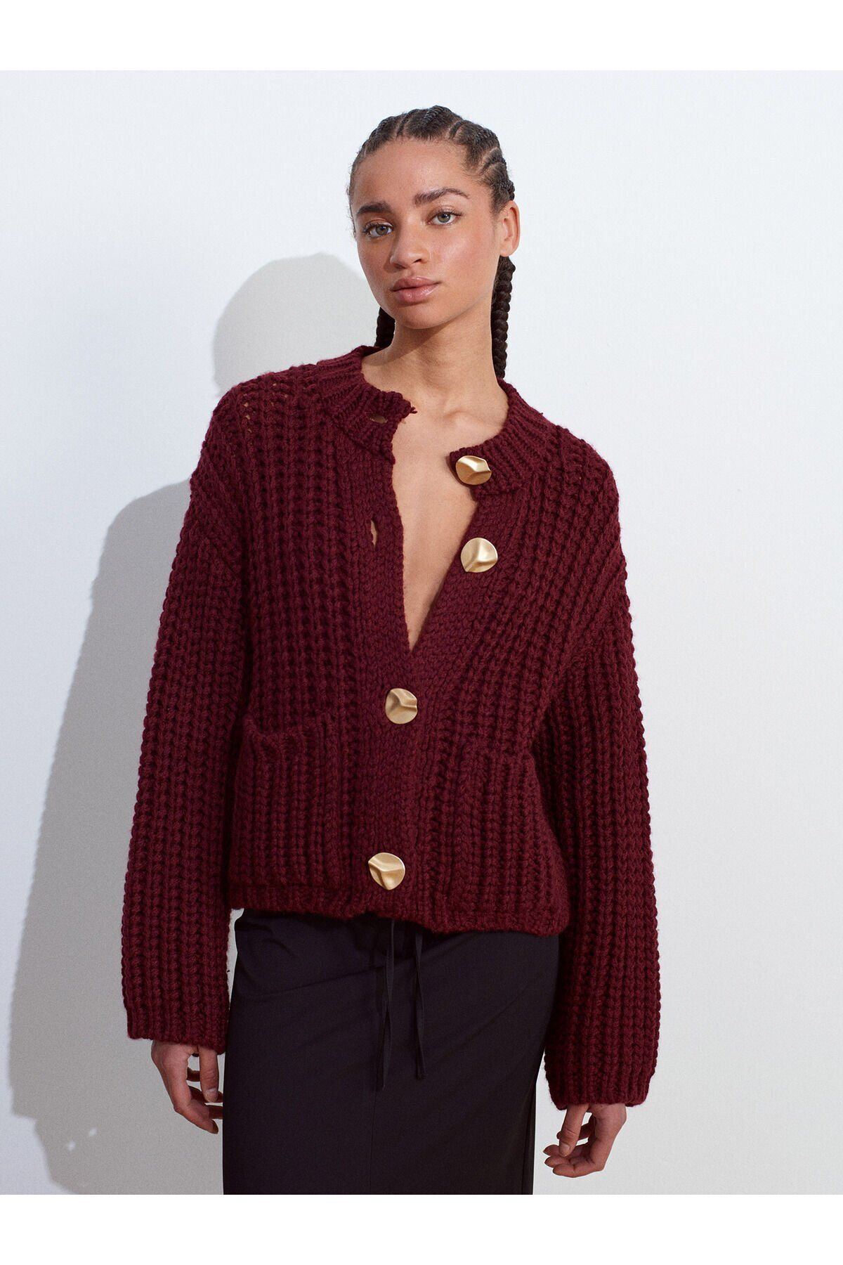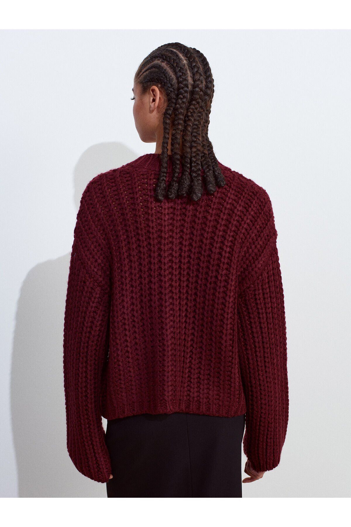 Ürün İçeriği : %90 Akrilik %10 Poliamid Mankenin Ölçüleri : Boy : 175 Göğüs : 82 Bel : 59 Kalça : 90 Numune Bedeni : 36/Standart Ürün Ölçüleri : Boy : 52 cm En : 57 cm Kol : 54 cm