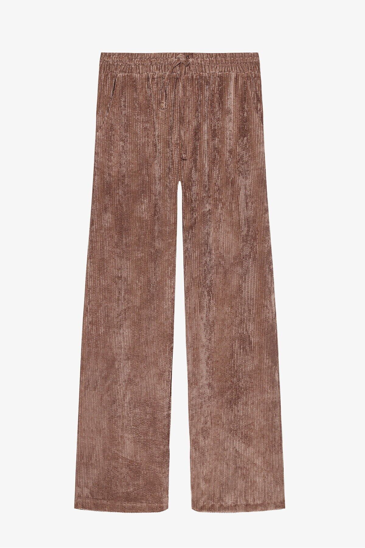 .; Bol paça kadife kumaş beli lastikli pantolon.;