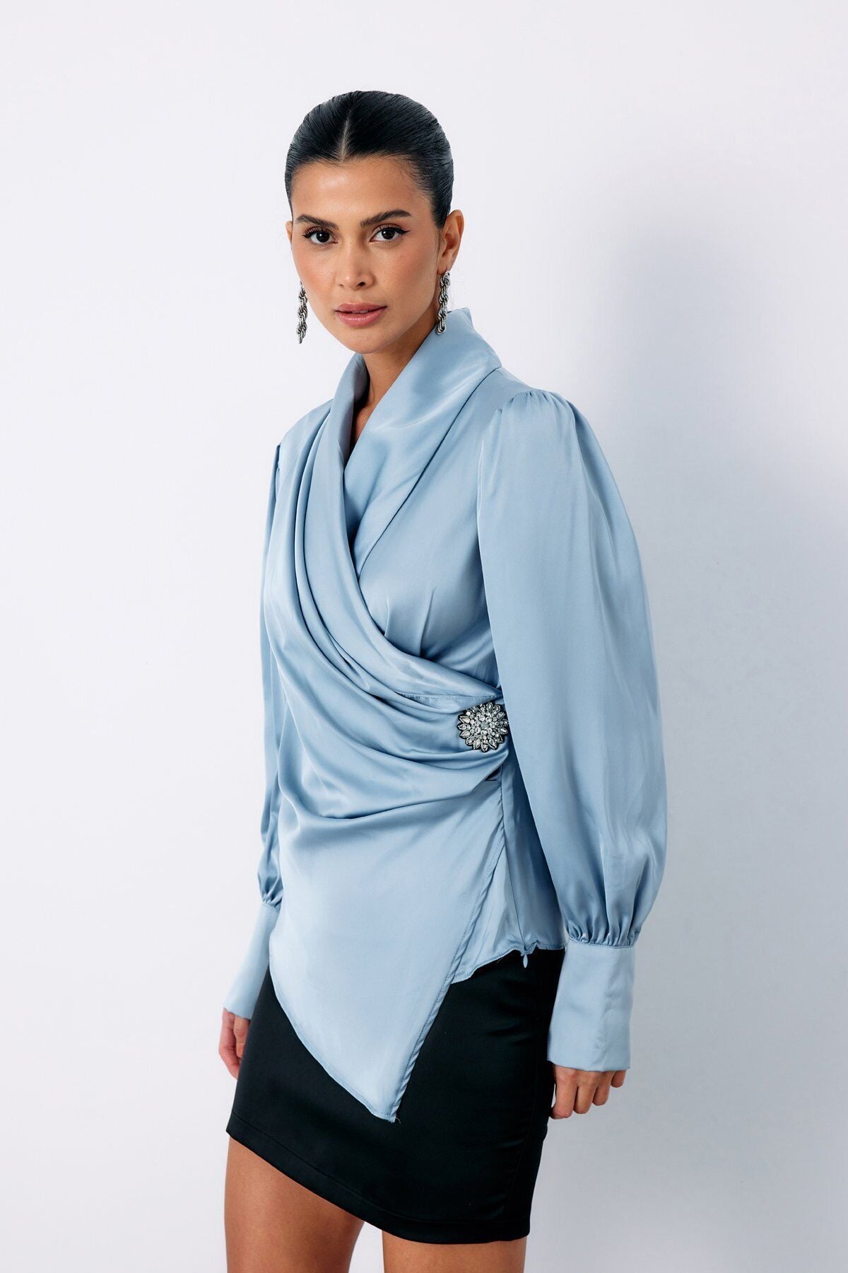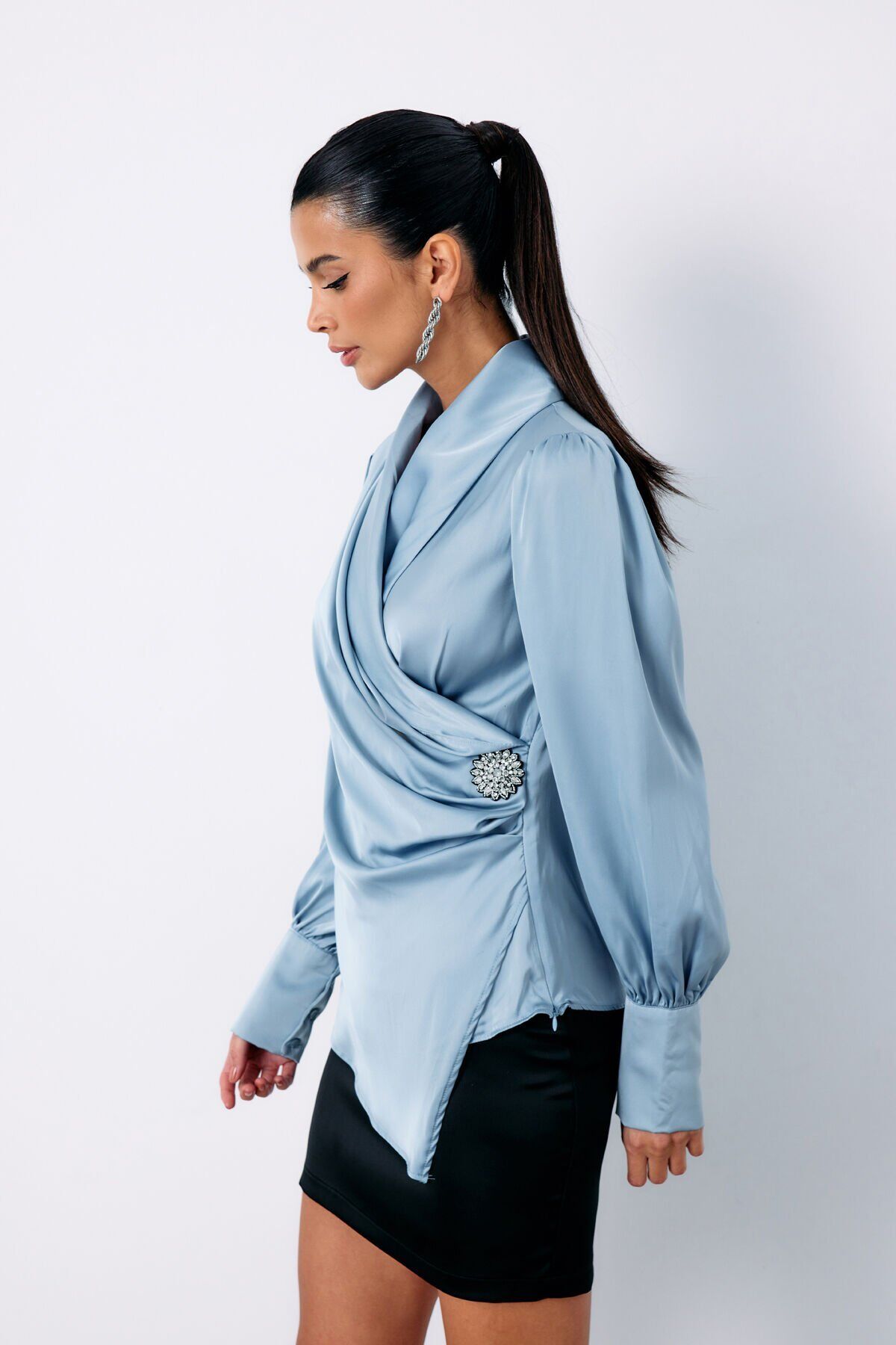 Broşlu Kruvaze Bluz