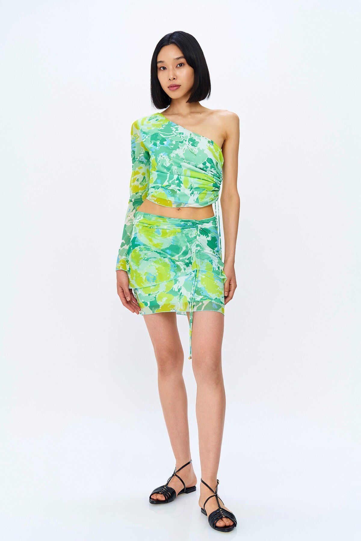 Modern ve şık bir görünüm için crop siluet tasarımıyla günlük kullanıma uygun; Polyester karışımlı kumaşı sayesinde dayanıklılık ve konforu bir arada sunar; Büzgülü detayları ile feminen bir dokunuş katarken, desenli yapısıyla göz alıcı bir stil oluşturur; Dokuma kumaş tipi, eteğinize hafif ve nefes alabilen bir yapı kazandırır; Tüm yaş gruplarına hitap eden tasarımıyla geniş bir kullanıcı yelpazesine sahiptir; Basic koleksiyonun sadeliğiyle her türlü üst giyimle kolayca kombinlenebilir; Orta kalınlıkta kumaşı mevsim geçişlerinde ideal bir tercih sunar; Type 1 yıkama talimatına uygun şekilde bakım yapıldığında uzun ömürlü kullanım sağlar; Mini boyu ile dinamik ve genç bir görünüm kazandırırken, astarlı yapısı rahatlık sunar; Straight kalıbı sayesinde vücut hatlarınıza uyum sağlayarak konforlu bir kullanım imkanı tanır; Düz ürün tipi, sade ve zamansız bir ş;