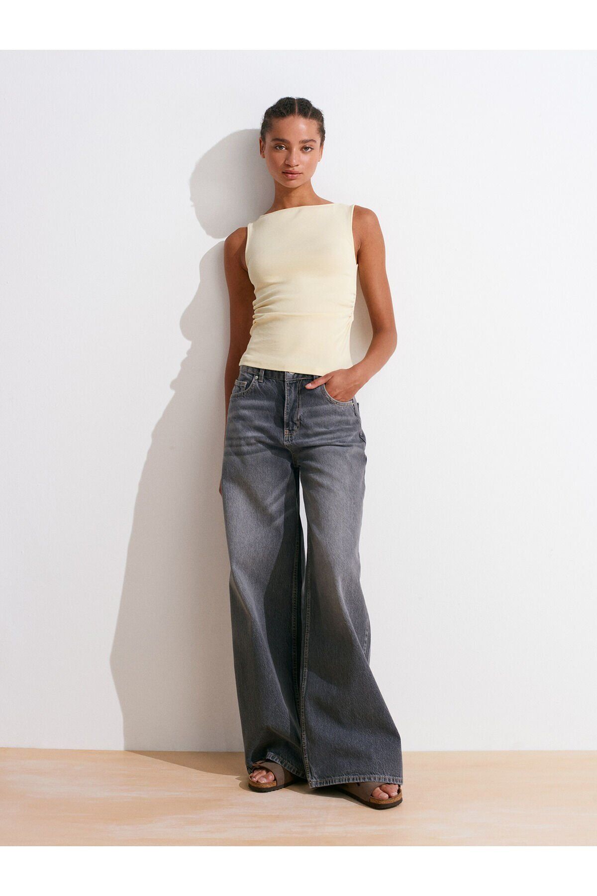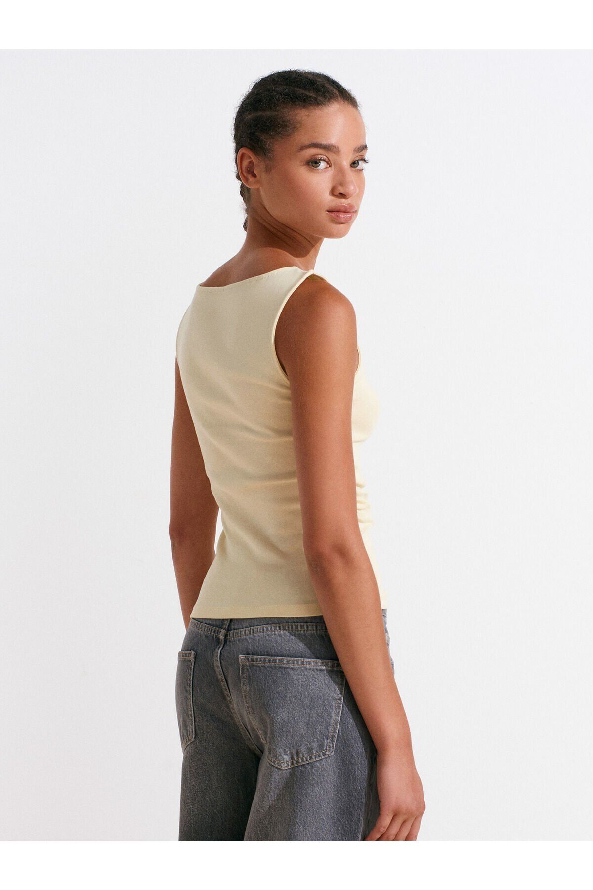 Ürün İçeriği : %94 Pamuk %6 Elastan Mankenin Ölçüleri : Boy : 175 Göğüs : 82 Bel : 59 Kalça : 90 Numune Bedeni : 36/Standart Ürün Ölçüleri : Boy : 54 cm En : 30 cm Kolevi: 22 cm