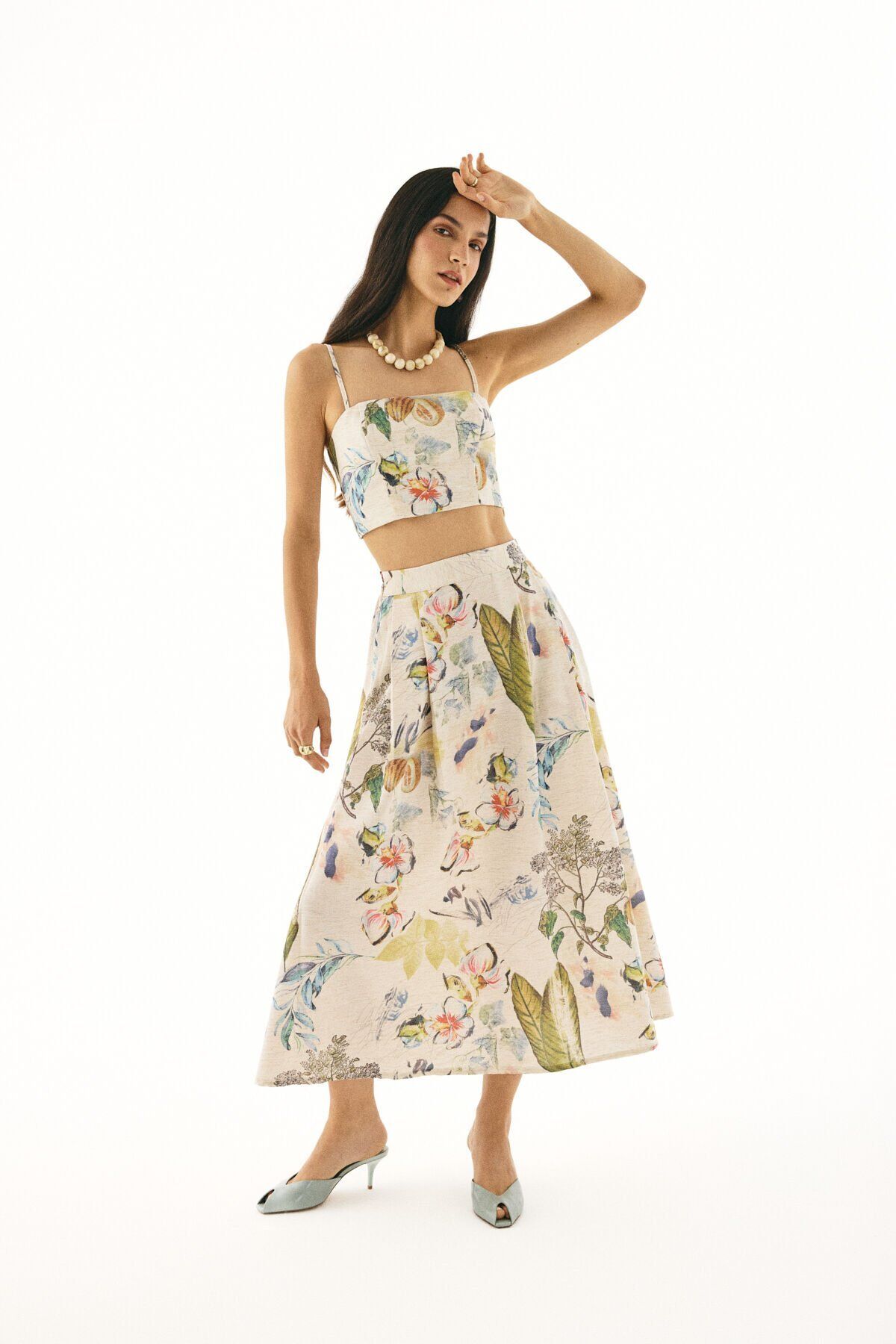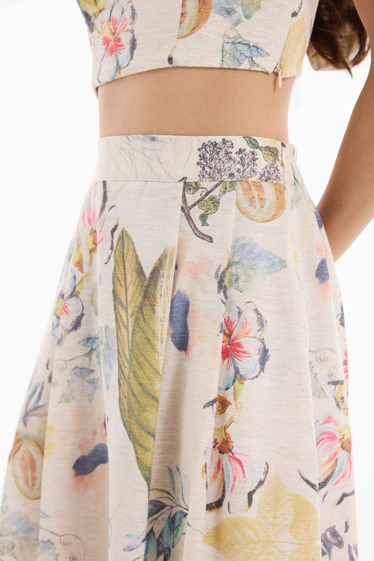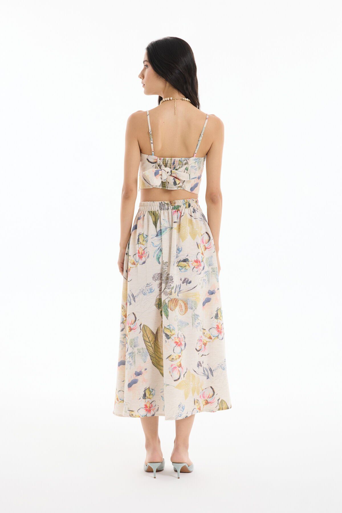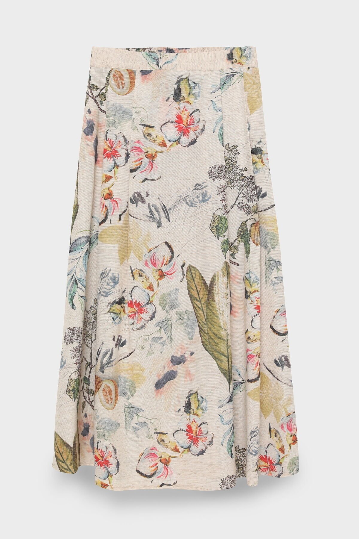 Çiçek Desenli Pileli Keten Midi Boy Etek