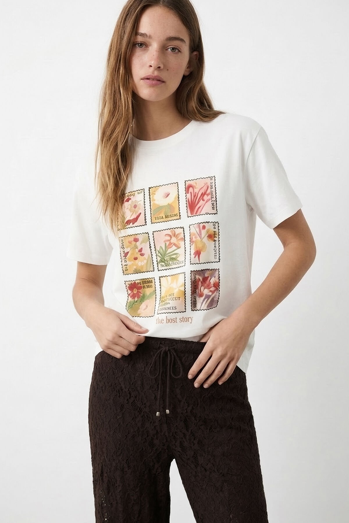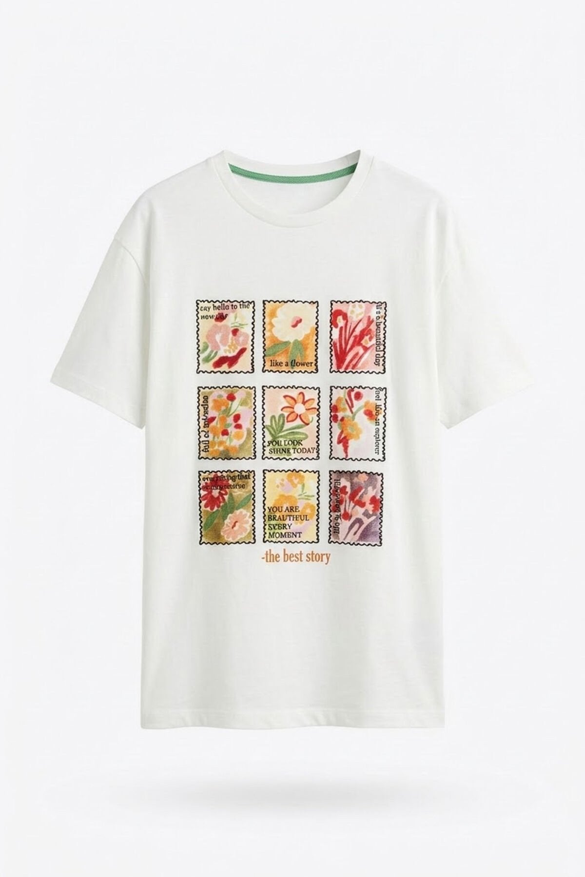 Çiçek Kolaj Baskılı Oversize Tişört