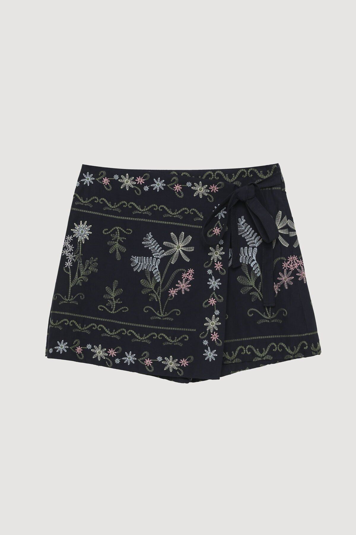 - Zarif nakış detayları ile süslenmiş, her mevsim rahatlıkla tercih edilebilecek şık bir tasarım.; - Pratik bağlama veya bağcık özelliği sayesinde kolayca giyilip çıkarılabilir ve kişisel zevke göre ayarlanabilir.; - Kısa boy kesimi ile yaz aylarında serinlik sağlarken, günlük kullanım için idealdir.; - Bel kısmındaki yüksek bel tasarımı vücut hatlarını nazikçe sararak feminen bir siluet oluşturur.; - Pamuk ve polyester karışımı kumaşı hem konforlu hem de dayanıklı bir yapı sunar.; - Günlük ortamlarda rahatlıkla tercih edebileceğiniz, çiçek desenli mom kalıp şort etek.; - Lacivert rengiyle kolayca kombinlenebilen ve zamansız bir stil sunan bu parça, gardırobunuzun vazgeçilmezleri arasında yer alacak.
