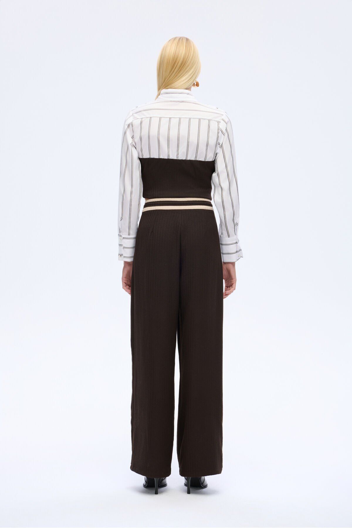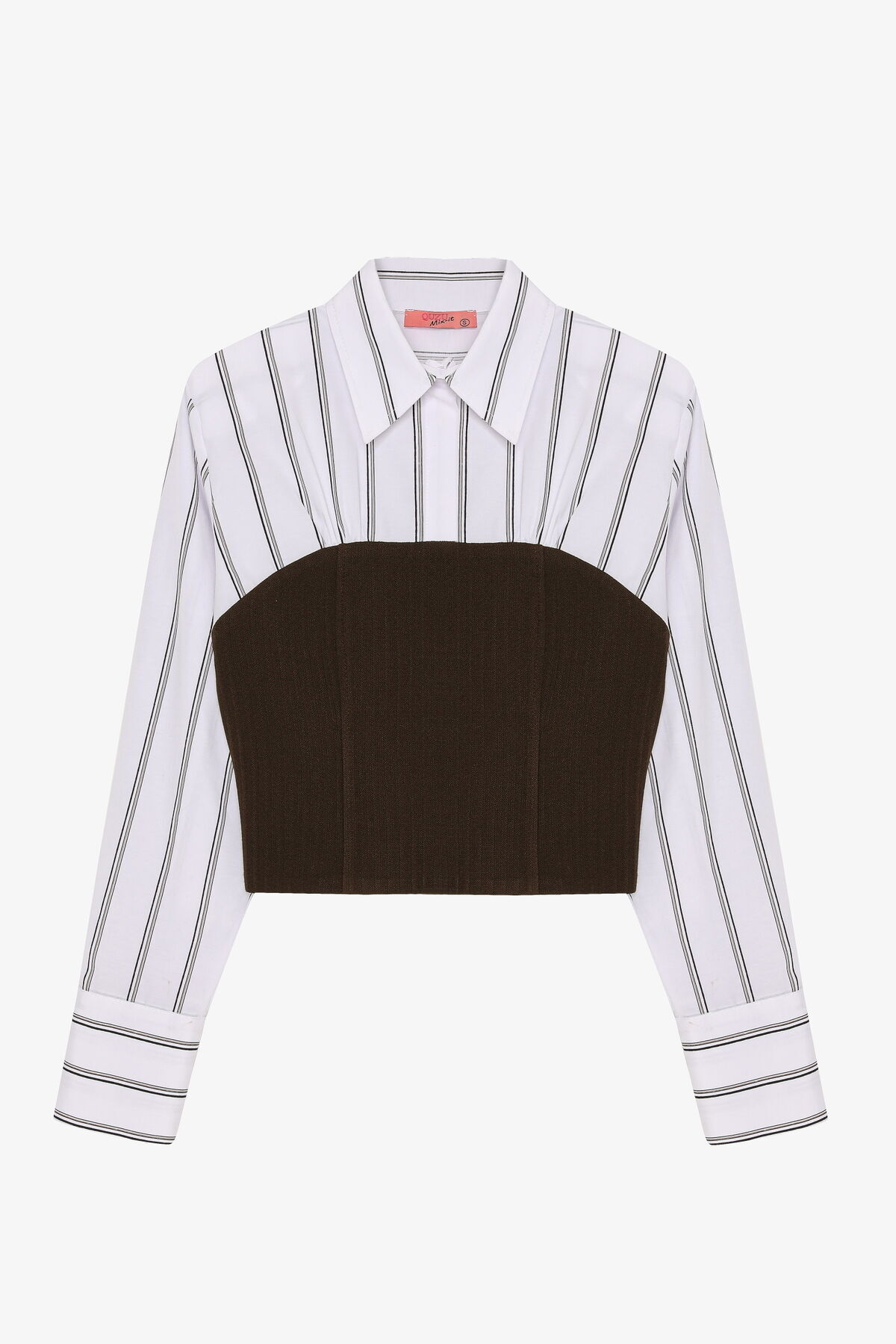 Çizgili Gömlek Garnili Büstiyer Bluz