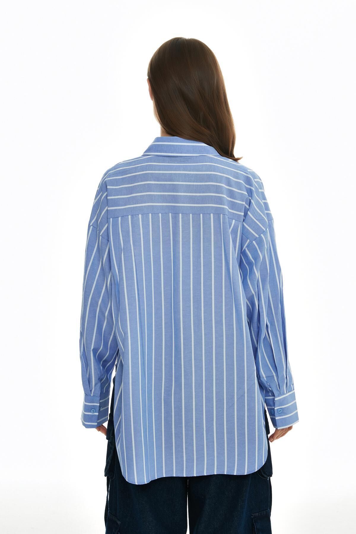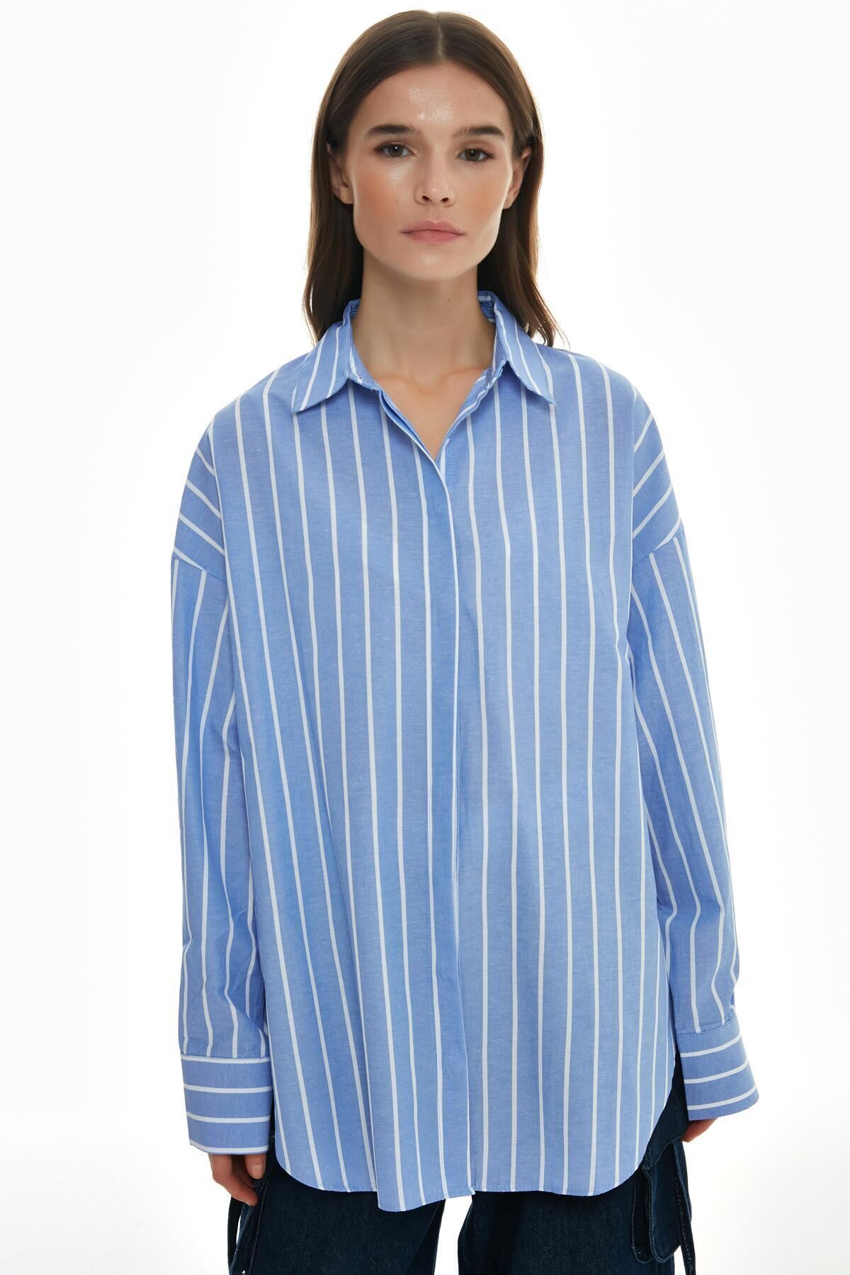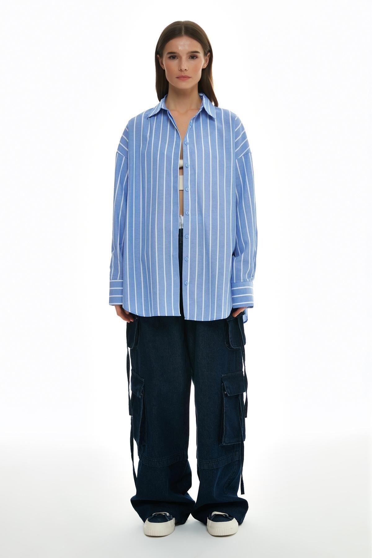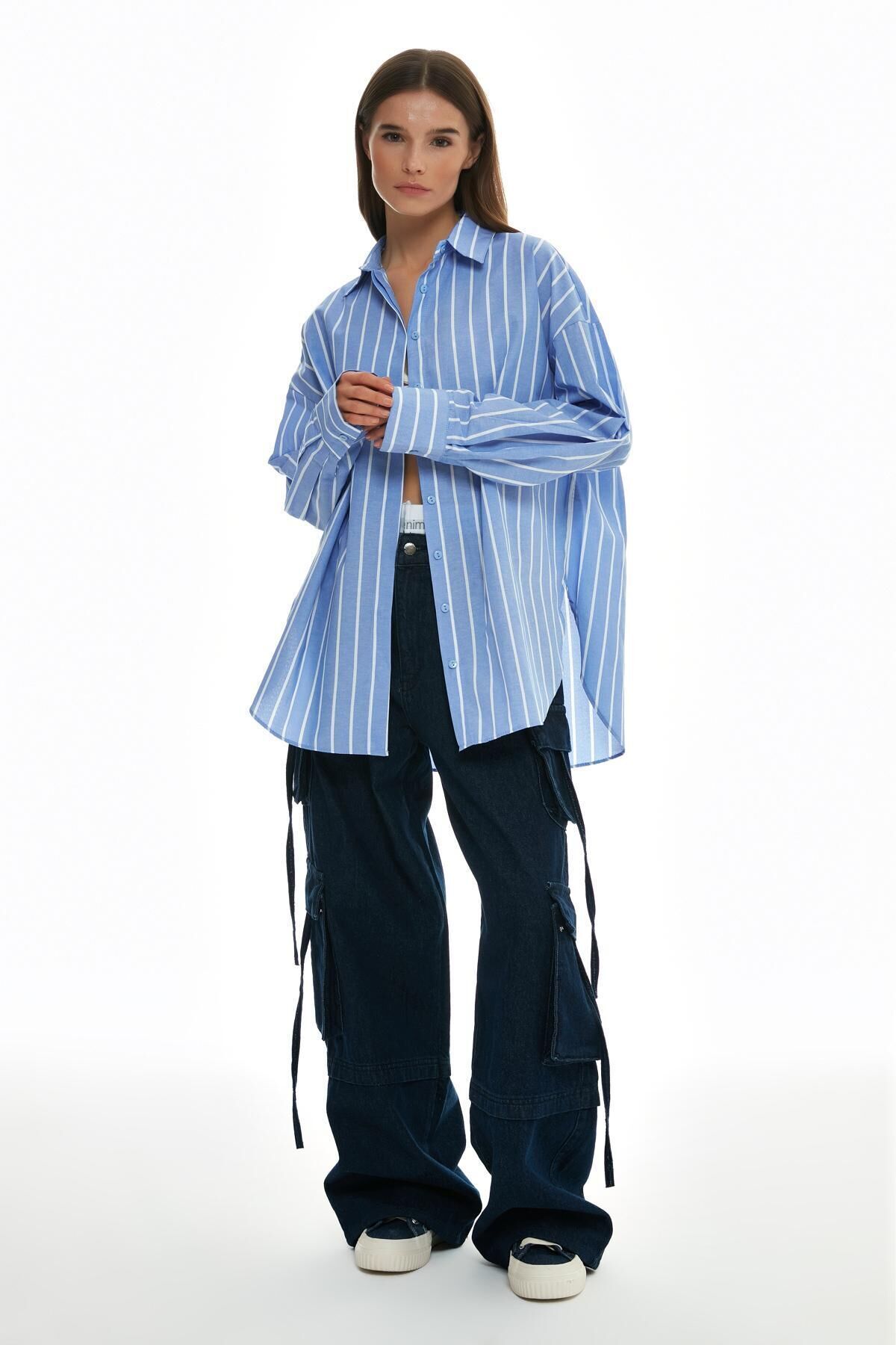 Ürün Detayları: Gİzlİ düğmelİ, oversİze, İnce çİzgİlİ, gömlek Kumaş Bilgisi :Pamuklu %65, Polyester %35 Ürün/Manken Ölçüleri : Boy :81 cm Göğüs : 68 cm Manken Ölçüleri : Boy:1; 70 Bel:60 Göğüs:82 Kalça:89 Bedeni:S Yıkama Talimatı: Makinede 30° Yıkayabilirsiniz Gerektiğinde Klorsuz Çamaşır Suyu Konabilir Kurutma Makinesinde , Normal, Düşük Isıda Düşük Isıda Ütüleyiniz Kuru Temizleme , Az Çözücü Kumaş Tipi:Dokuma Cinsiyet:Kadın / Kız Kalıp:Overshirt Yaş Grubu:Yetişkin;