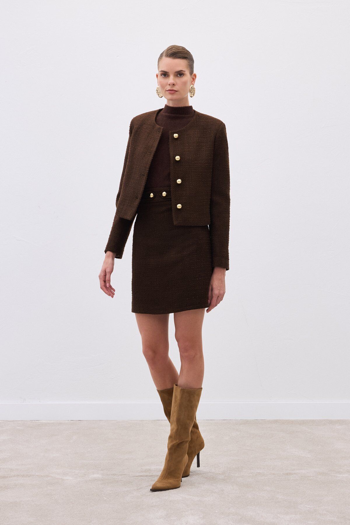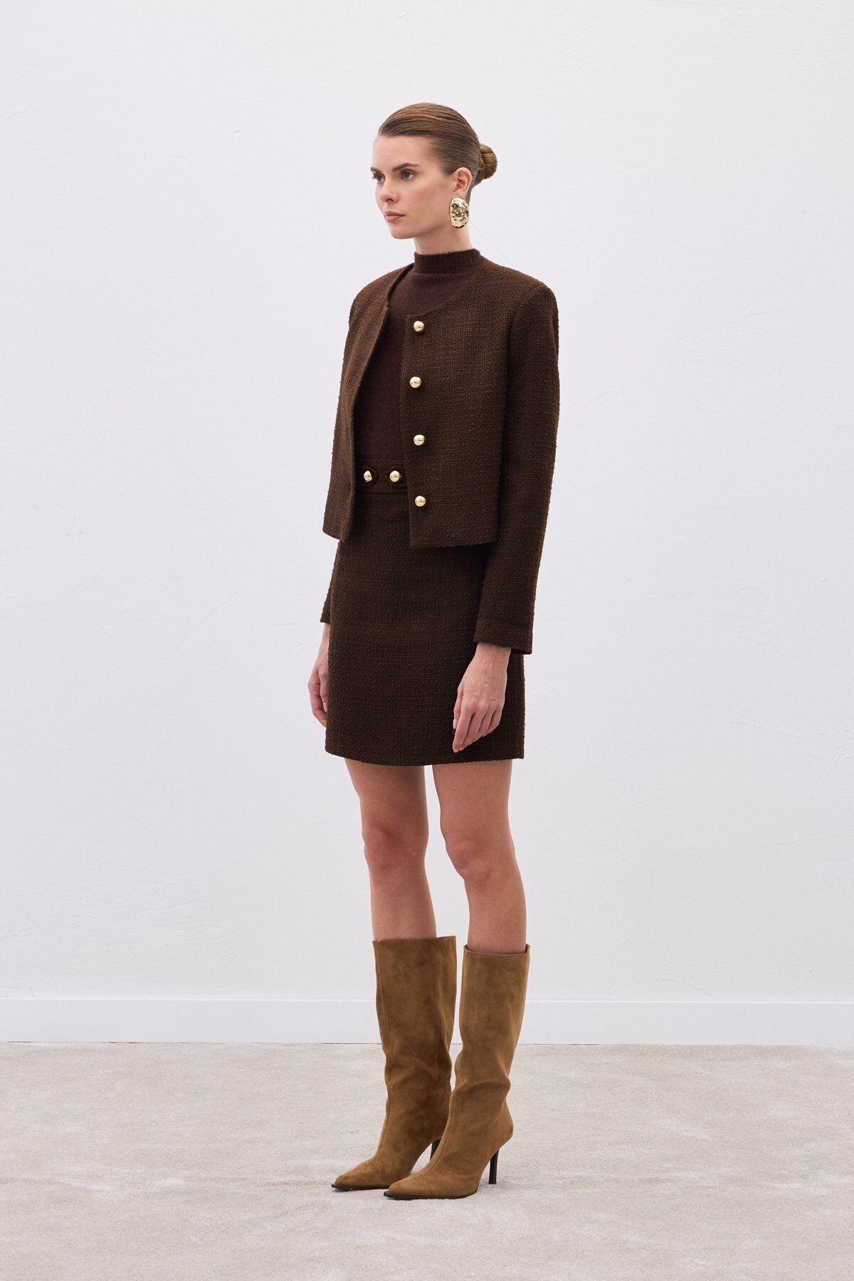 Düğme Detaylı Mini Tüvit Etek