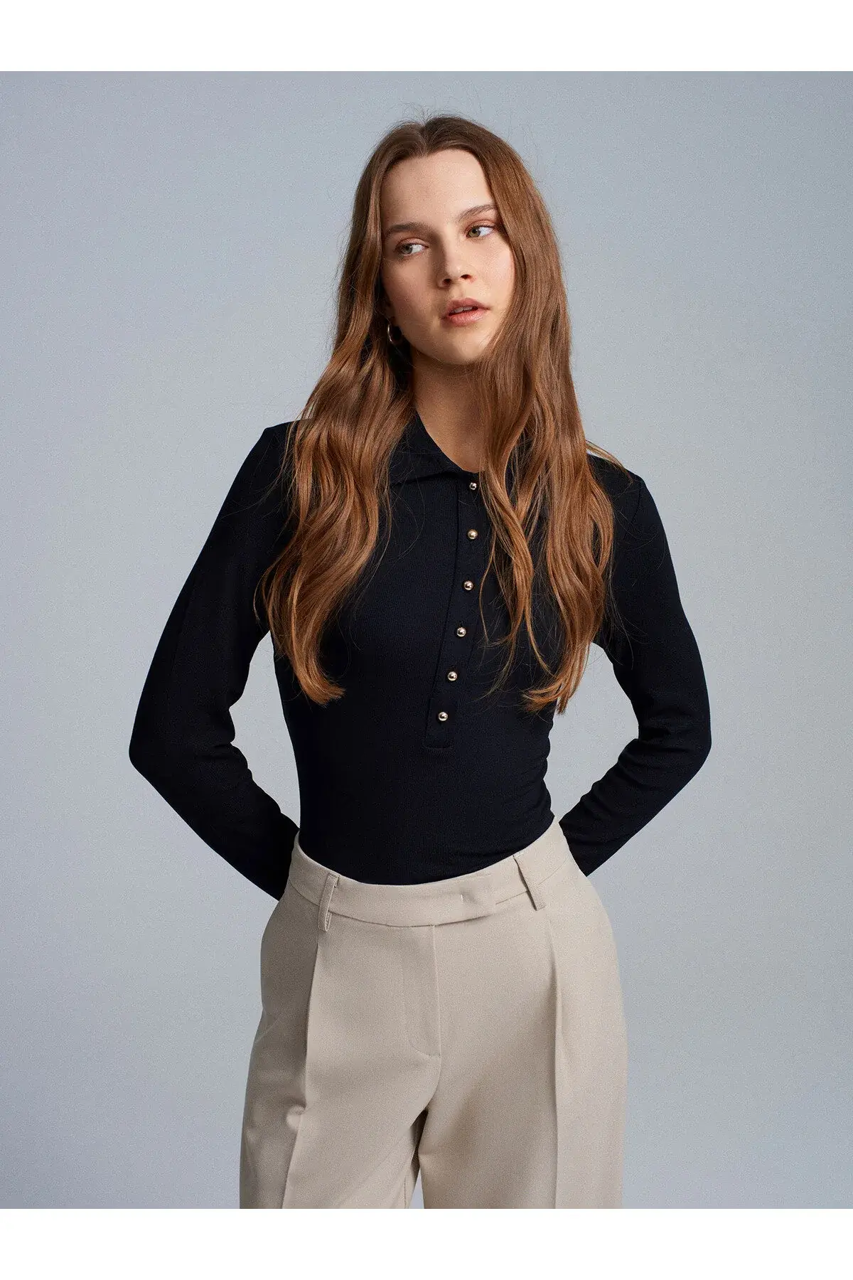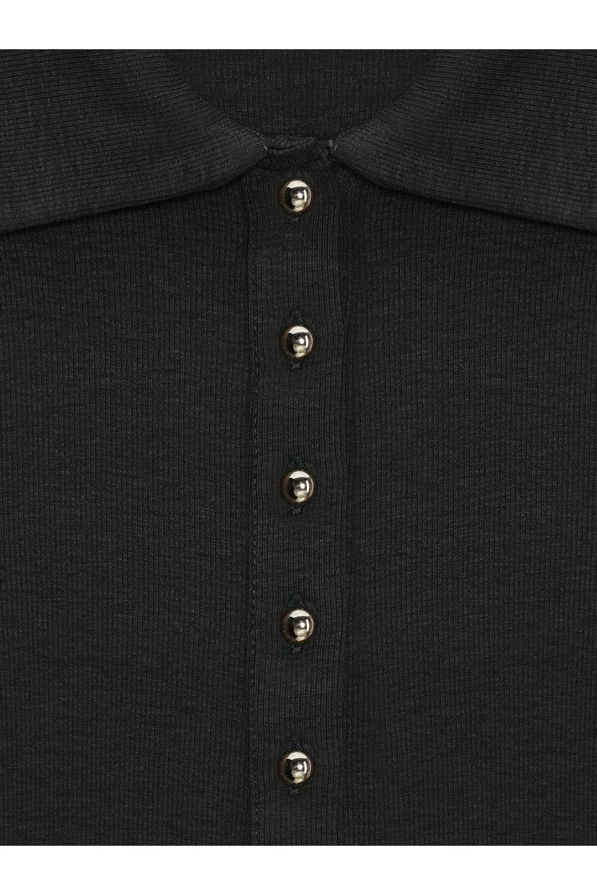 Düğme Detaylı Polo Yaka Top 32671siyah