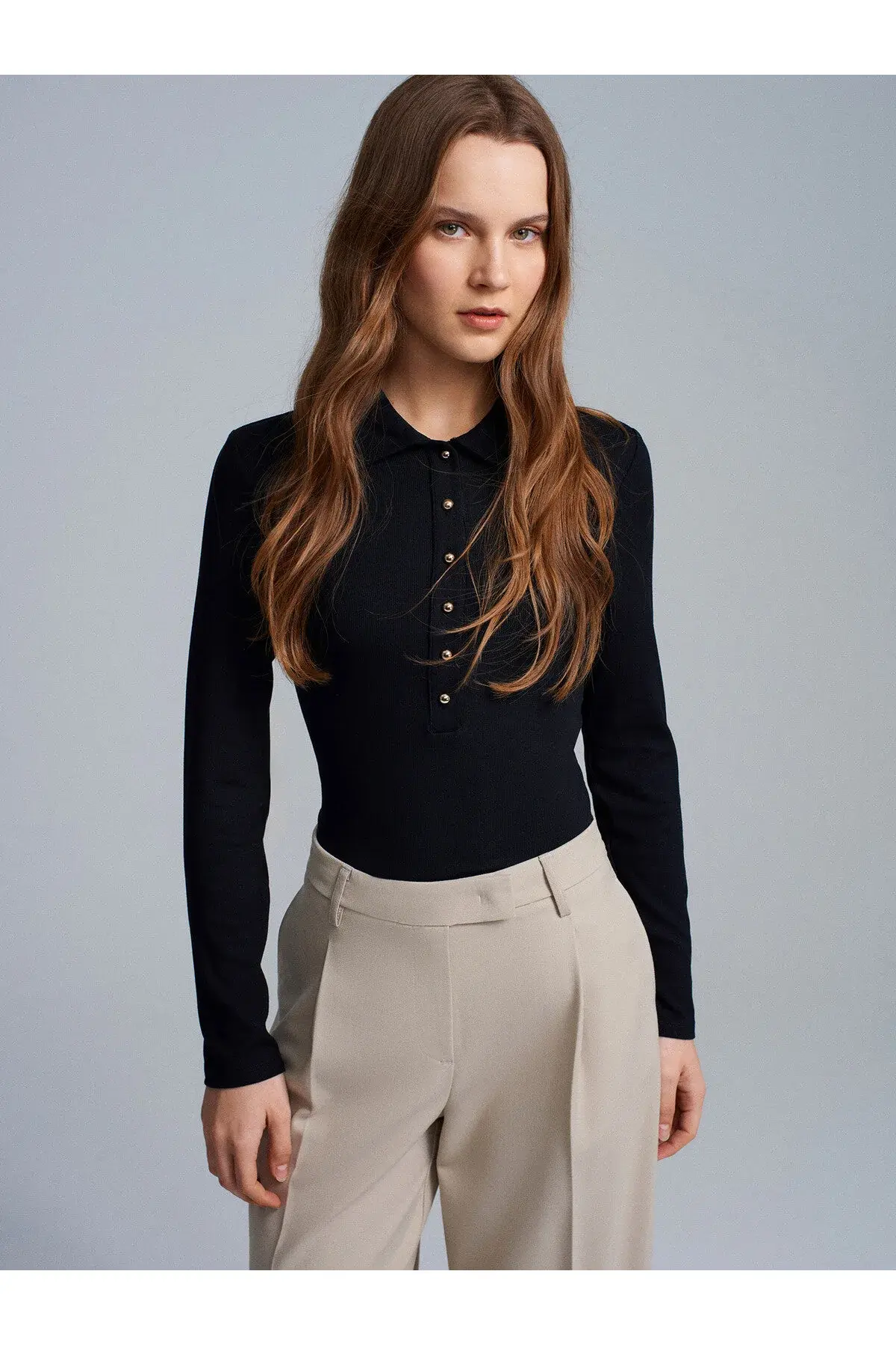 Düğme Detaylı Polo Yaka Top