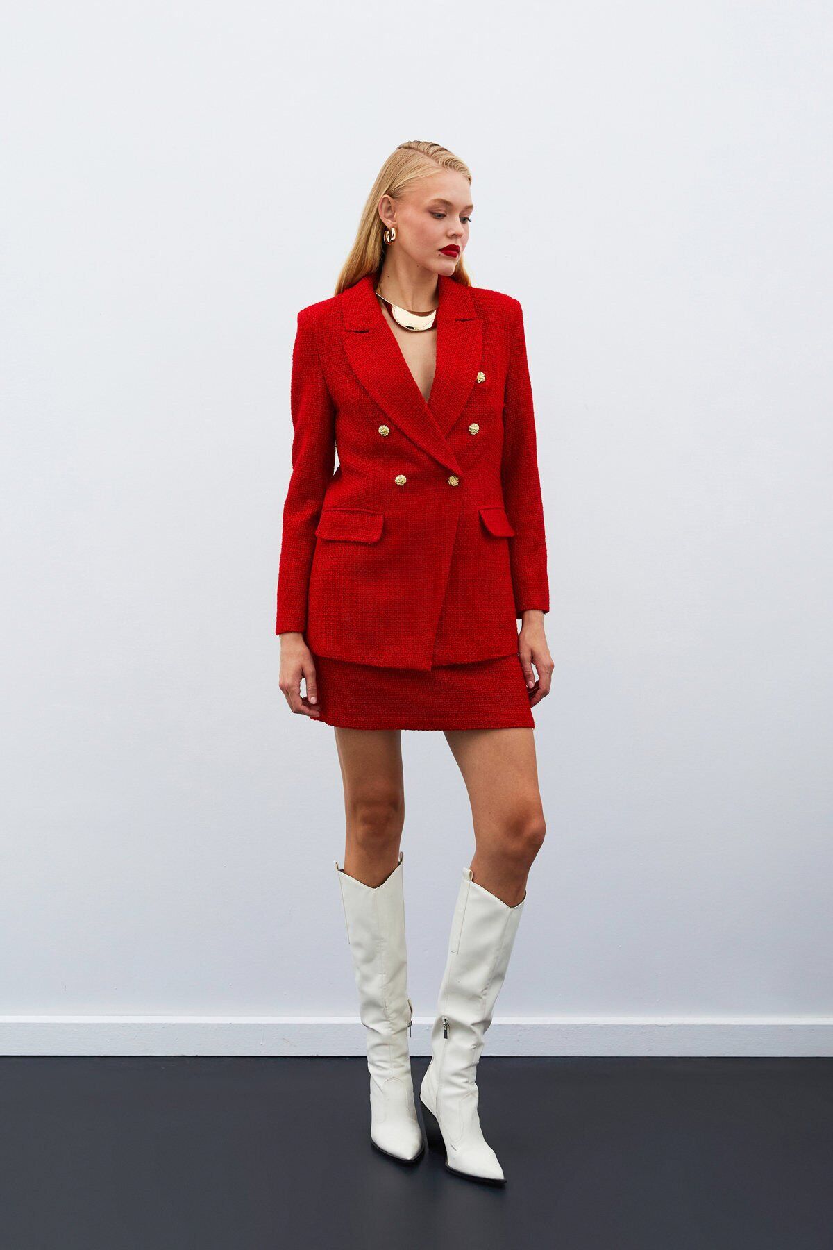 Düğme Detaylı Tüvit Ceket