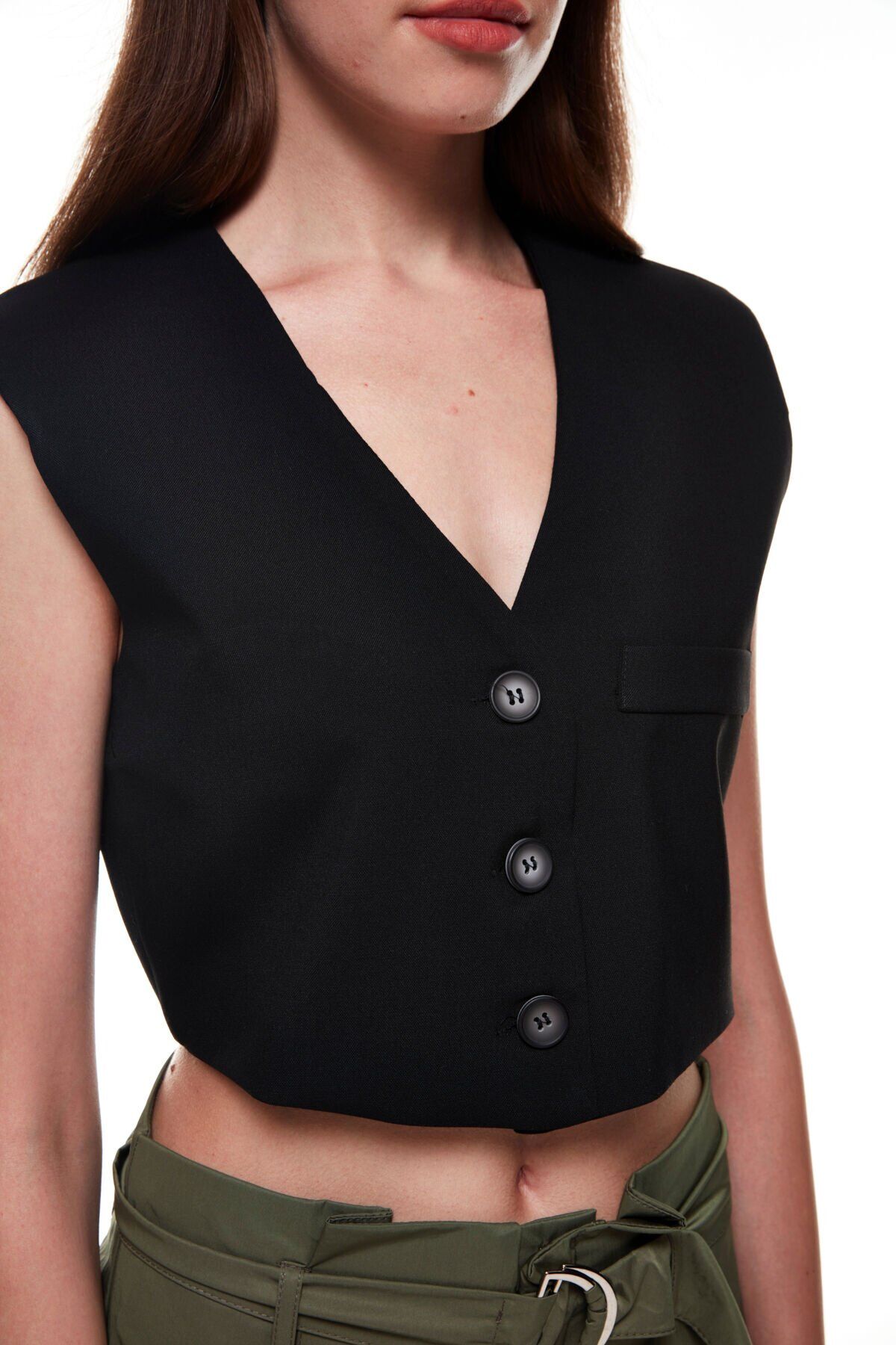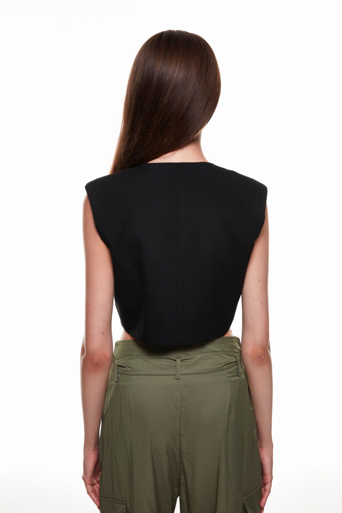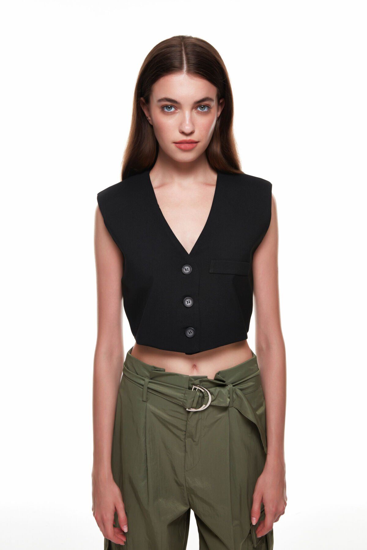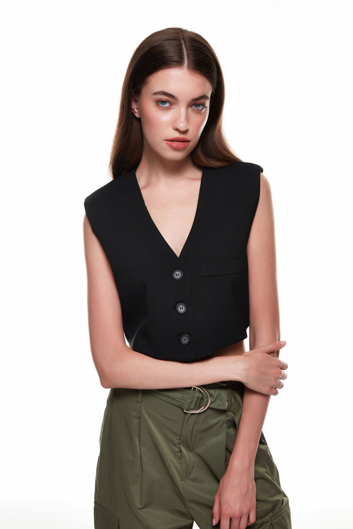Ürün Detayları: İçİ astarlı, kolsuz, mİnİ yalancı cep detaylı, düğmelİ kısa yelek ceket; Kumaş Bilgisi :Elastan %3, Polyester %64, Viskon %33 Ürün/Manken Ölçüleri : Boy :41 cm Göğüs : 45 cm Manken Ölçüleri : Boy:1; 76 Bel:60 Göğüs:82 Kalça:89 Beden:S Yıkama Talimatı: Makinede 30° Yıkayabilirsiniz Gerektiğinde Klorsuz Çamaşır Suyu Konabilir Kurutma Makinesinde , Normal, Düşük Isıda Düşük Isıda Ütüleyiniz Kuru Temizleme , Az Çözücü Kumaş Tipi:Dokuma Cinsiyet:Kadın / Kız Kalıp:Relaxed Yaş Grubu:Yetişkin;