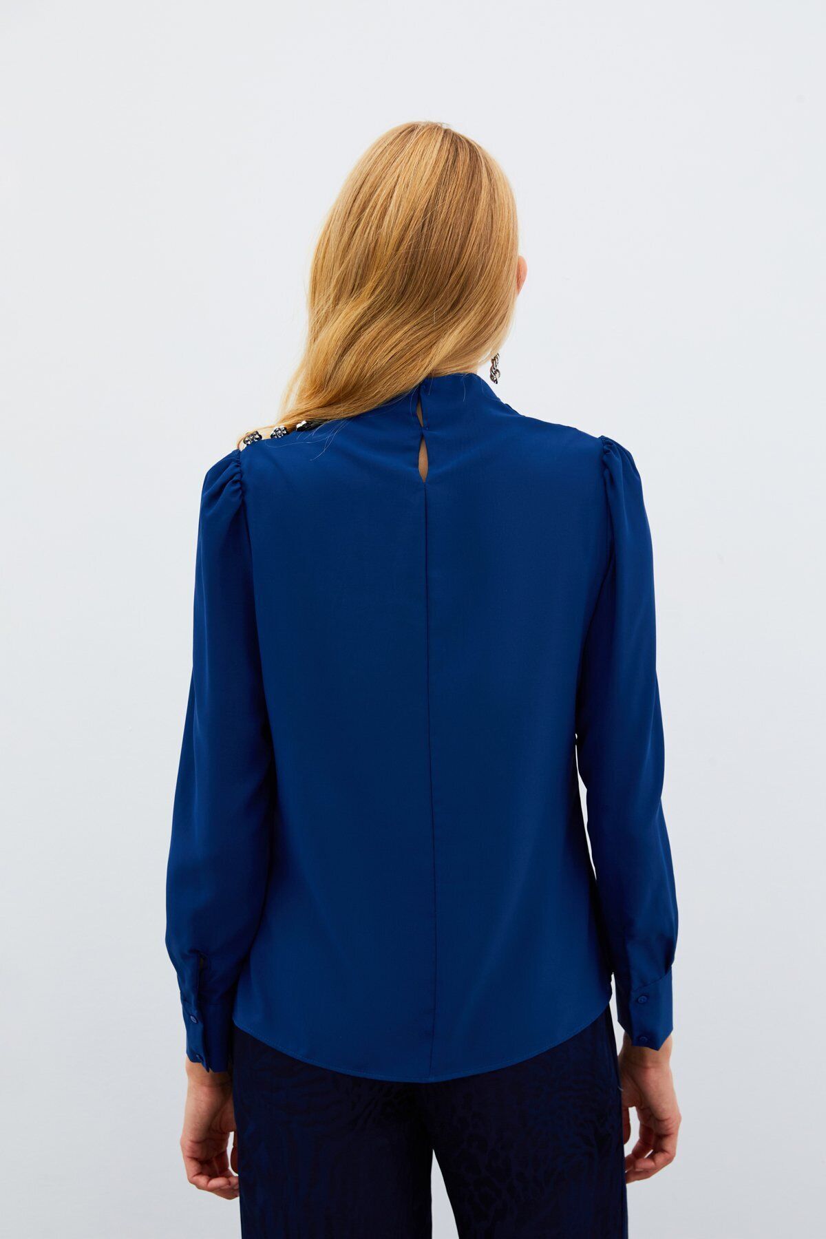 Düğmeleri Taş Detaylı Bluz
