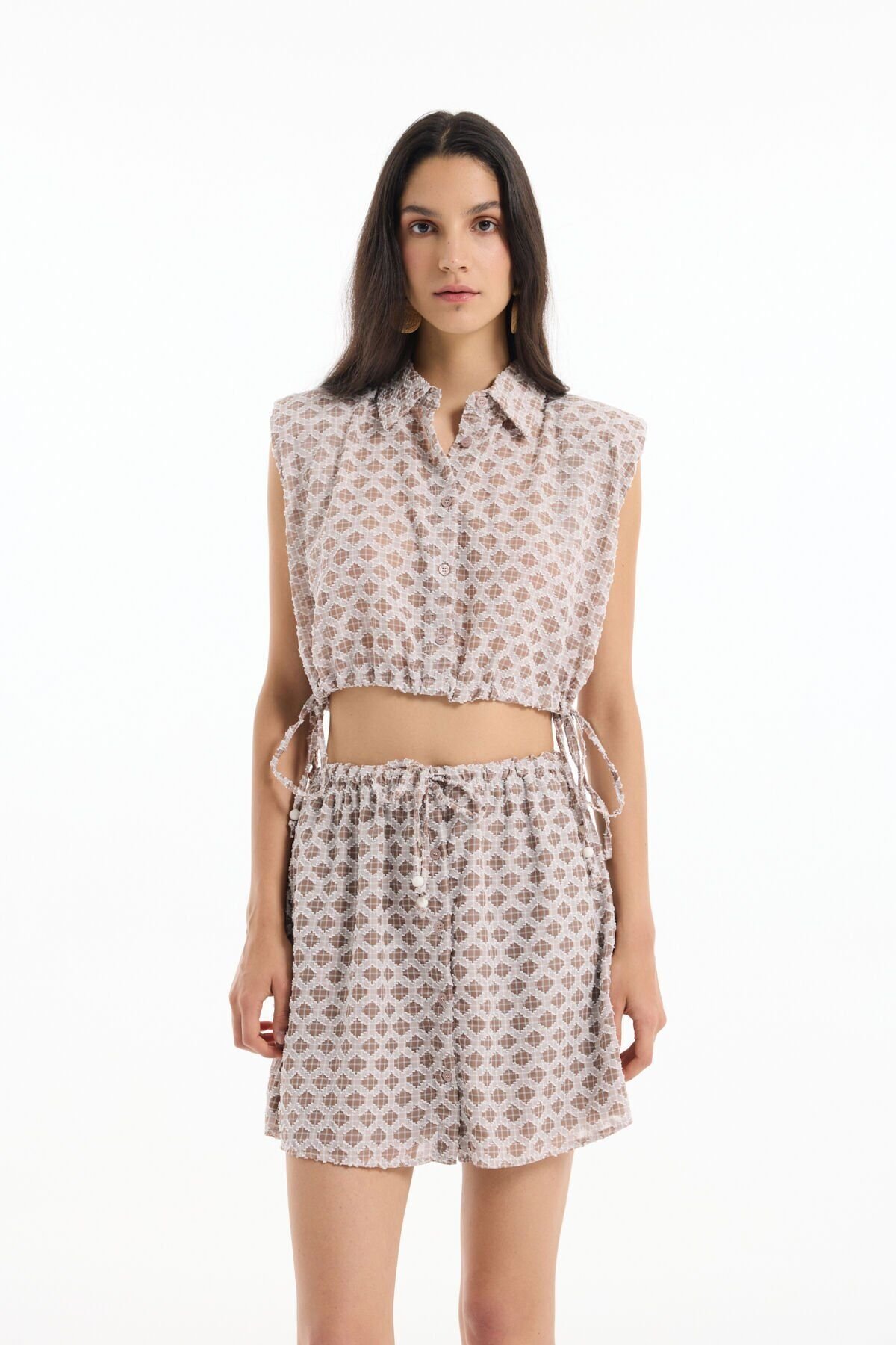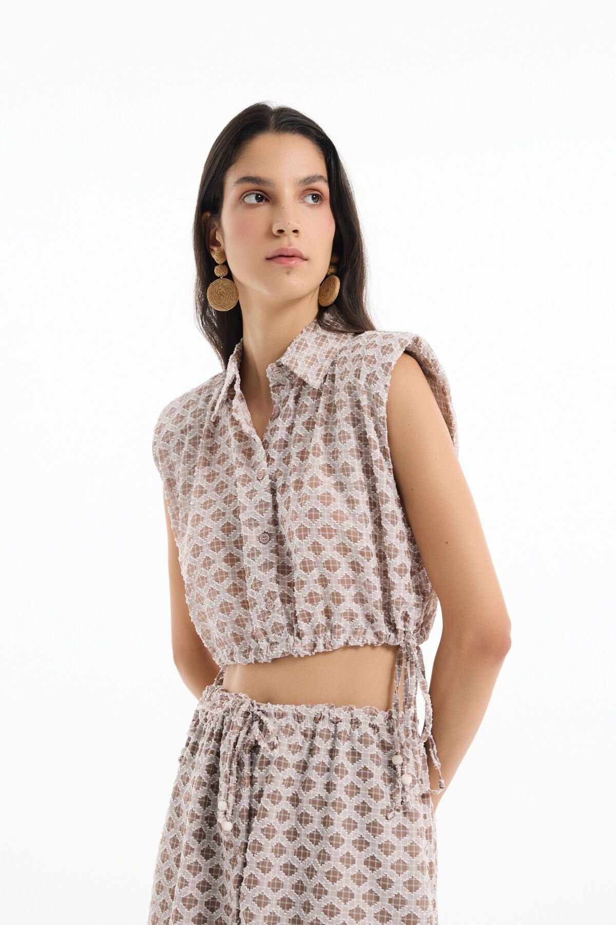 Düğmeli Dokulu Kolsuz Gömlek