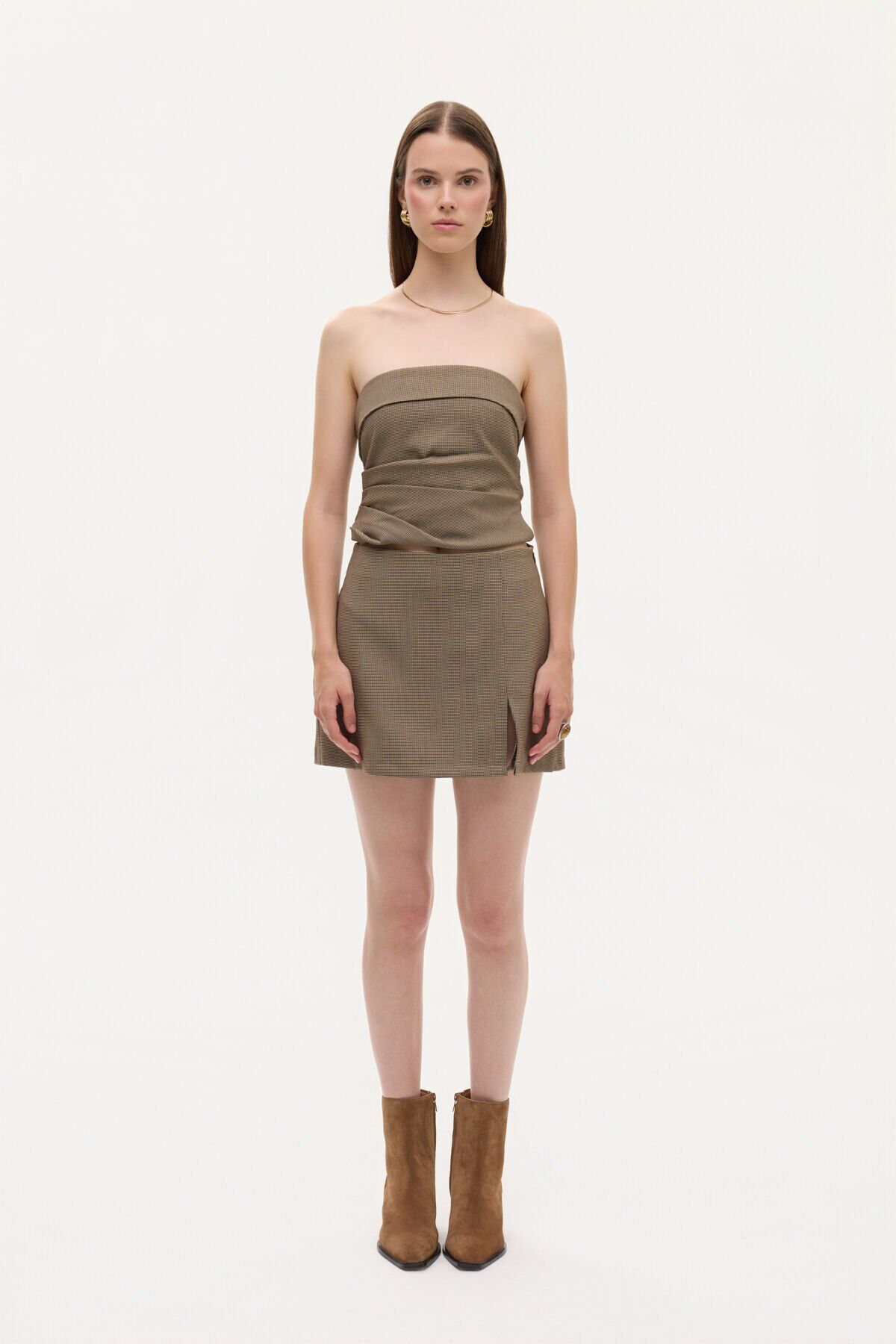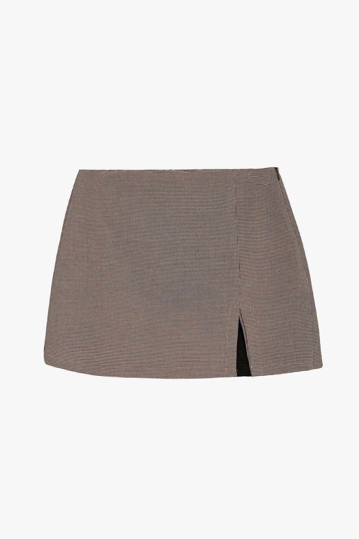 Ekose Yırtmaçlı Mini Şort Etek