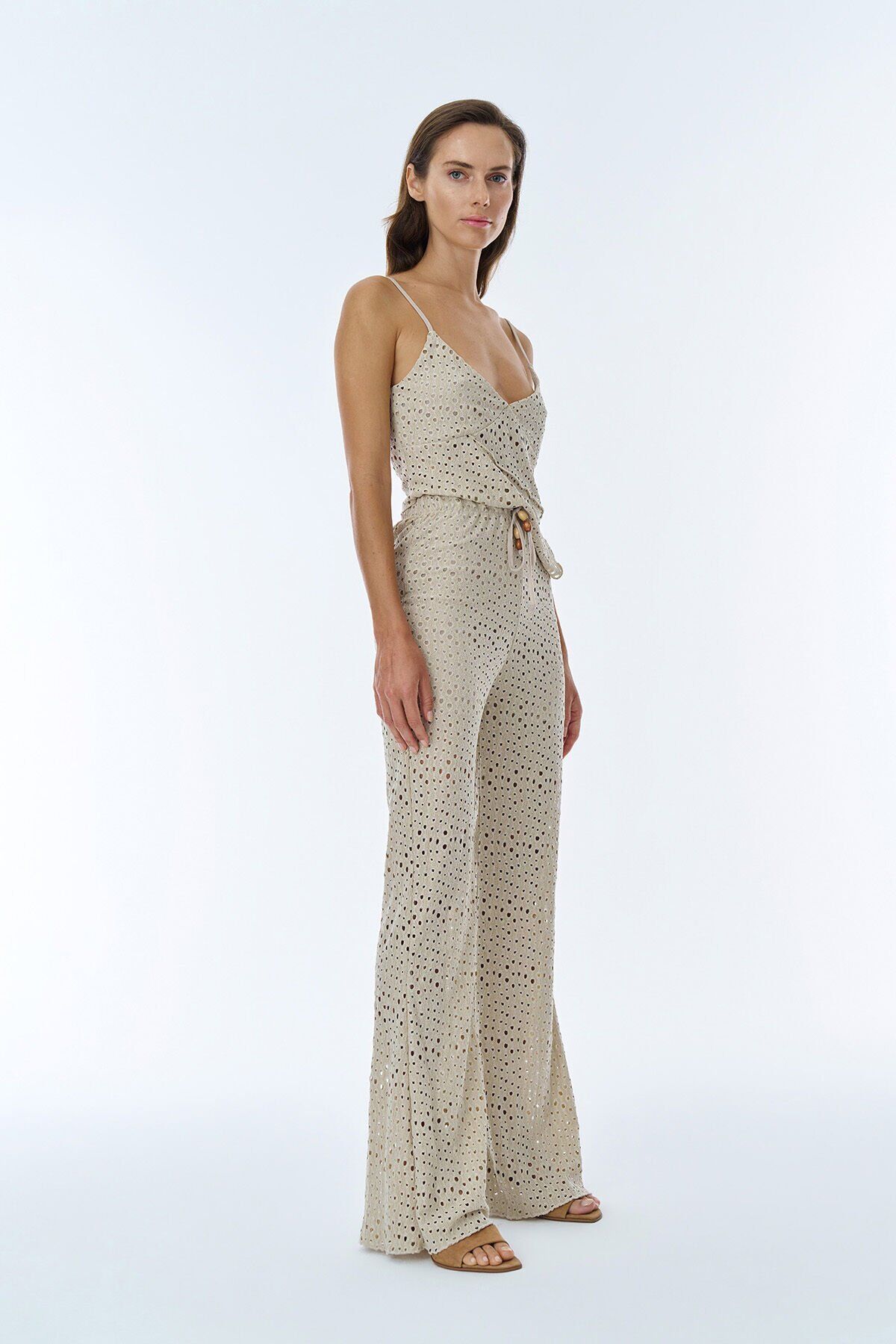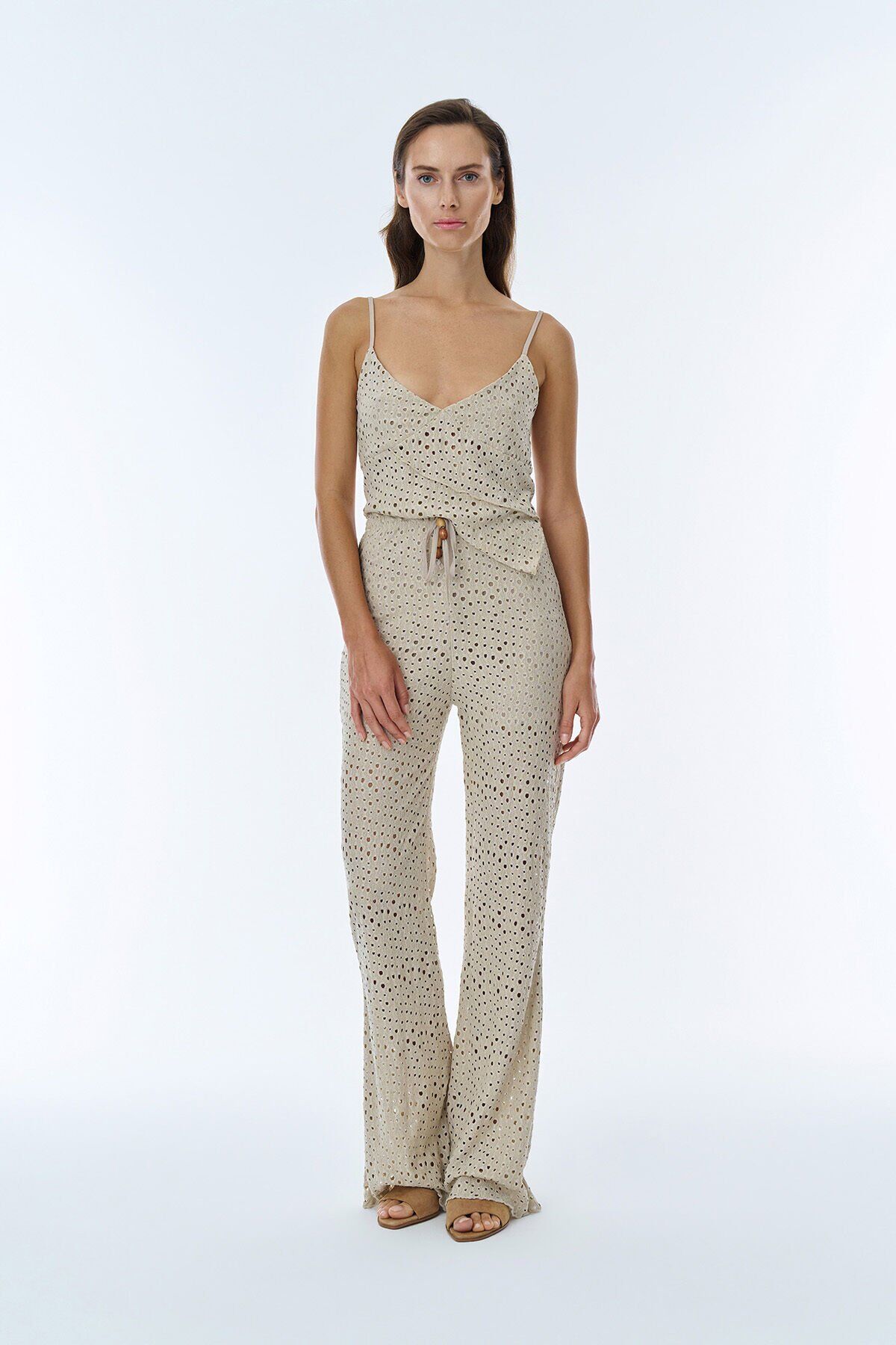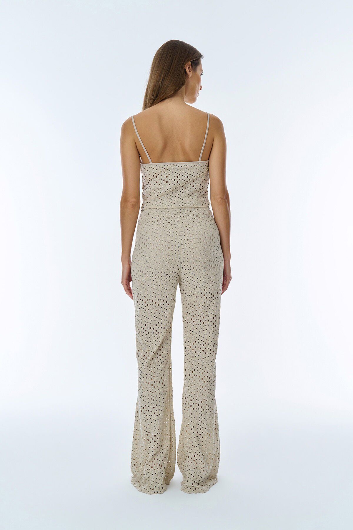 Yüksek bel tasarımı sayesinde konforlu bir kullanım sunar ve vücut hatlarını zarifçe sarar; Her yaş grubuna hitap eden kesimiyle geniş bir kullanıcı yelpazesine sahiptir; Dokuma kumaş yapısı, dayanıklılığı ve nefes alabilirliği ile öne çıkar; Uzun boyu, şık ve modern bir görünüm sağlar; Fisto detayları ile dikkat çekici bir stil oluştururken, bej rengi kolay kombin yapma imkanı sunar; Yıkama talimatlarına uygun şekilde bakım yapıldığında uzun ömürlü kullanım vaat eder;