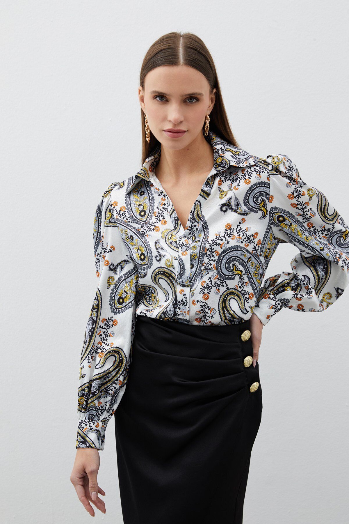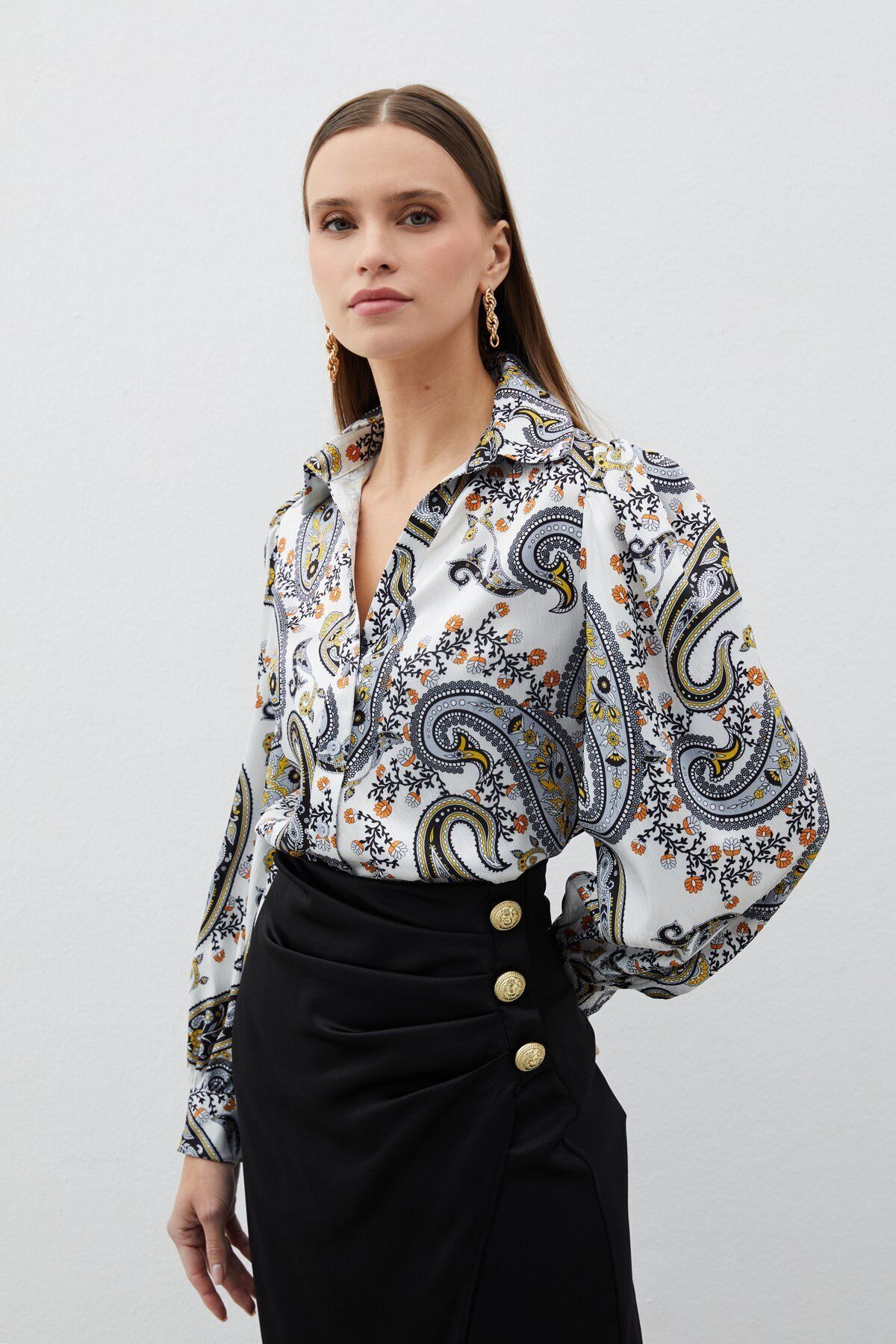 Kabarık Kol Desenli Gömlek