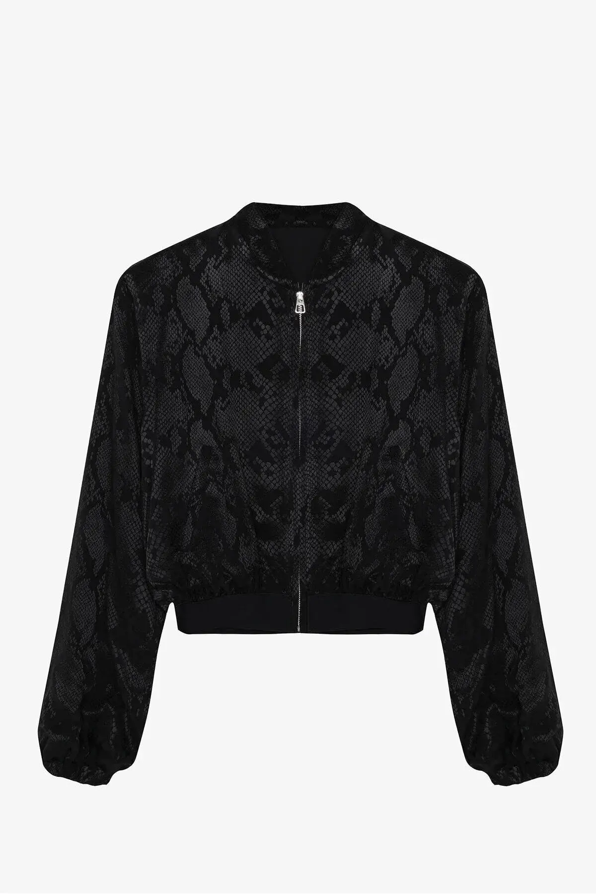 - Siyah lastik detaylı bomber ceket, şıklığı ve rahatlığı bir arada sunar.; - Orta kalınlıkta kumaş yapısıyla mevsim geçişlerinde ideal bir tercih olur.; - Viskon materyali sayesinde yumuşak dokusuyla gün boyu konfor sağlar.; - Fermuarlı kapama şekli ile kolay kullanım ve pratik bir giyim deneyimi sunar.; - Uzun kollu tasarımı ile mevsim koşullarına uyum sağlayarak sıcak tutar.; - Türkiye menşeli ürün, yerel üretim kalitesini ve dayanıklılığını garanti eder.; - Tüm sezonlar için uygun olan bu ceket, gardırobunuzda yılın her zamanında yerini alacak.