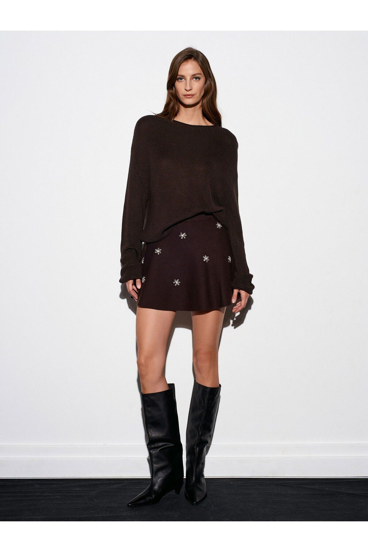 Ürün İçeriği : %50 Viskoz %50 Akrilik Mankenin Ölçüleri : Boy : 179 Göğüs : 81 Bel : 60 Kalça : 92 Numune Bedeni : 36/Standart Ürün Ölçüleri : Boy : 61 cm En : 60 cm Kol : 57 cm