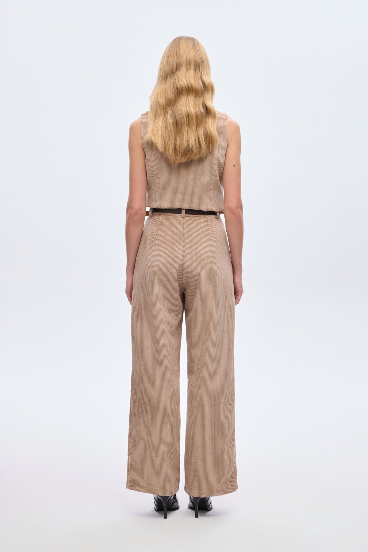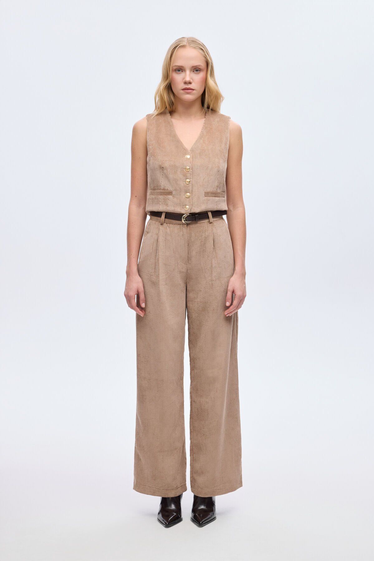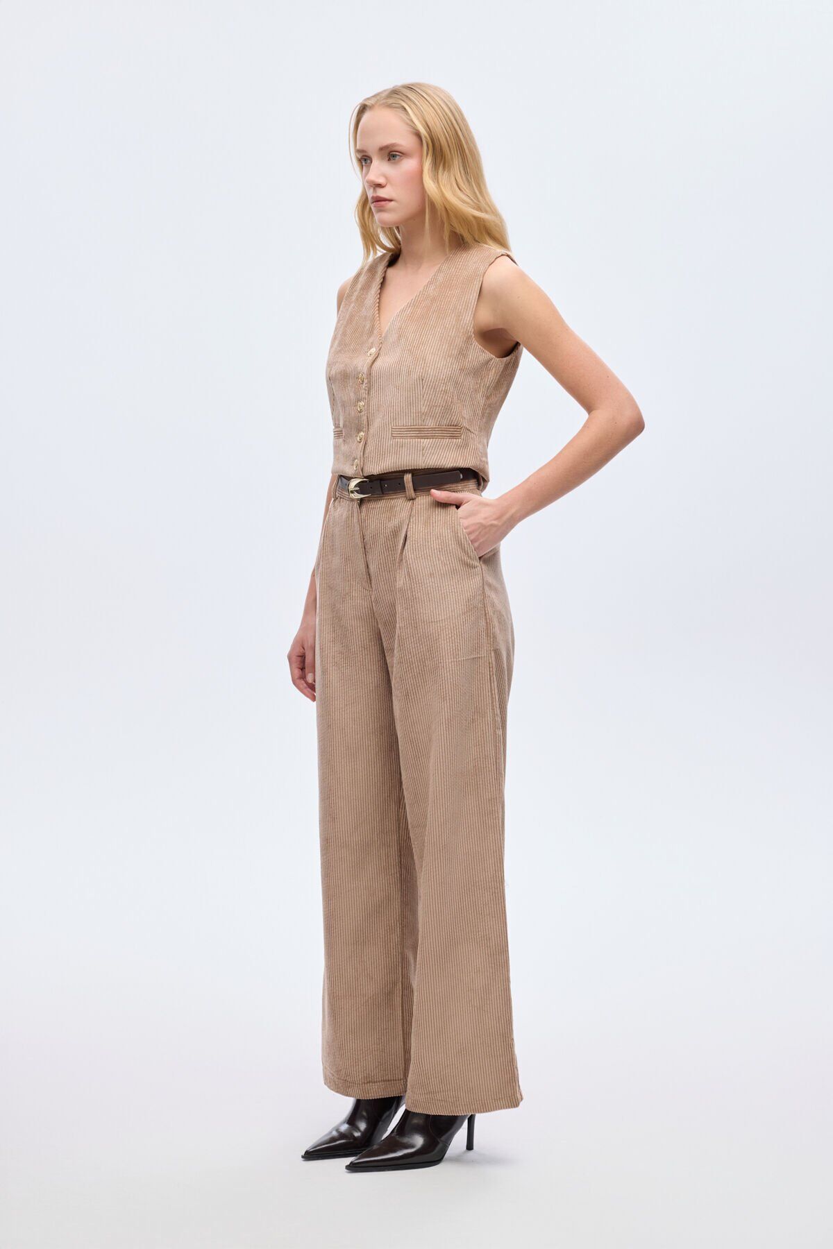 Kemerli Fitilli Kadife Bol Paça Pantolon