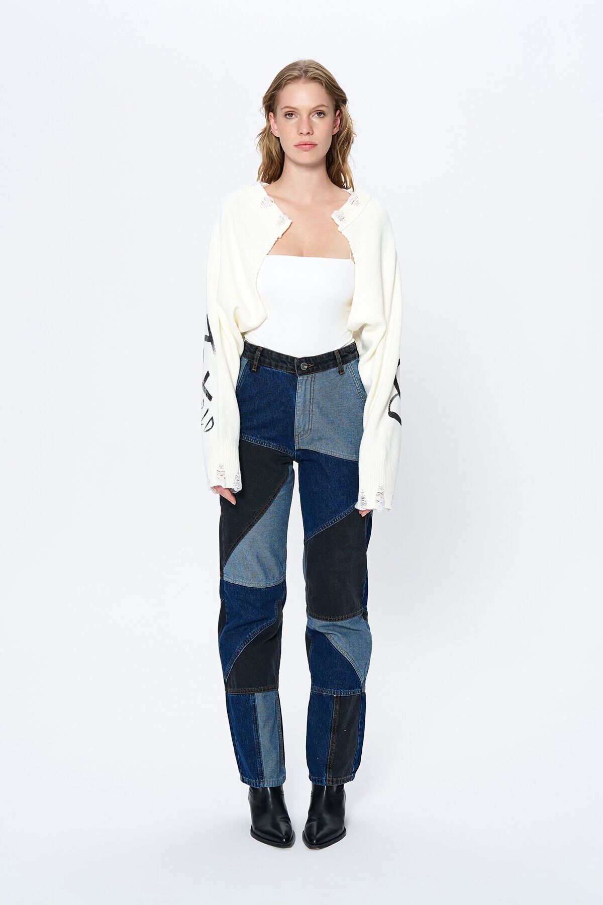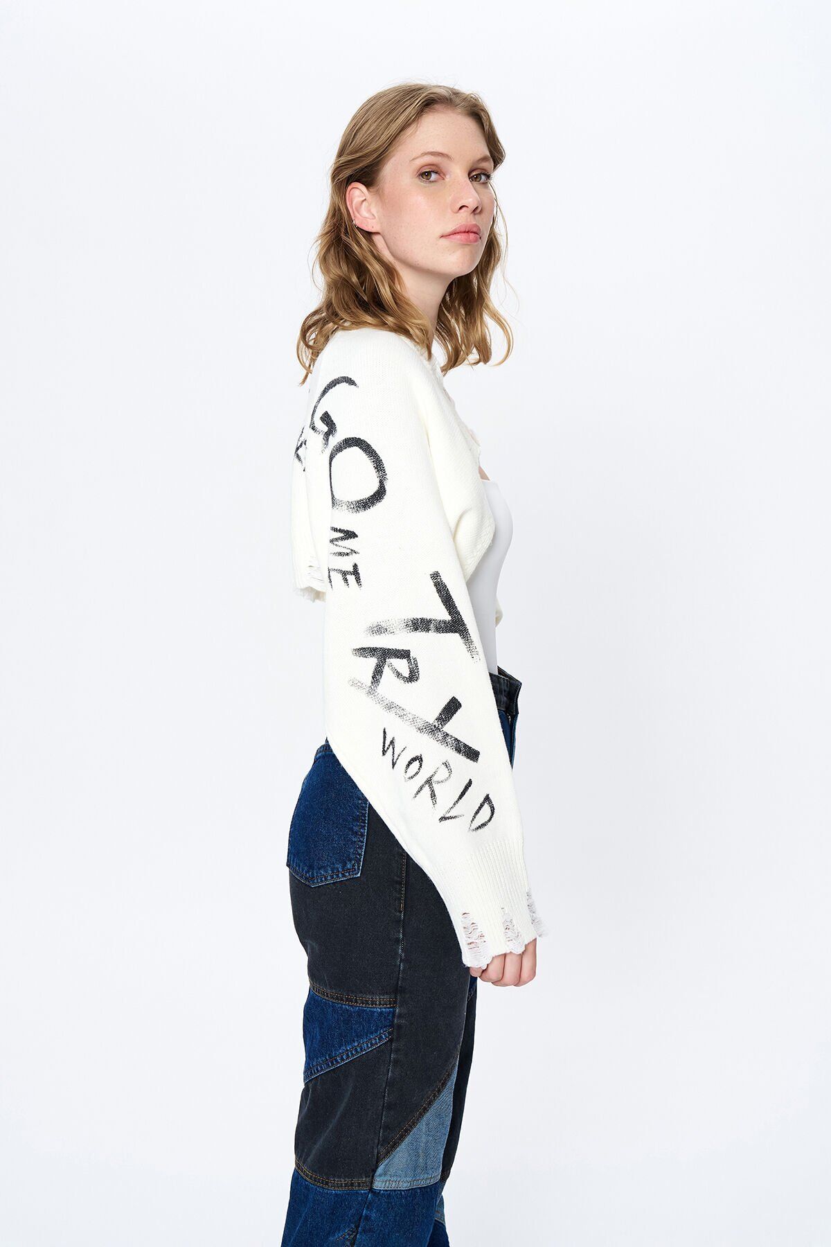 Modern ve şık tasarımıyla dikkat çeken kesik detaylı baskılı triko bolero, günlük kullanımda rahatlık ve stil sunar; Crop boy kesimi ile trend bir görünüm sağlar ve farklı kombinlerle kolayca uyum sağlar; Baskılı deseniyle göz alıcı bir detay ekleyerek, günlük giyimde bile şıklığı yakalamanızı sağlar; Regular kalıbı sayesinde vücut hatlarınıza uyum sağlayarak konforlu bir kullanım sunar; Triko kumaşı, yumuşak dokusuyla gün boyu rahat etmenizi sağlarken, dayanıklılığı ile uzun süreli kullanım vaat eder; Askılı kol boyu, yaz aylarında serinlik ve hareket özgürlüğü sunarak yaz gardırobunuzun vazgeçilmezi haline gelir;