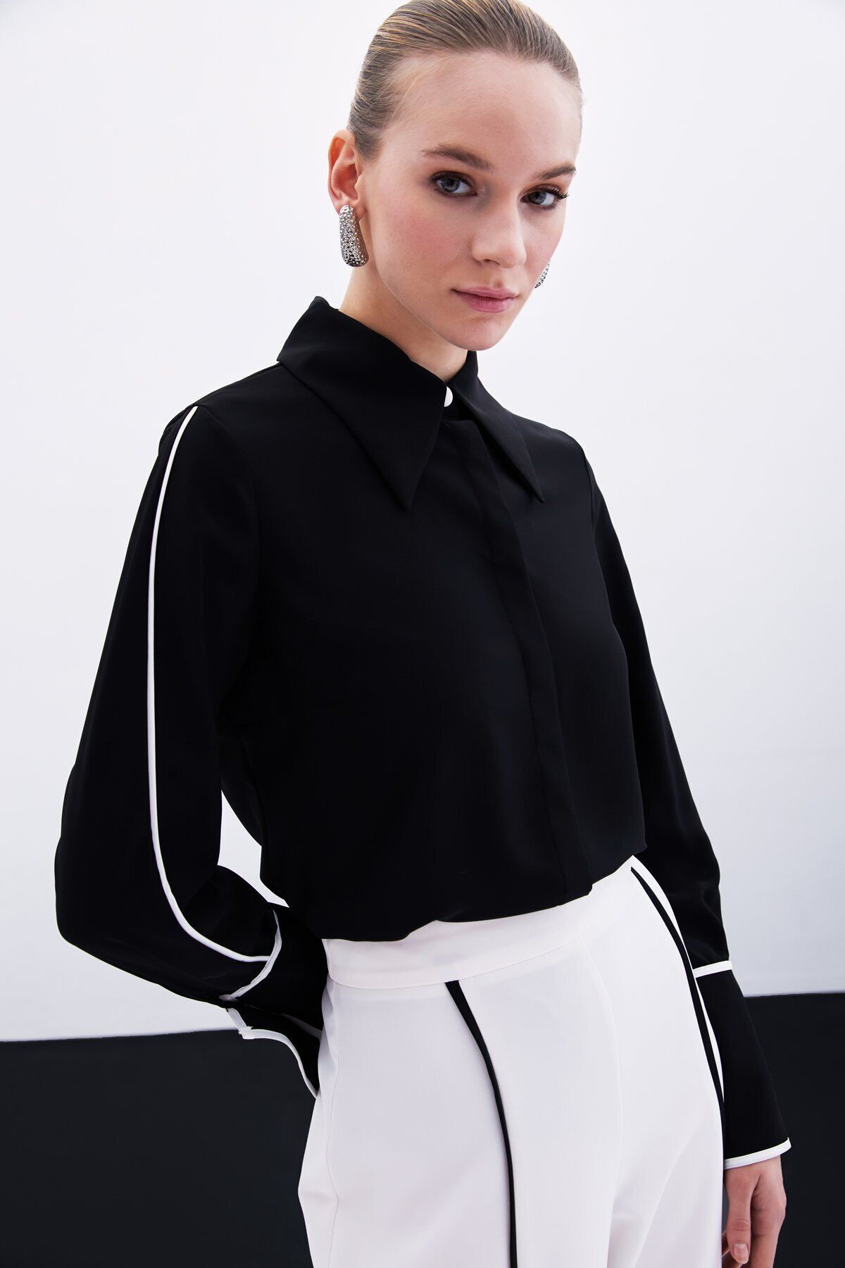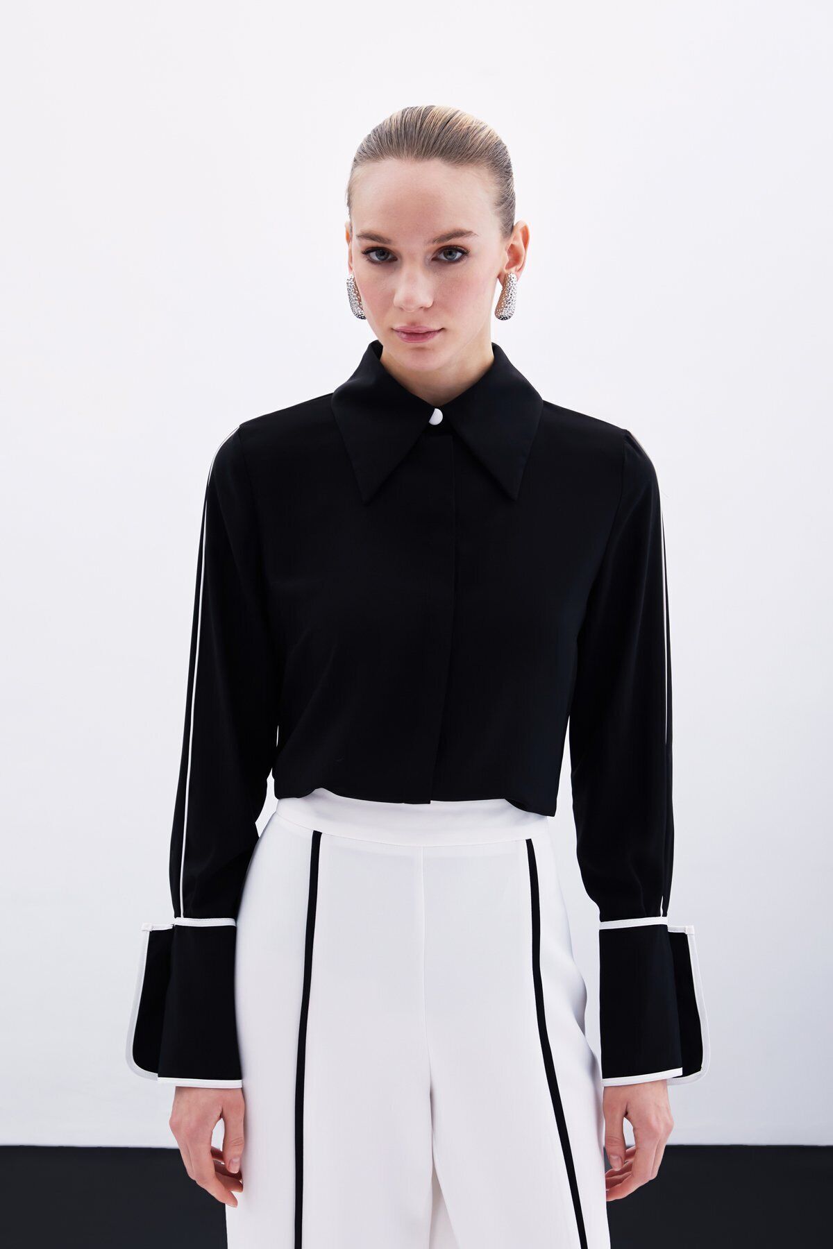Klasik Manşetli Kontrast Gömlek