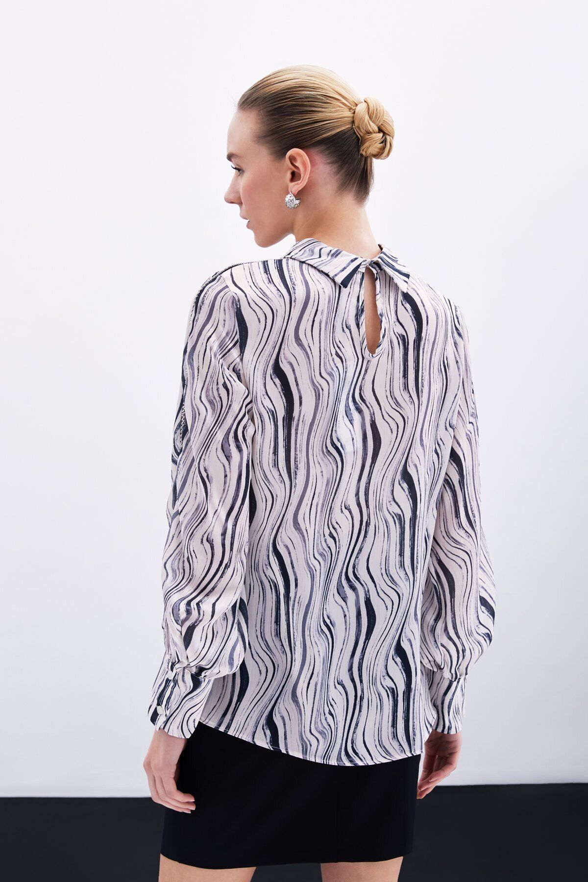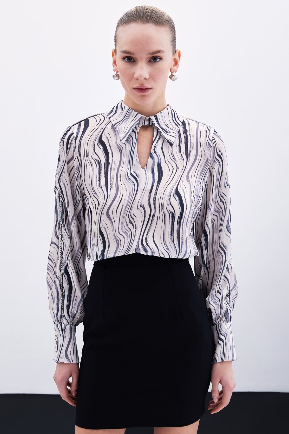 Kol Aksesuarlı Desenli Bluz - Siyah
