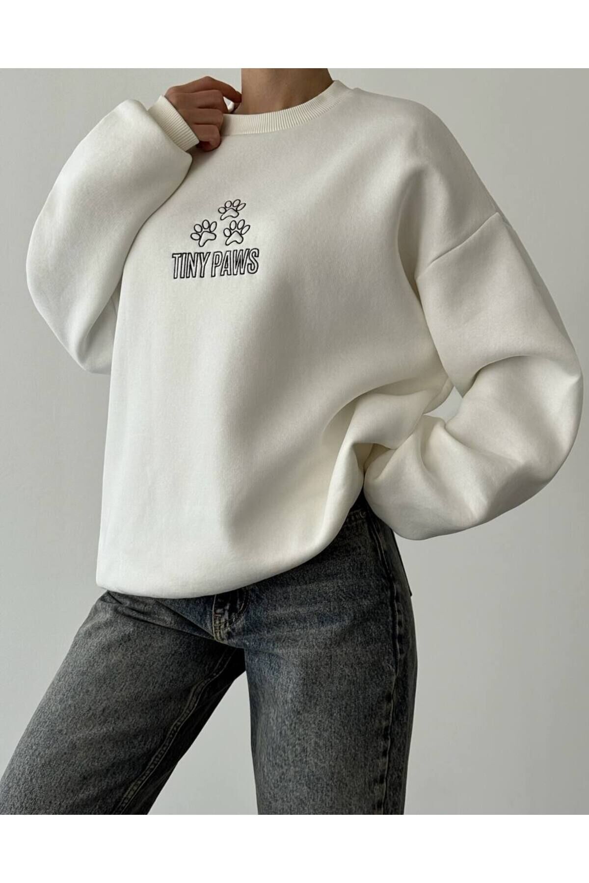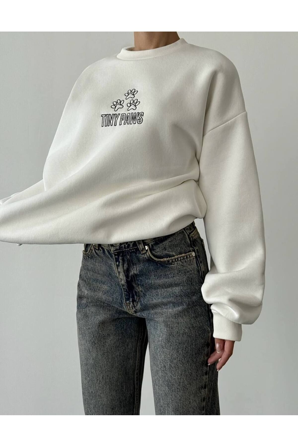 - Ekru rengi ile şıklığı ve rahatlığı bir arada sunan oversize sweatshirt, günlük kullanım için idealdir.; - Kapamasız yapısı sayesinde pratik kullanım imkanı sunar; kolayca giyilip çıkarılabilir.; - Bisiklet yakası ile modern ve spor bir tarza sahip olan bu sweatshirt, casual ortamlarda rahatlıkla tercih edilebilir.; - Uzun kollu tasarım soğuk havalarda ekstra koruma sağlarken, regular silueti vücut hatlarını nazikçe sarar.; - Basic koleksiyonun parçası olarak her gardıropta temel parça haline gelir; farklı aksesuarlarla kombinlenebilir.; - Pamuk polyester karışımı materyali sayesinde dayanıklılık ve yumuşaklık bir arada sunulurken, oversize kalıp geniş kesimiyle hareket özgürlüğü tanır.; - Normal boy uzunluğu ile farklı vücut tiplerine uyum sağlayarak herkes tarafından rahatlıkla kullanılabilir.; - Kadın / kız kullanıcılar için tasarlanmış olup, yetişkin yaş grubuna hitap eder.; - Dokuma kumaş tipi kaliteli hissiyat vererek uzun süreli kullanım vaat eder.;