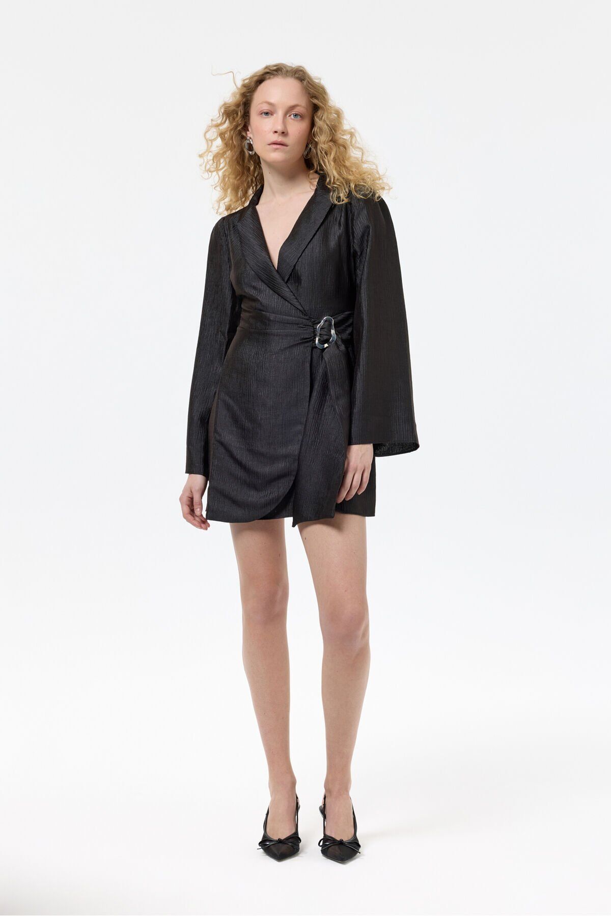 Kruvaze Bağlamalı Dokulu Mini Elbise