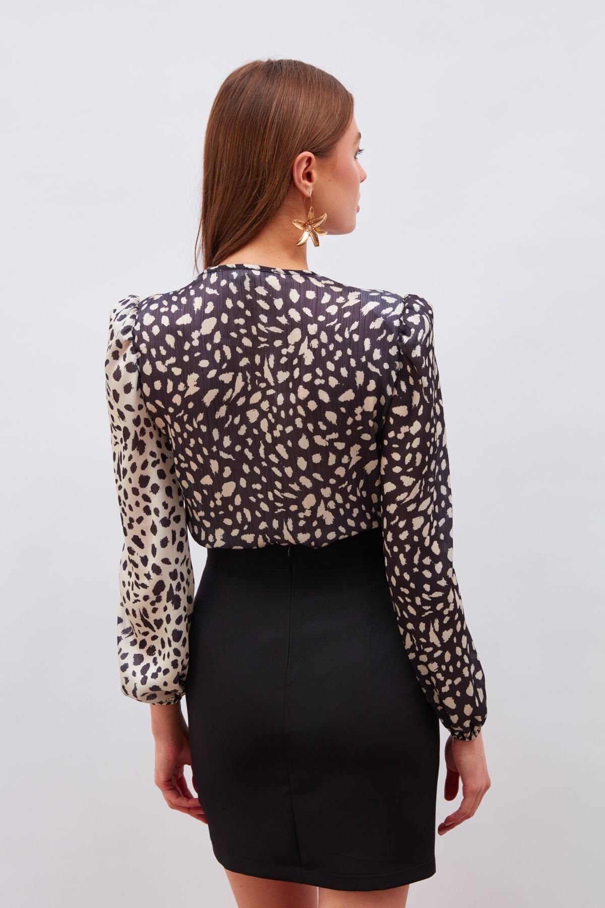 Kruvaze Desenli Bodysuit stn139kbl947bej-siyah