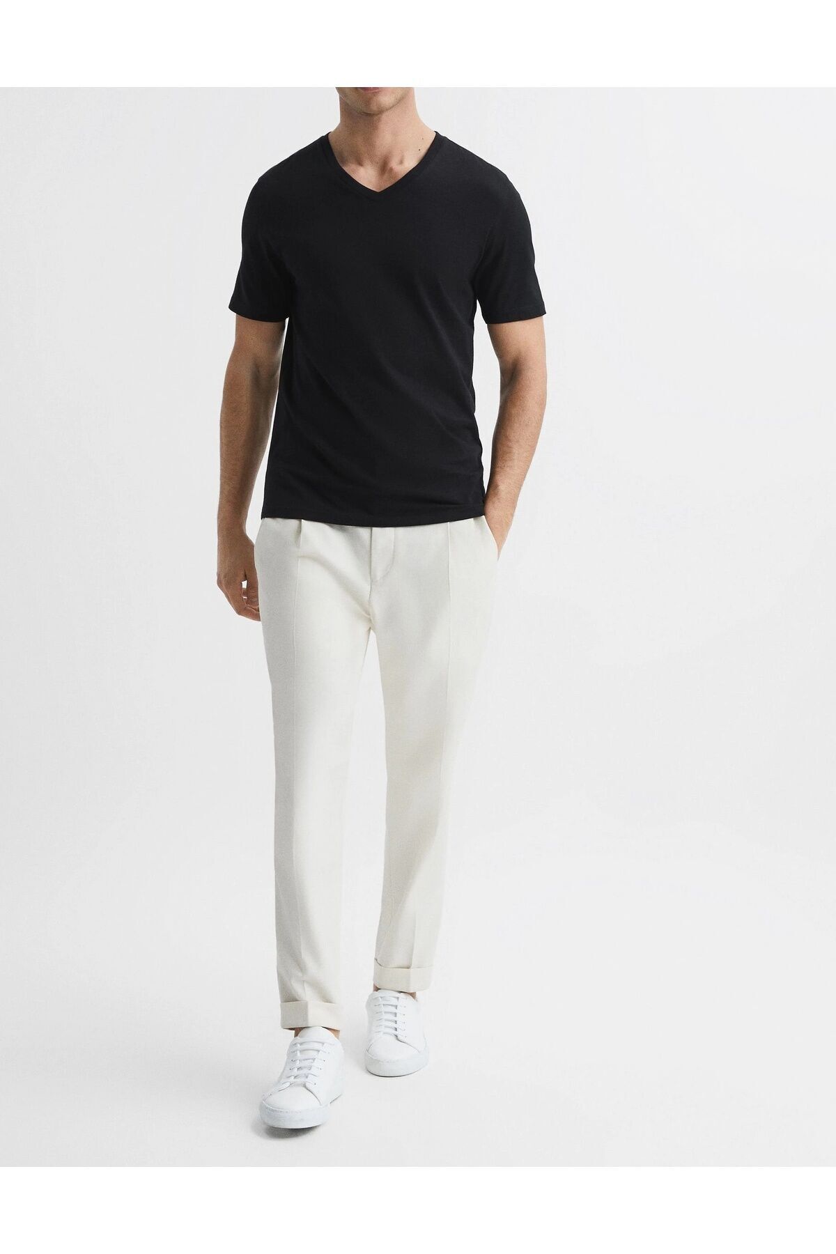 V yaka tasarımı ile modern ve şık bir görünüm sunar; Regular boy kesimi sayesinde rahat bir kullanım sağlar; Dokuma kumaş yapısı, dayanıklılığı ve konforu bir arada sunar; %95 pamuk ve %5 elastan karışımı materyal, esneklik ve nefes alabilirlik özellikleriyle öne çıkar; Kısa kollu tasarımı ile yaz aylarında serinlik ve rahatlık sağlar; Düz deseniyle sade ve zamansız bir stil oluşturur; Basic silueti, her türlü kombinle uyum sağlayarak günlük kullanım için idealdir; Tüm yaş gruplarına hitap eden geniş kullanıcı yelpazesi sunar; Günlük stilinizi tamamlayacak casual tasarımıyla dikkat çeker; Basic koleksiyonun parçası olarak, gardırobunuzdaki temel parçalardan biri haline gelir; Standart kol tipi ile klasik ve rahat bir kullanım sunar; Regular kalıp, vücut hatlarını saran ancak sıkmayan ideal oturuşu garanti eder; Casual ortamlarda rahatlıkla tercih edebileceğiniz günlük kullanım için;