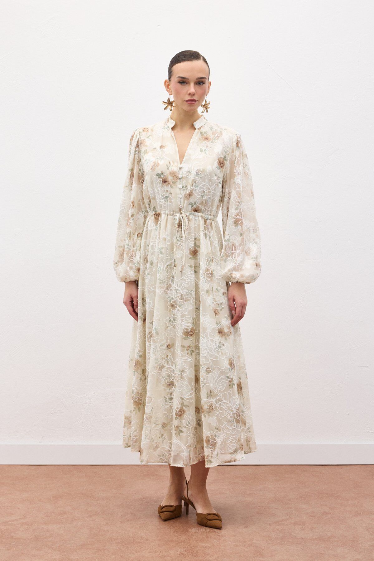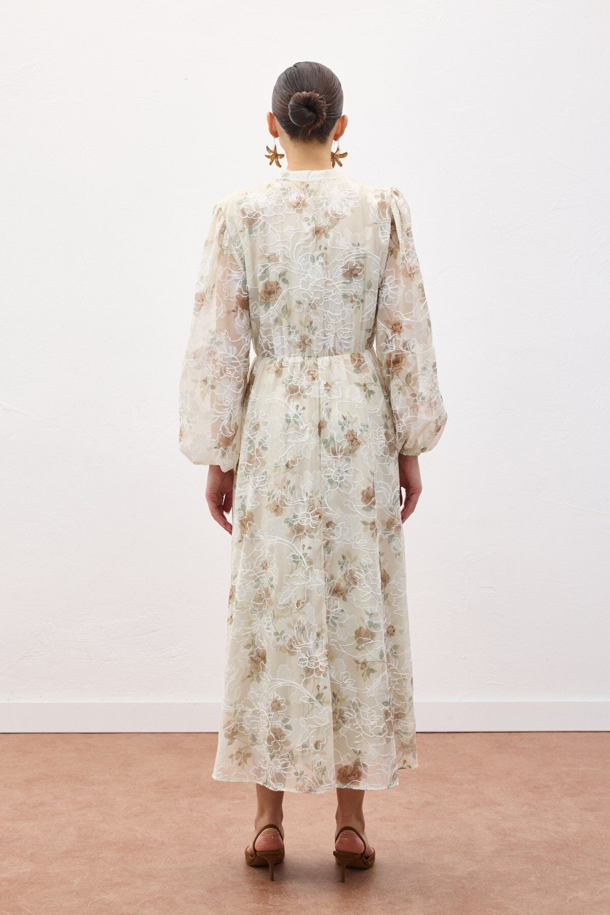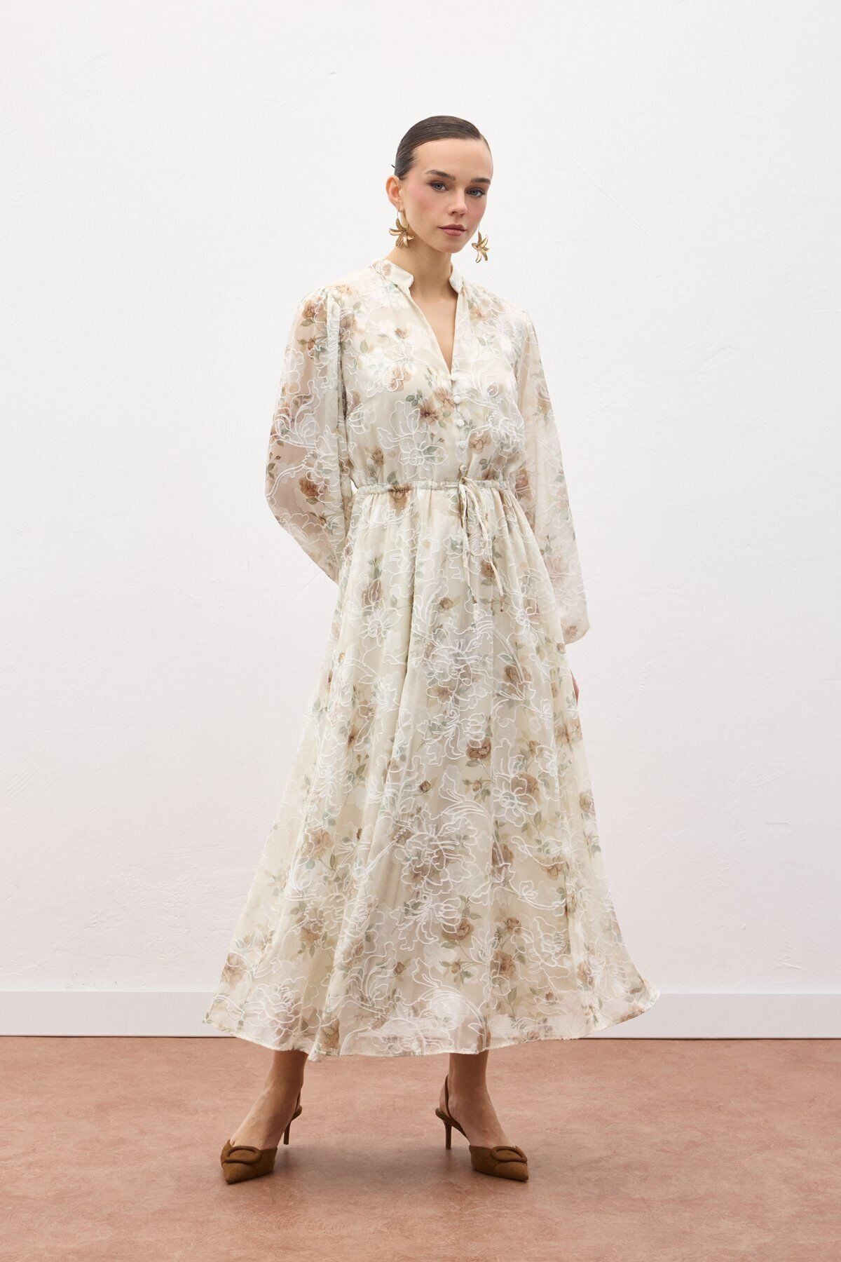 Nakışlı Desenli Uzun Elbise