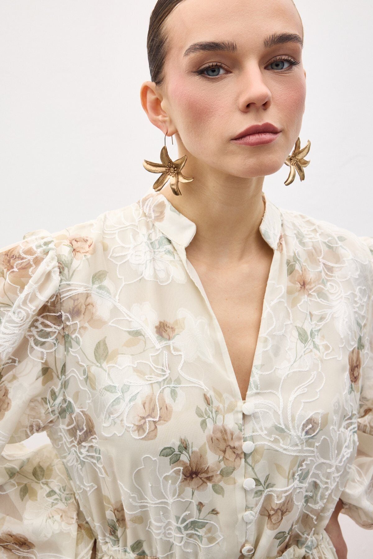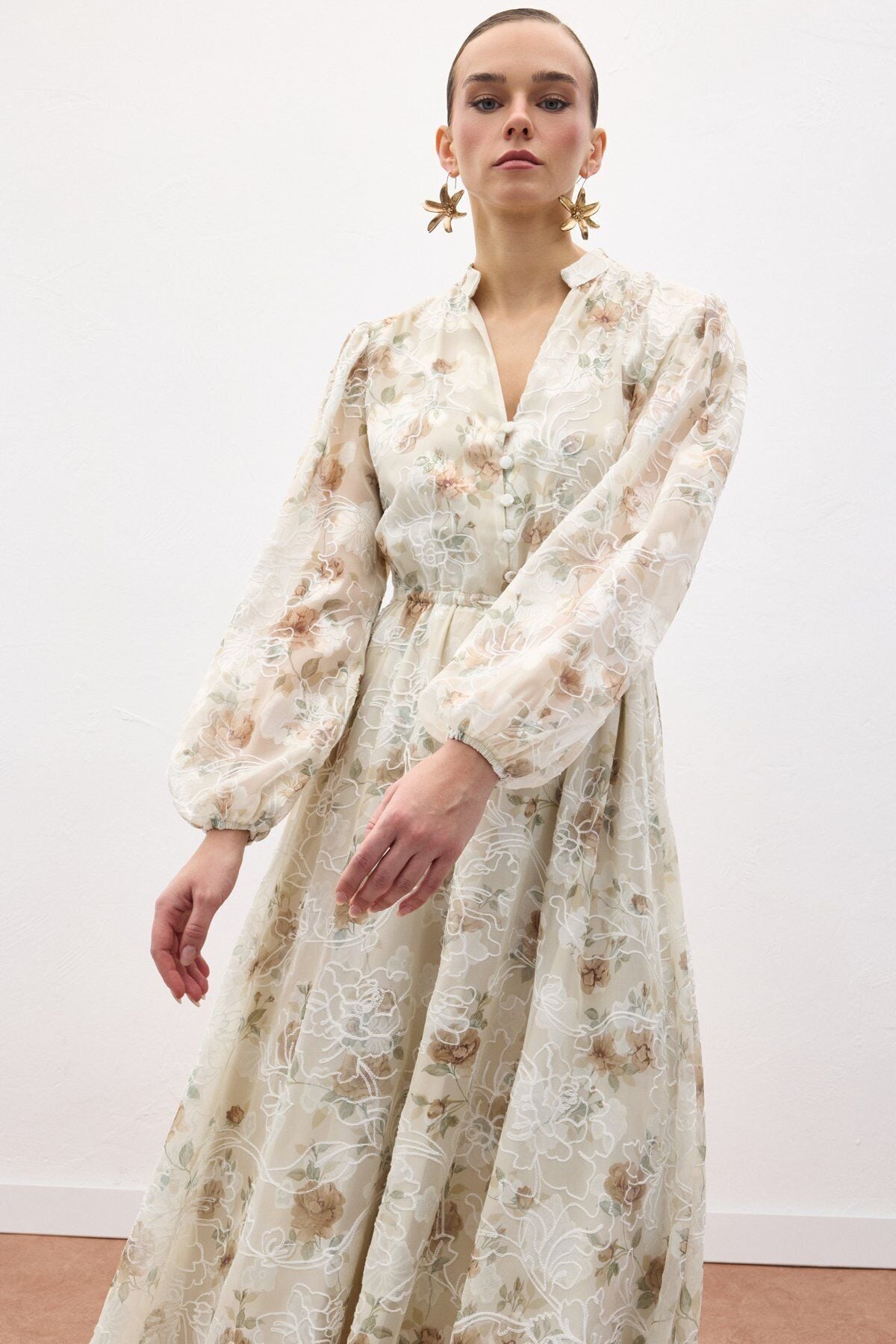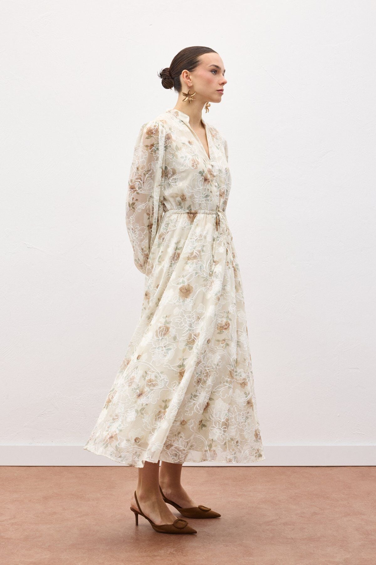 Nakışlı Desenli Uzun Elbise