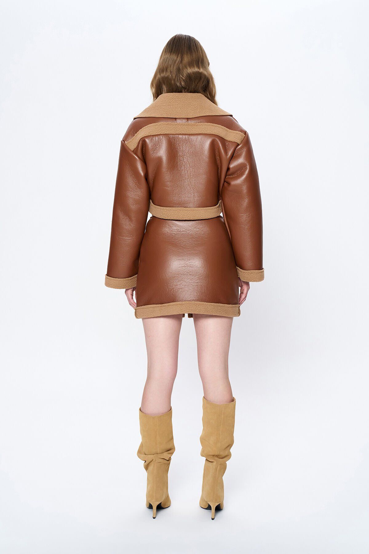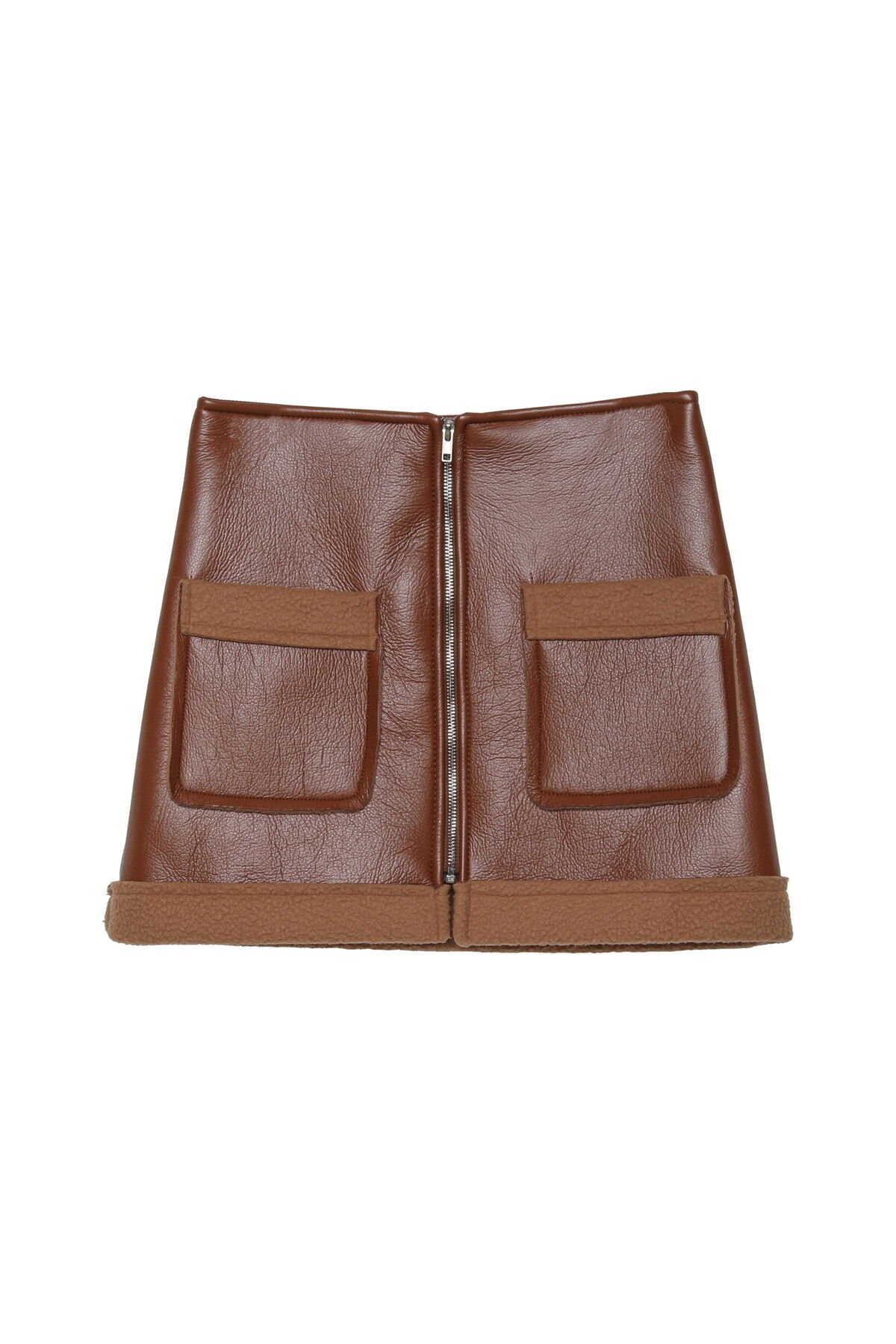 Önden Fermuarlı Cep Detaylı Mini Deri Etek