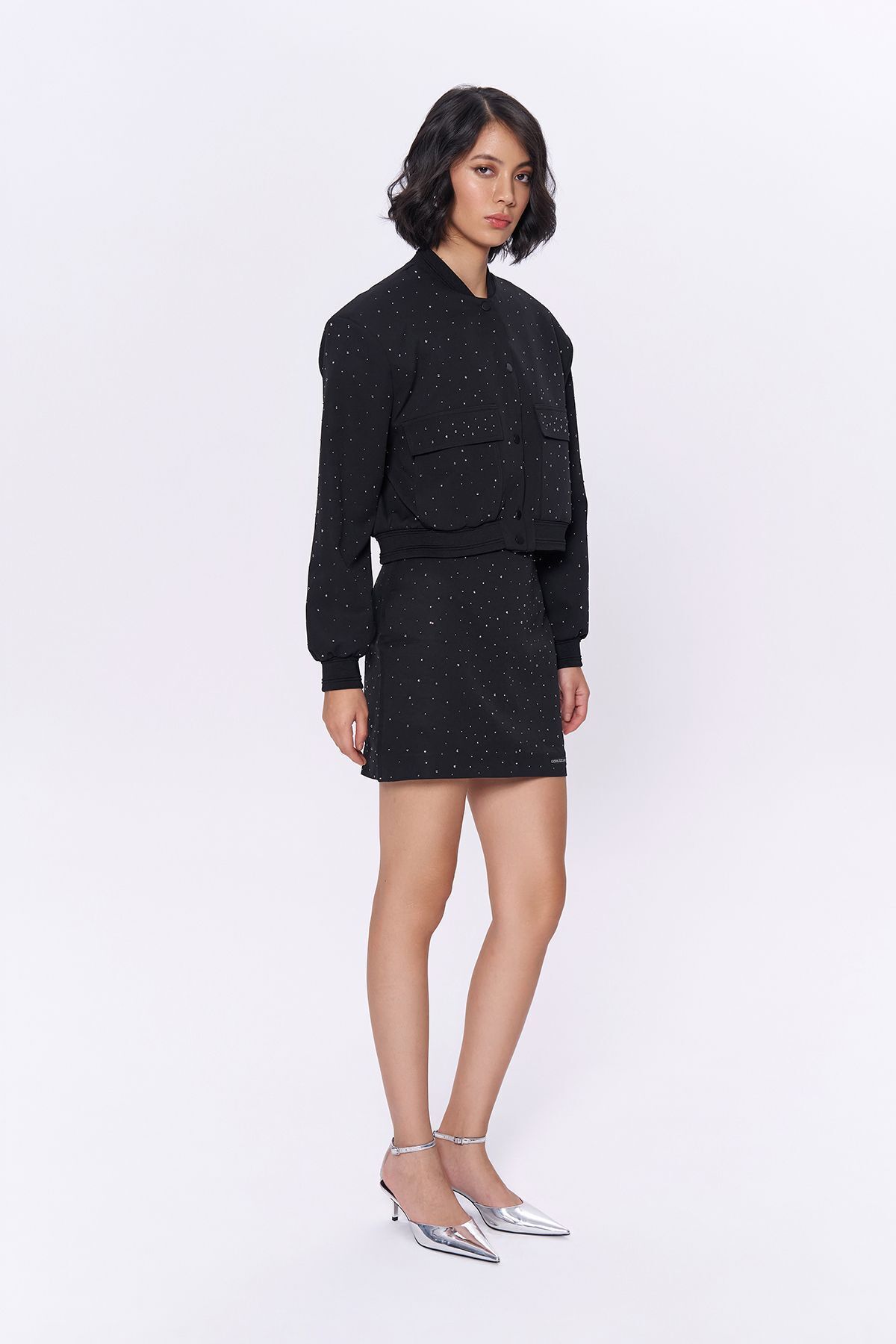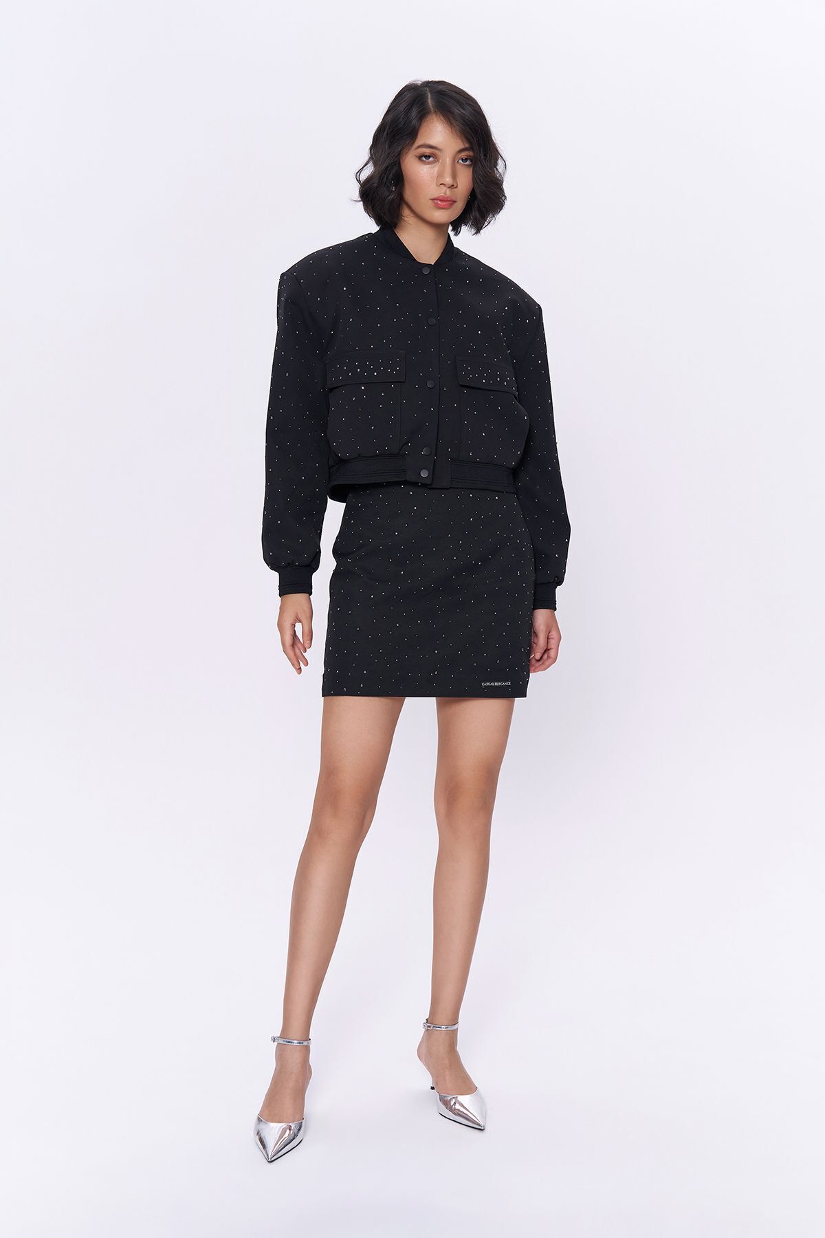 Dokuma kumaş yapısı sayesinde dayanıklılığı ve konforu bir arada sunar; Mini boy kesimi ile modern ve şık bir görünüm sağlar, hareket özgürlüğü tanır; Parlak taş detayları ile göz alıcı bir parlaklık ve zarif bir ışıltı katar;