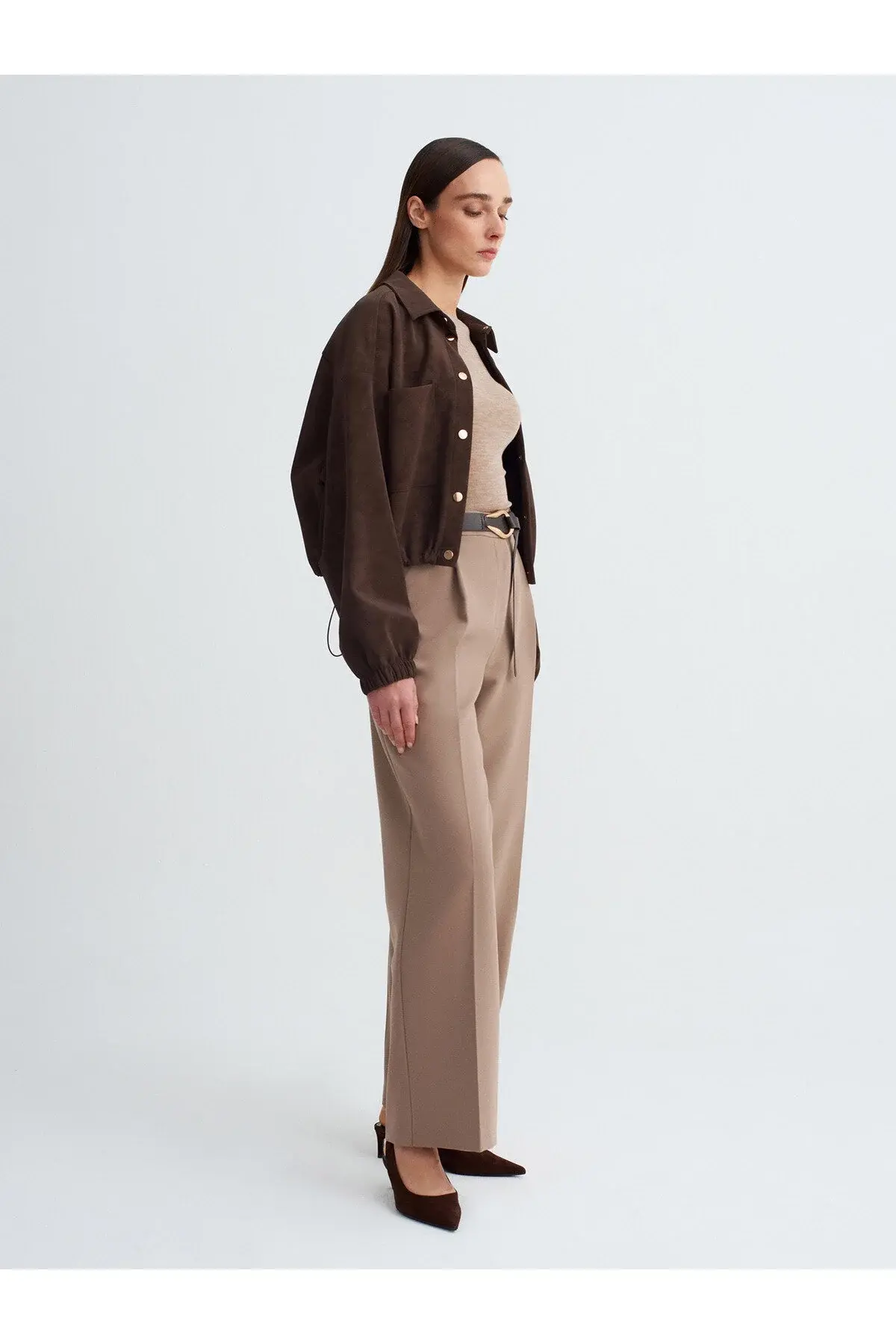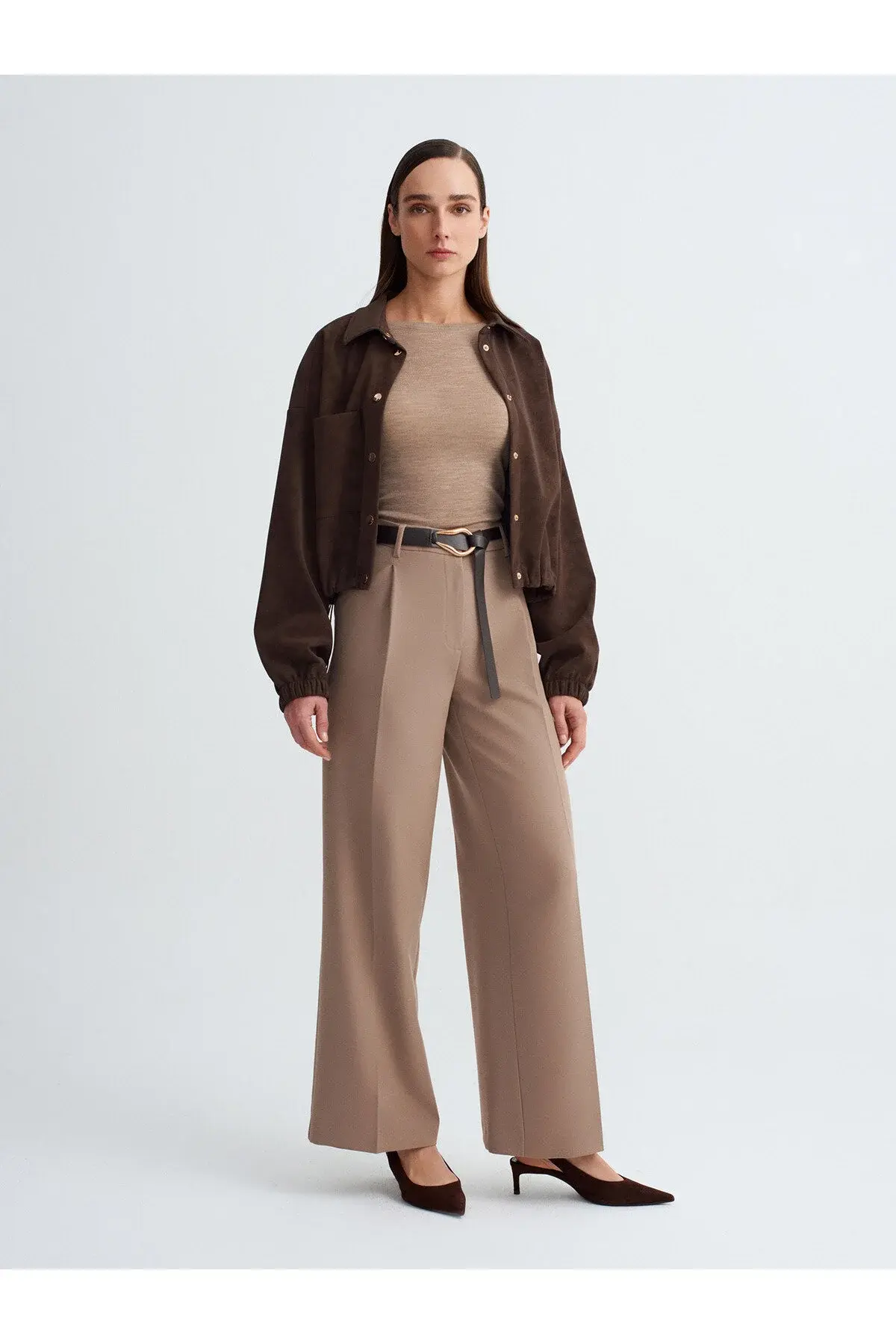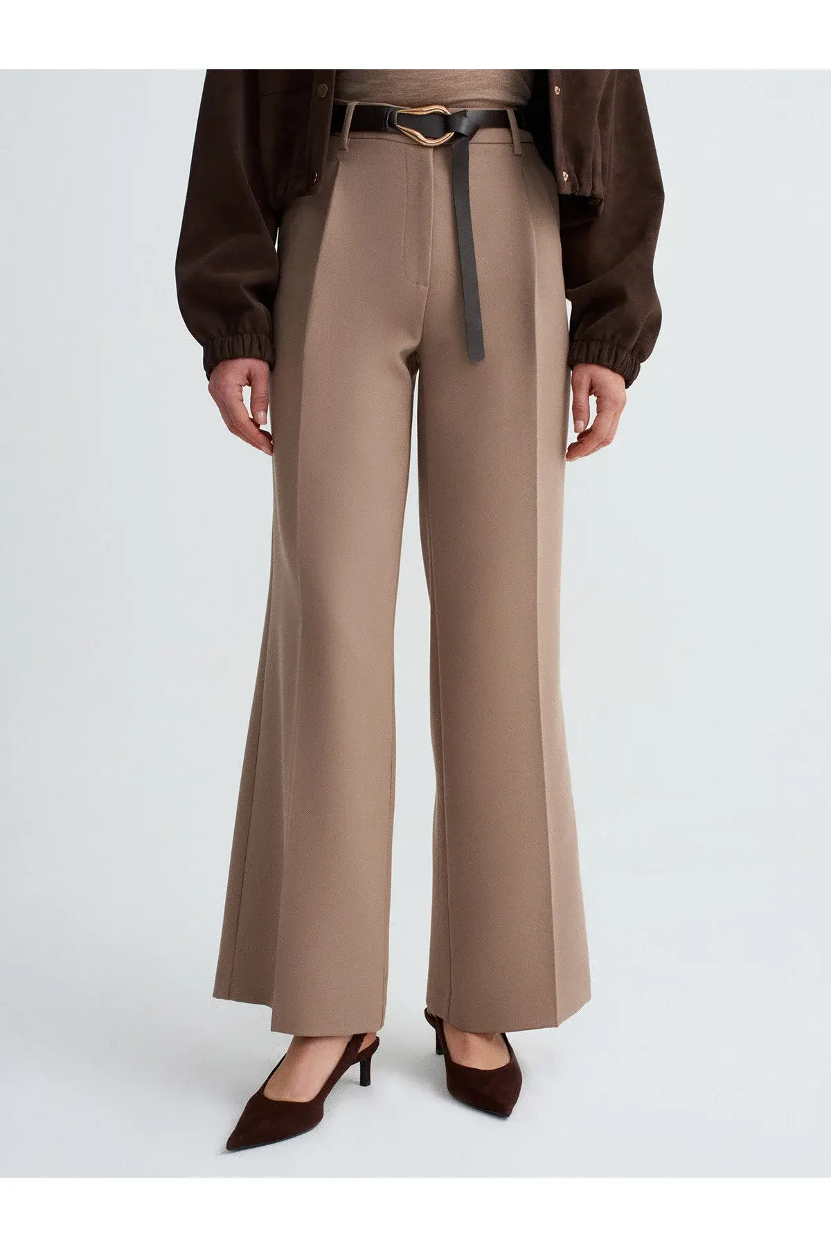 Ürün İçeriği : %70 Polyester %23 Viskoz %7 Elastan Mankenin Ölçüleri : Boy : 176 Göğüs : 80 Bel : 59 Kalça : 88 Numune Bedeni : 36/Standart Ürün Ölçüleri : Boy : 105 cm İç Bacak : 77 cm Bel : 35 cm Ürün Bakım ve Kullanım Bilgileri Satın aldığınız her bir ürününün formunu ve canlılığını uzun süre koruması için lütfen aşağıdaki genel bakım yönergelerini dikkate alın: Yıkama: Ürünün renk kalitesini korumak ve olası renk transferini önlemek amacıyla yıkama işlemlerini daima benzer renk tonlarına sahip diğer giysilerle birlikte gerçekleştiriniz.; Sıkma: Özellikle narin ve hassas kumaşlardan üretilmiş ürünlerimizin dokusunun bozulmaması için çamaşır makinenizde yüksek devirli veya yoğun sıkma programlarından kesinlikle kaçının.; Ütüleme: Kumaşın parlama yapmasını veya yapısının zarar görmesini engellemek için ütüleme işlemini düşük ısıda yapmaya özen gösterin.; Mümkünse yoğun buhar kullanmayınız ve ürünü tersten ütüleyiniz.; Bu basit bakım adımlarına uyarak ürünlerinizi uzun yıllar boyunca keyifle kullanabilirsiniz.; En kesin ve doğru bakım talimatları için daima ürününüzün iç etiketindeki sembolleri kontrol ediniz.