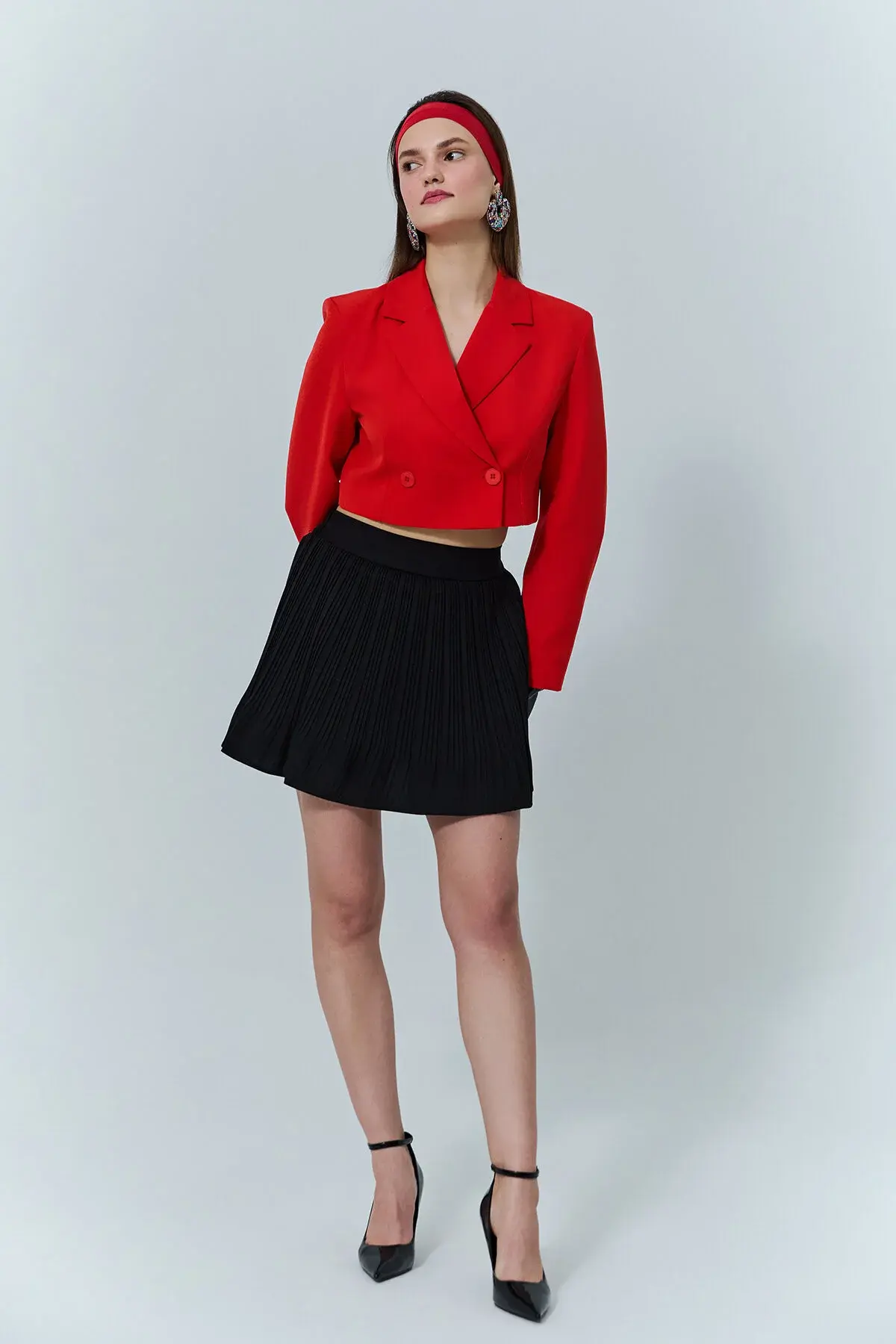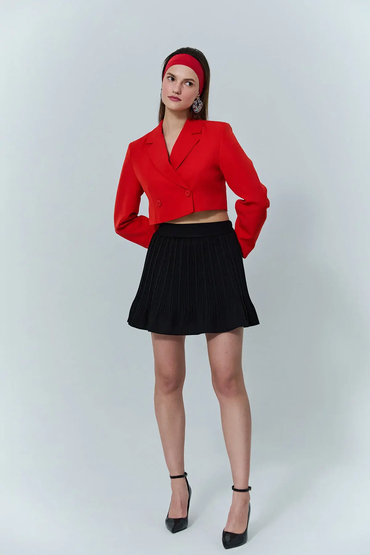 Pileli mini şort etek. Sırt bel kısmı lastikli, içi astarlı şort.