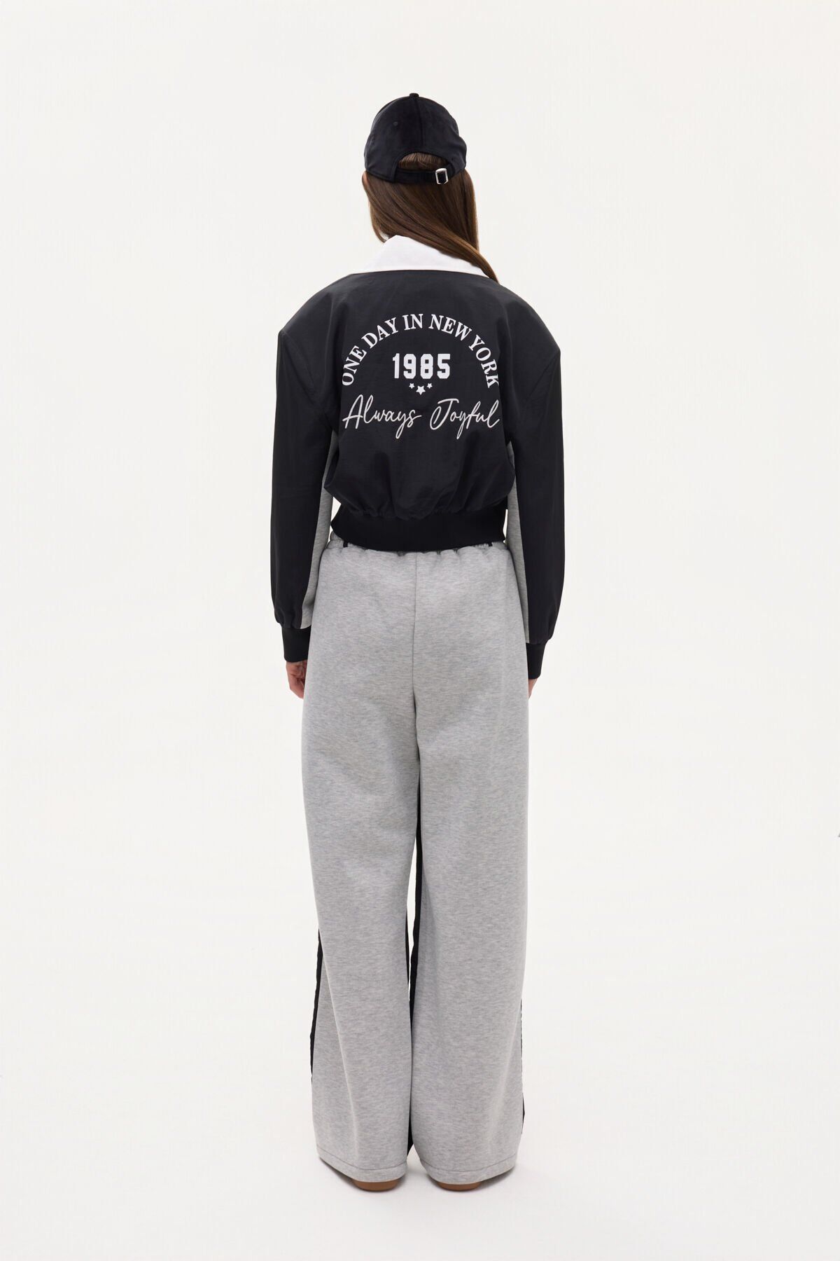 Renk Bloklu Sırtı Yazı Baskılı Bomber Ceket