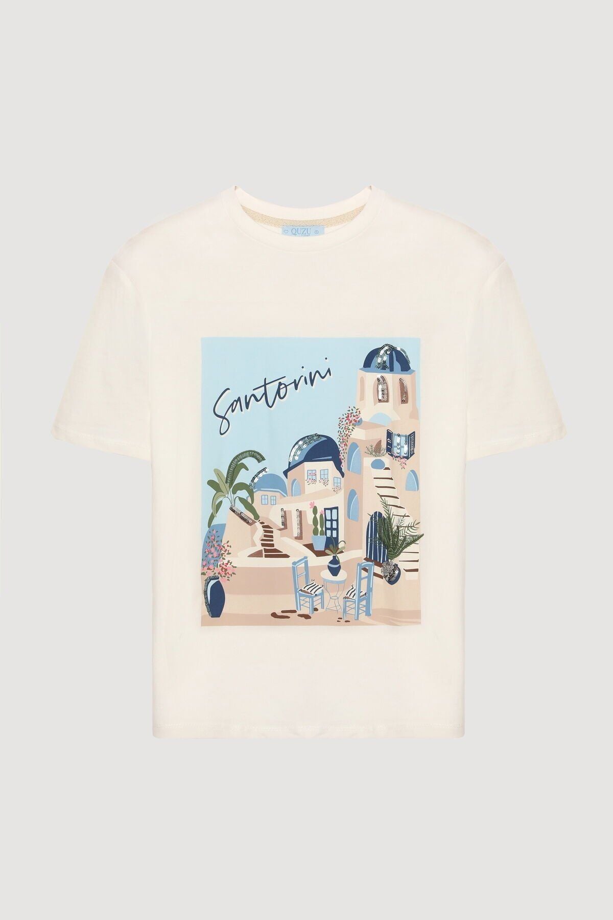Santorini Baskılı Kısa Kol Tişört