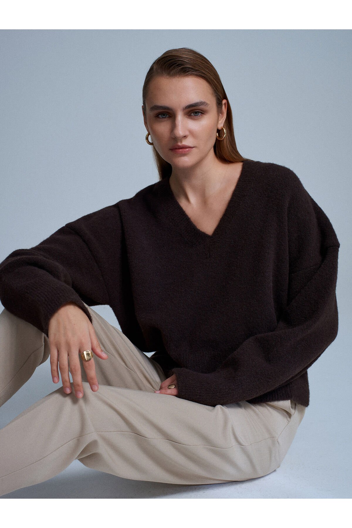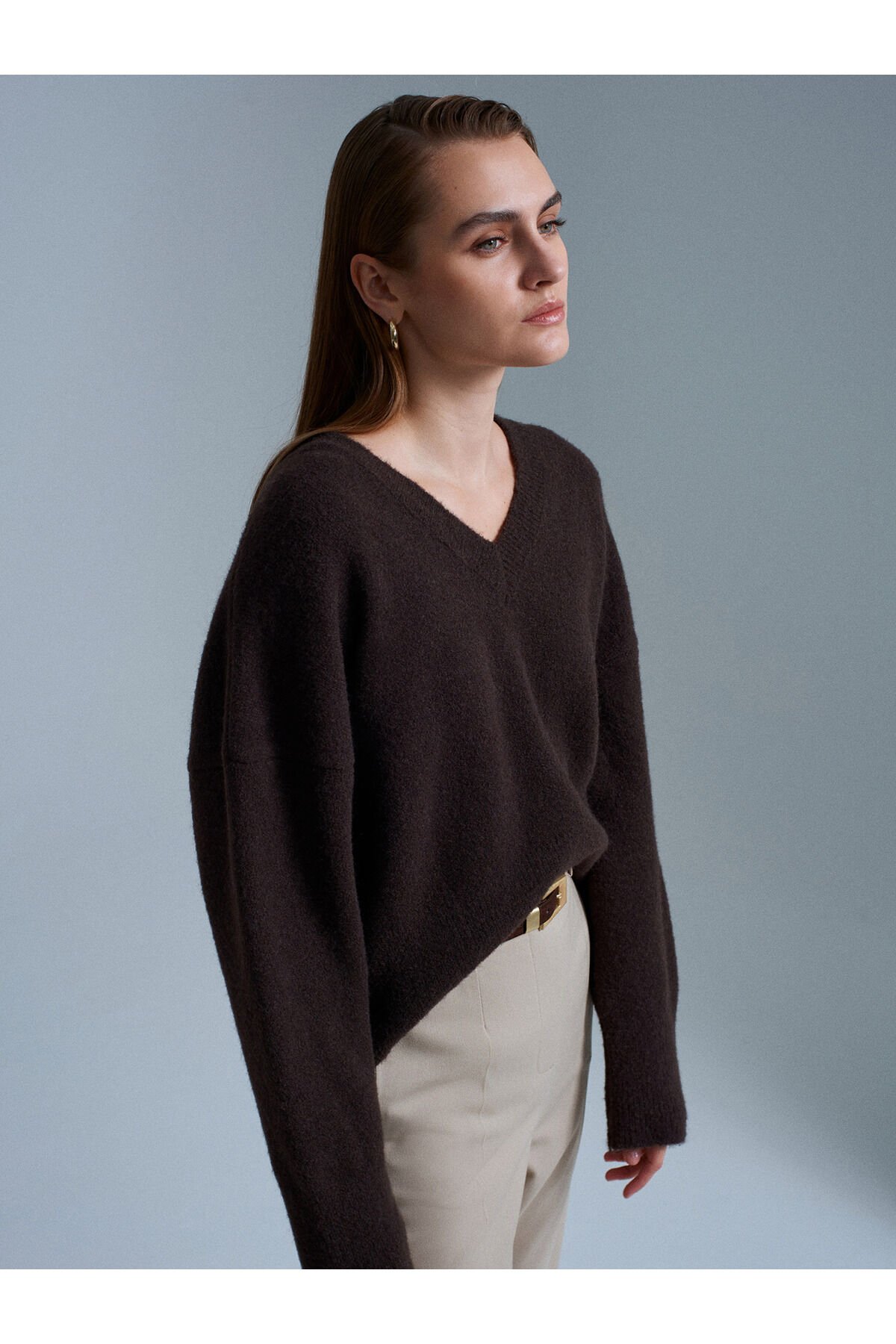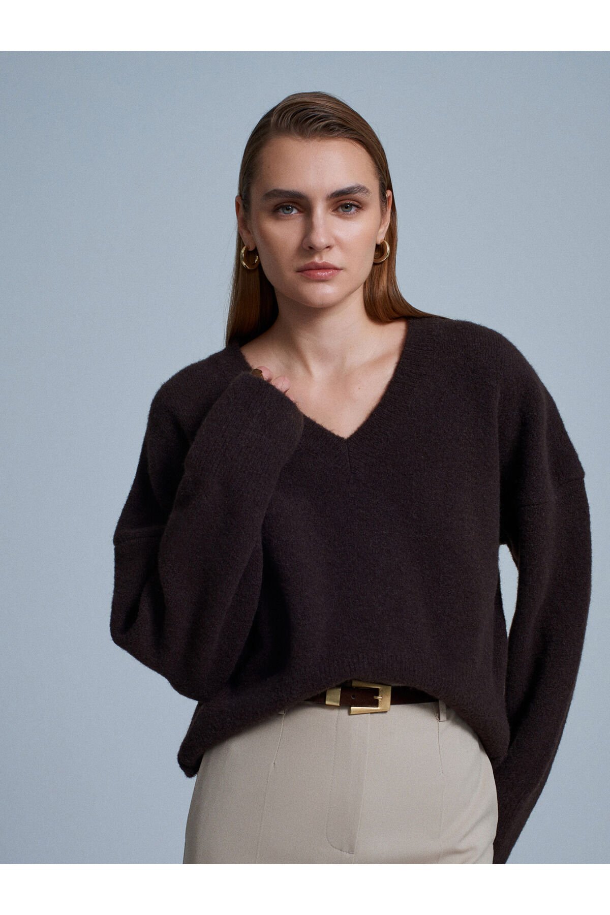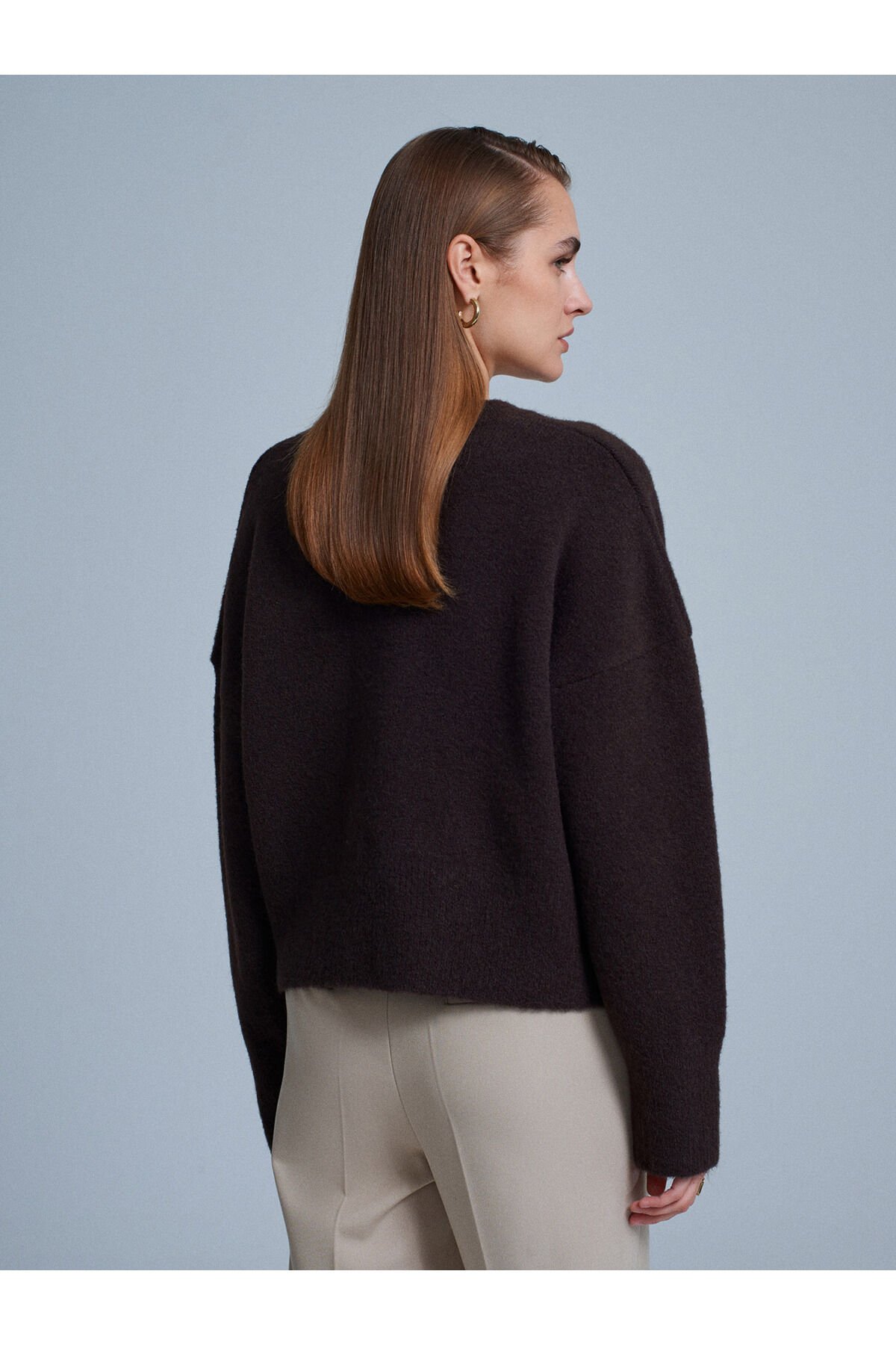 V Yaka Yün Karışımlı Kazak