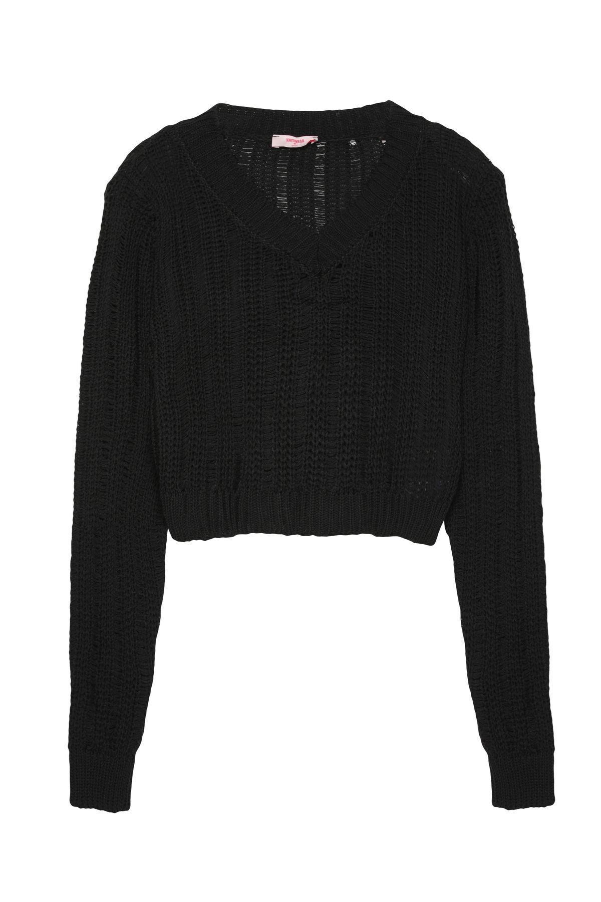 Vatkalı V Yaka Crop Triko