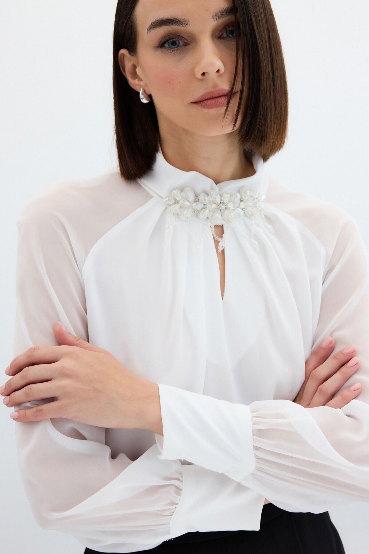 Yaka Aksesuarlı Bluz