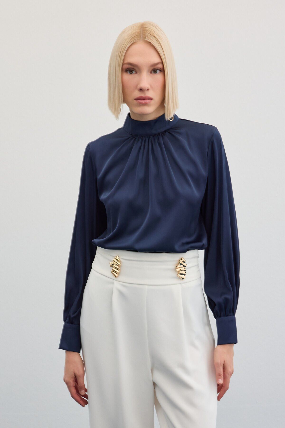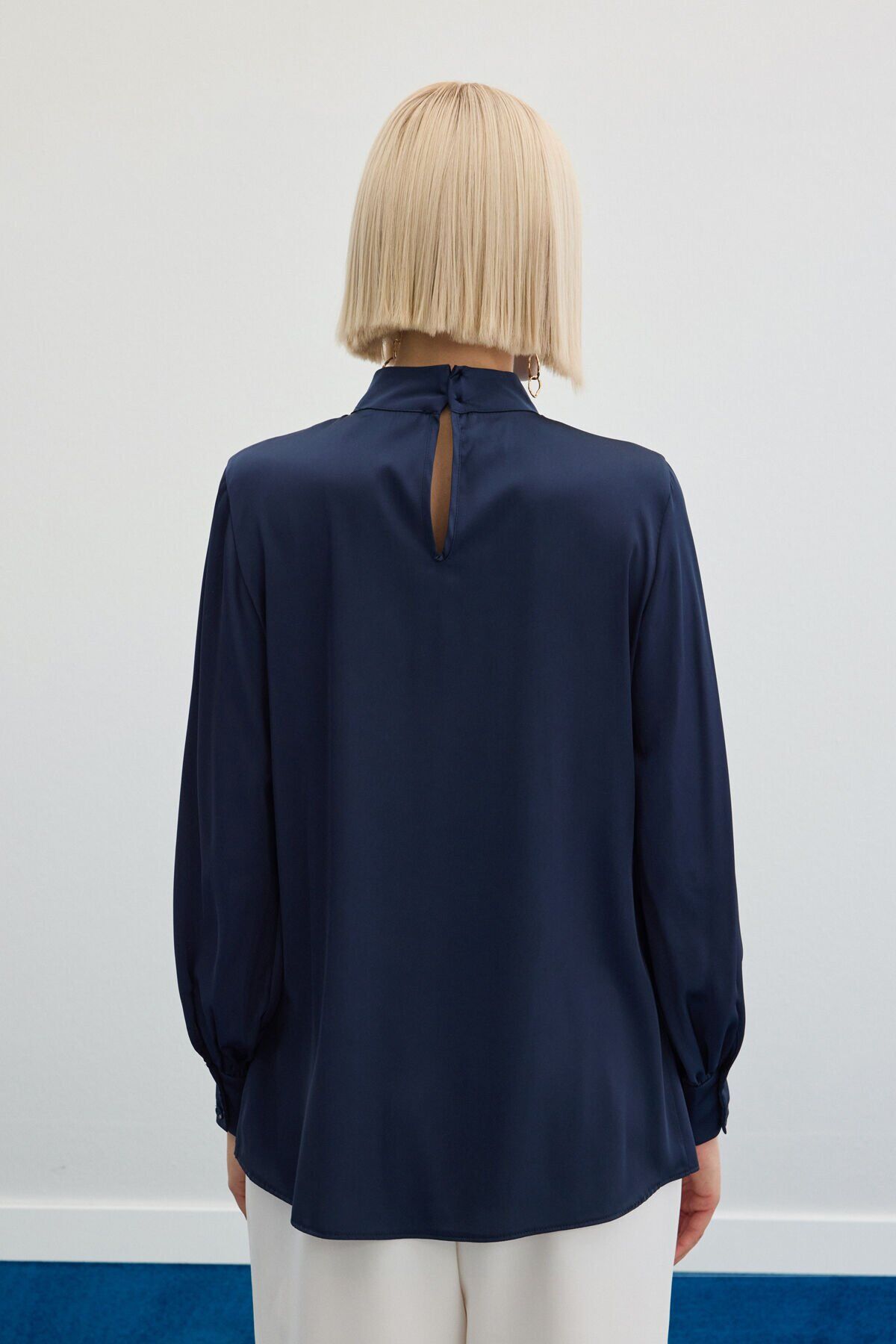 Yaka Detaylı Saten Bluz